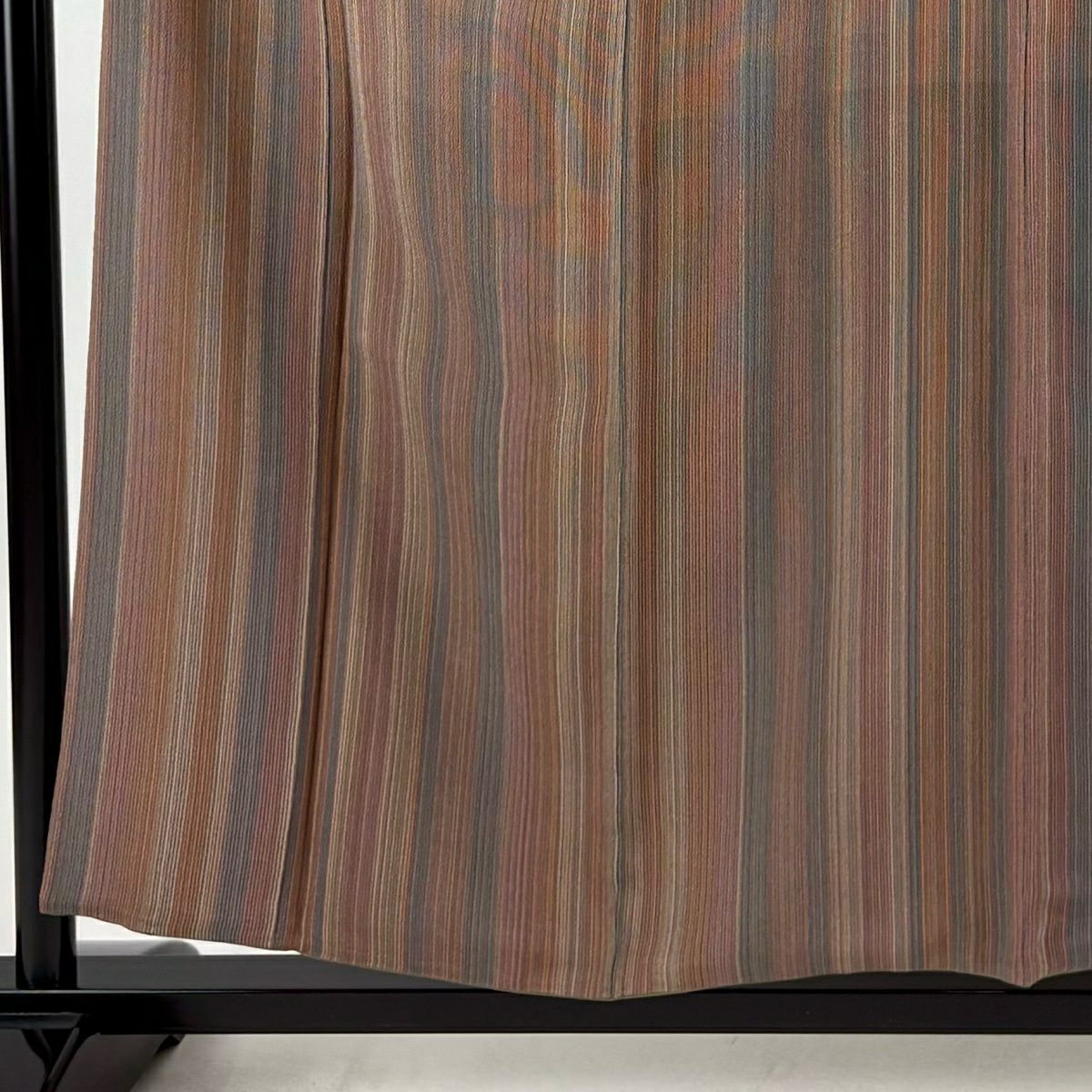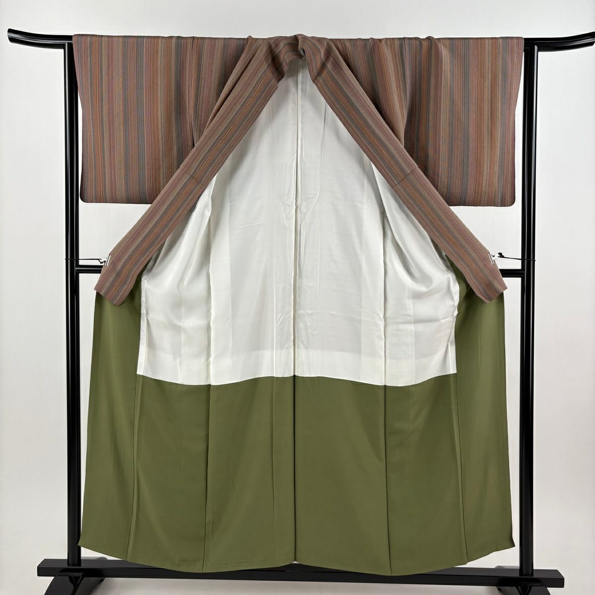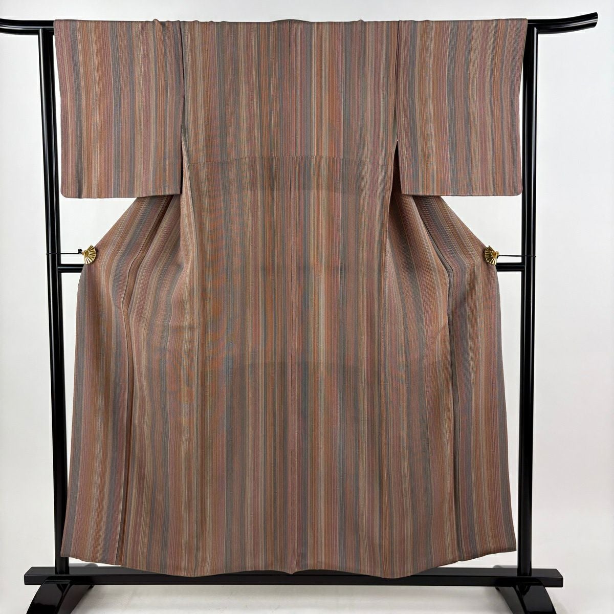 30%OFF 【美品】 小紋 身丈156cm 裄丈64cm M 袷 縦縞 縮緬 薄小豆 正絹 秀品 K30