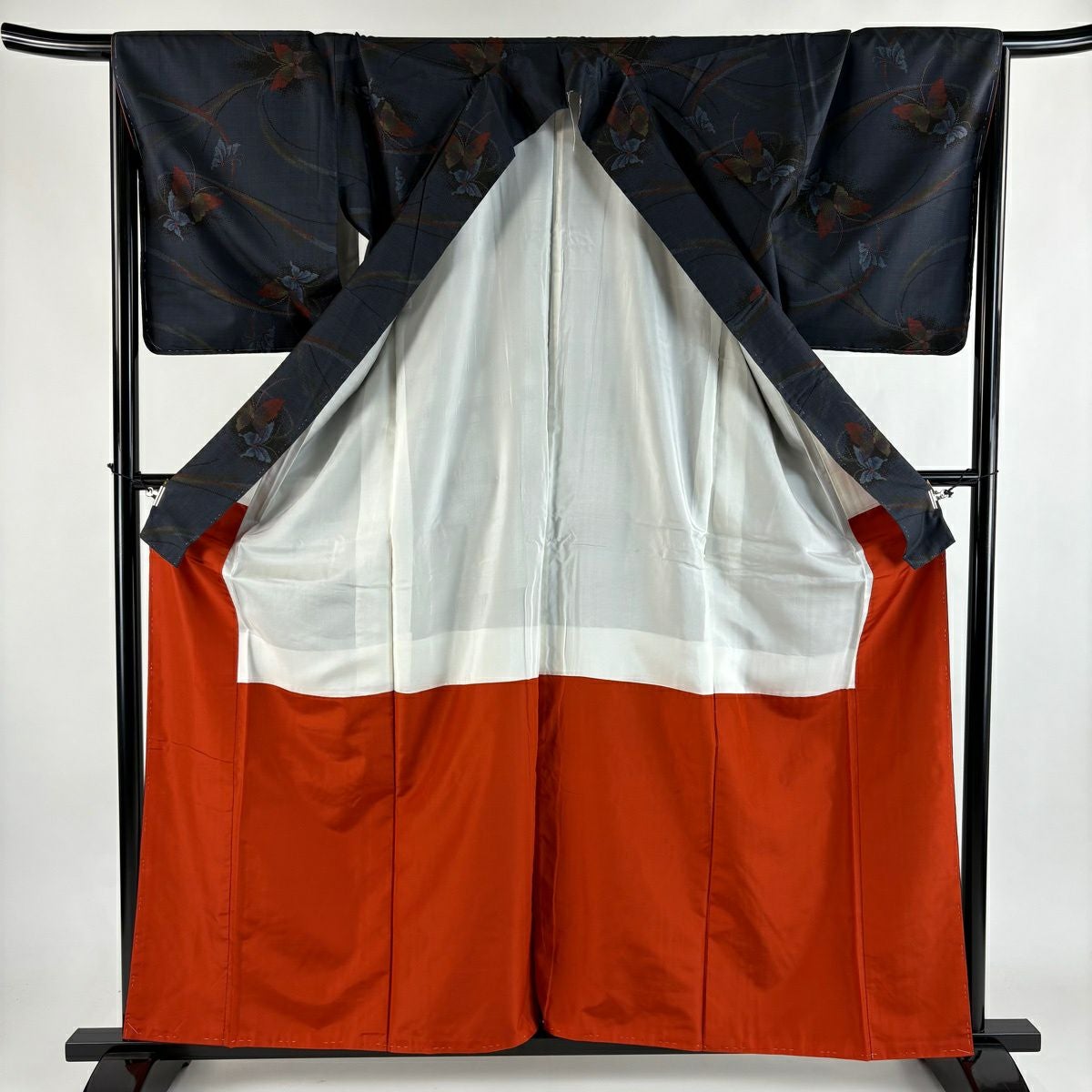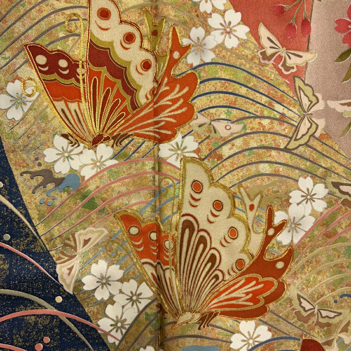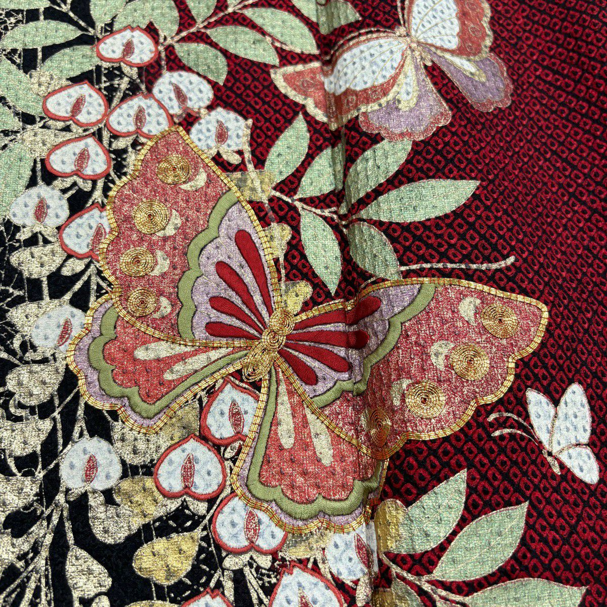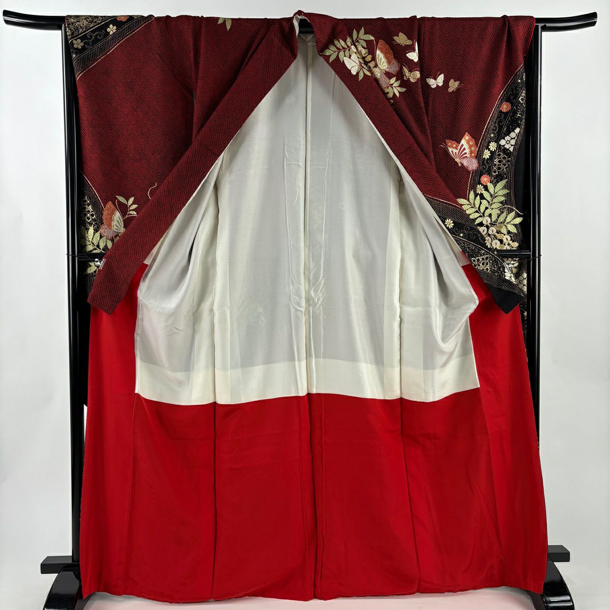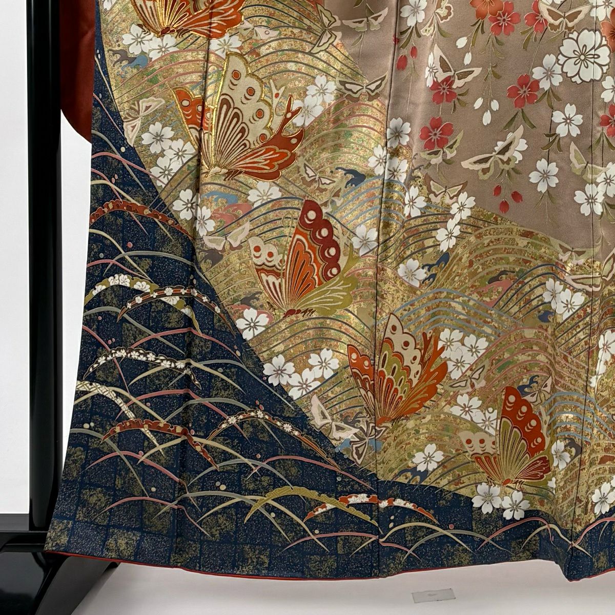 30%OFF 振袖 身丈162cm 裄丈69cm L 袷 枝垂れ桜 蝶 金糸 金彩 朱色 正絹 秀品 K30