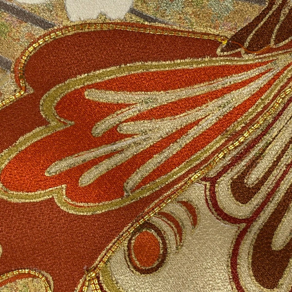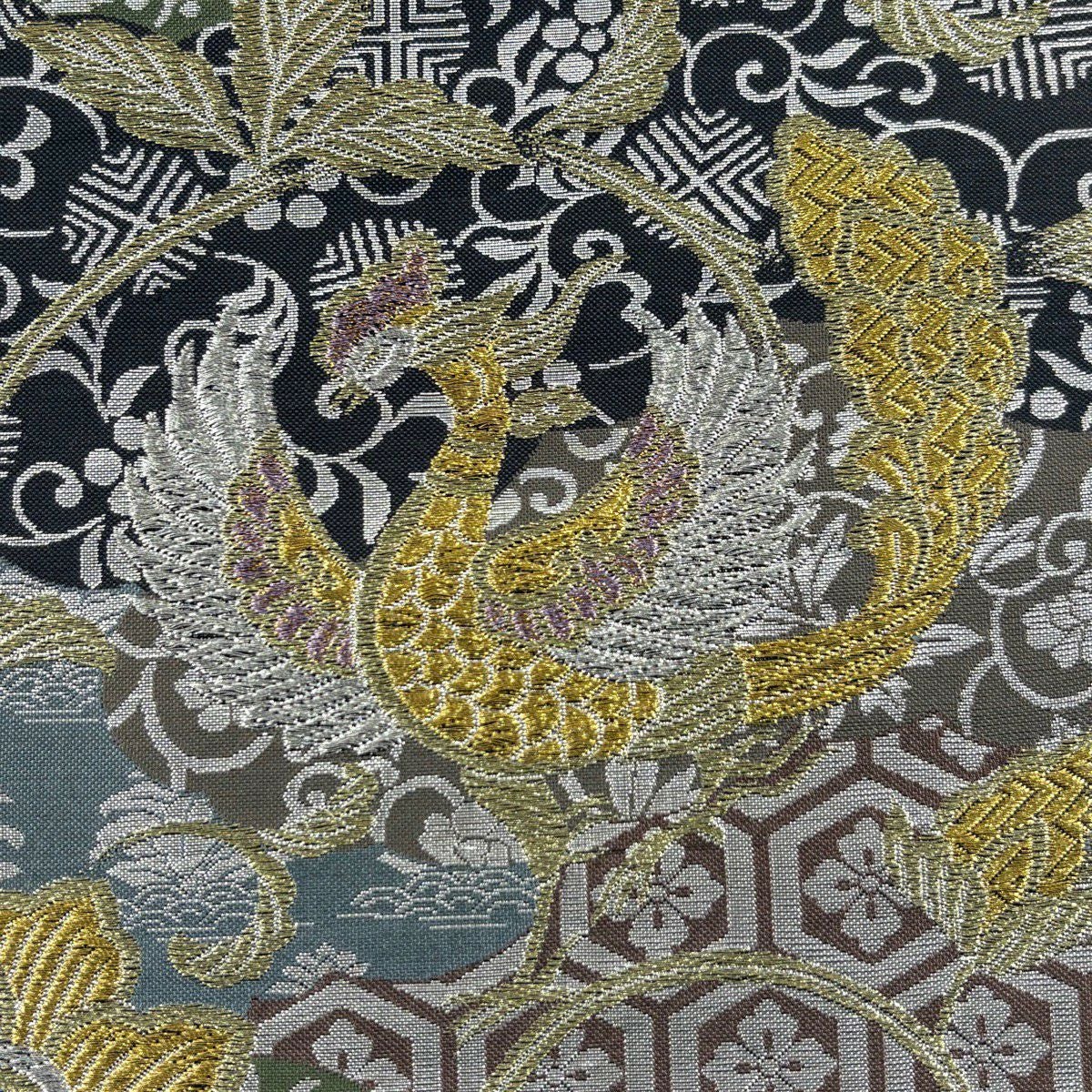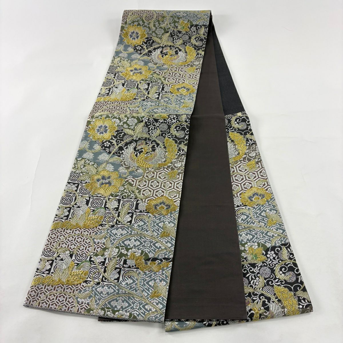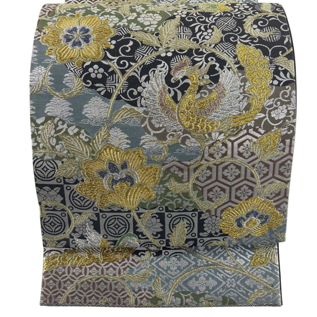 30%OFF 【美品】 袋帯 秀品 関西仕立て 紹唐 鳳凰 花唐草 金銀糸 箔 灰緑 六通 正絹 K30