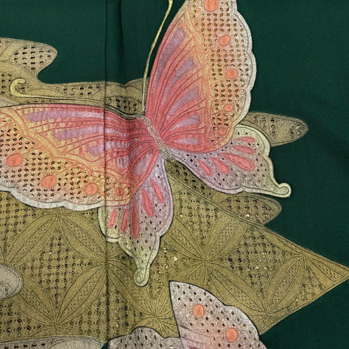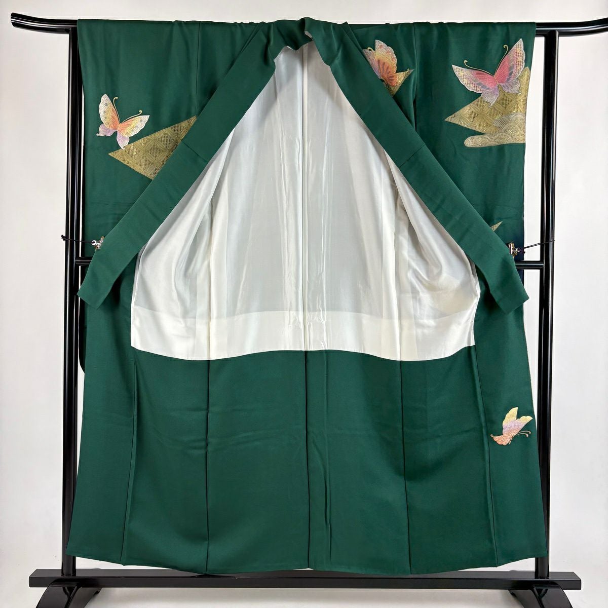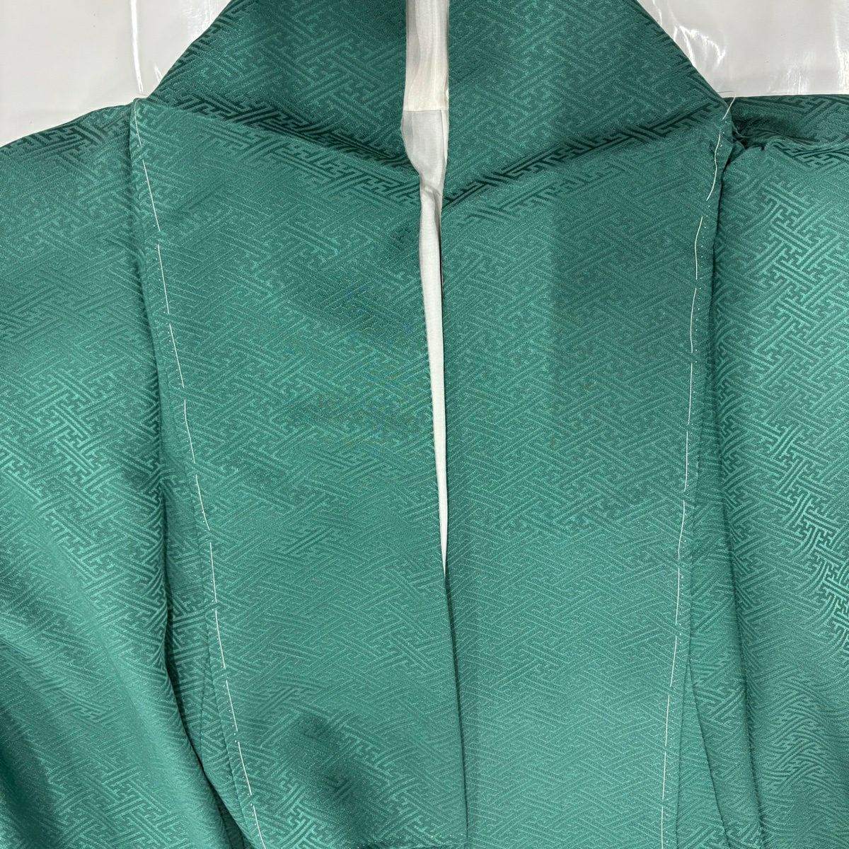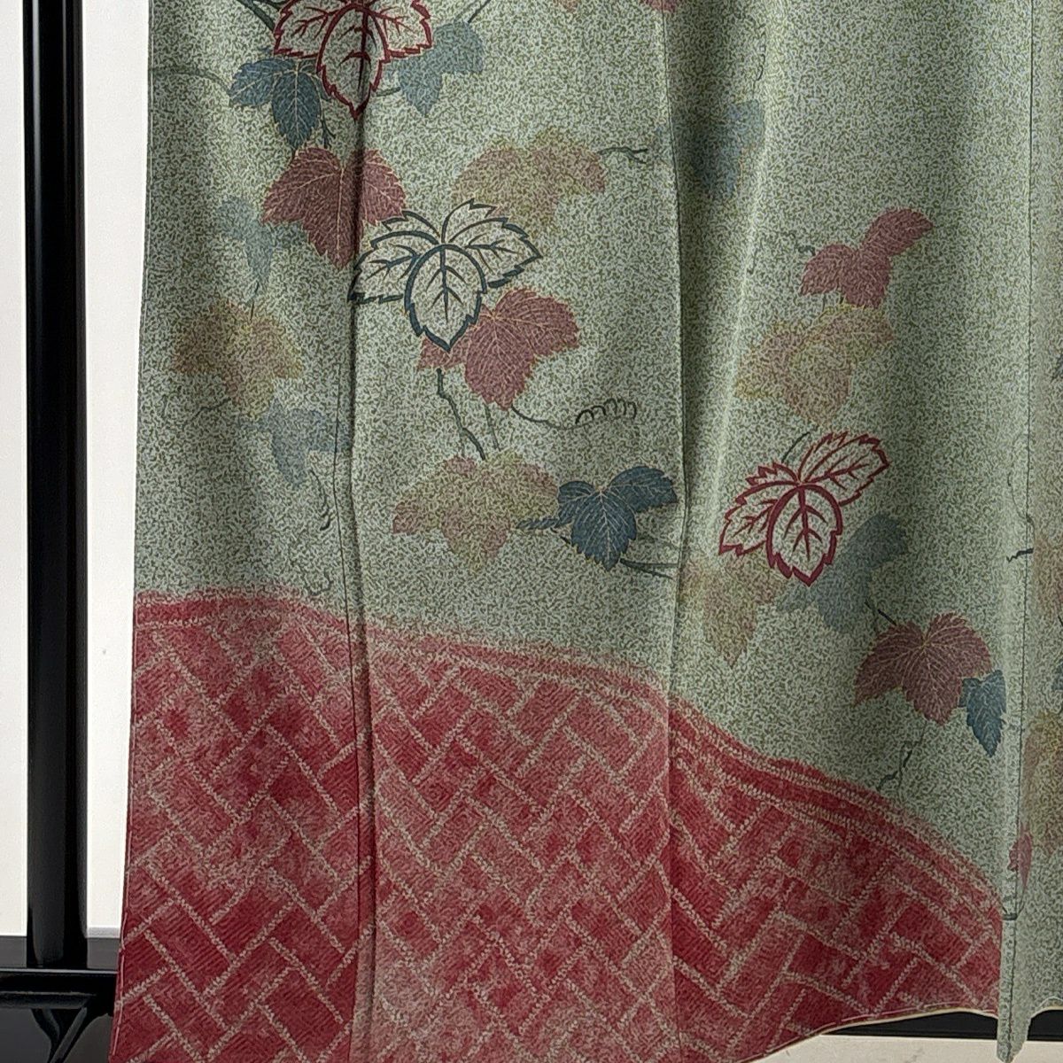 30%OFF 付下げ 身丈164cm 裄丈66cm M 袷 雪輪 草花 刺繍 絞り 緑 正絹 秀品 K30