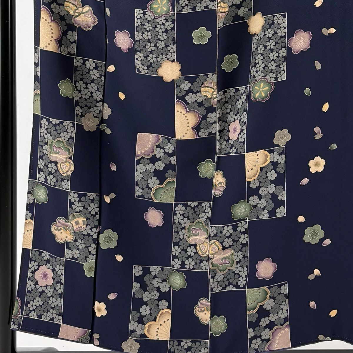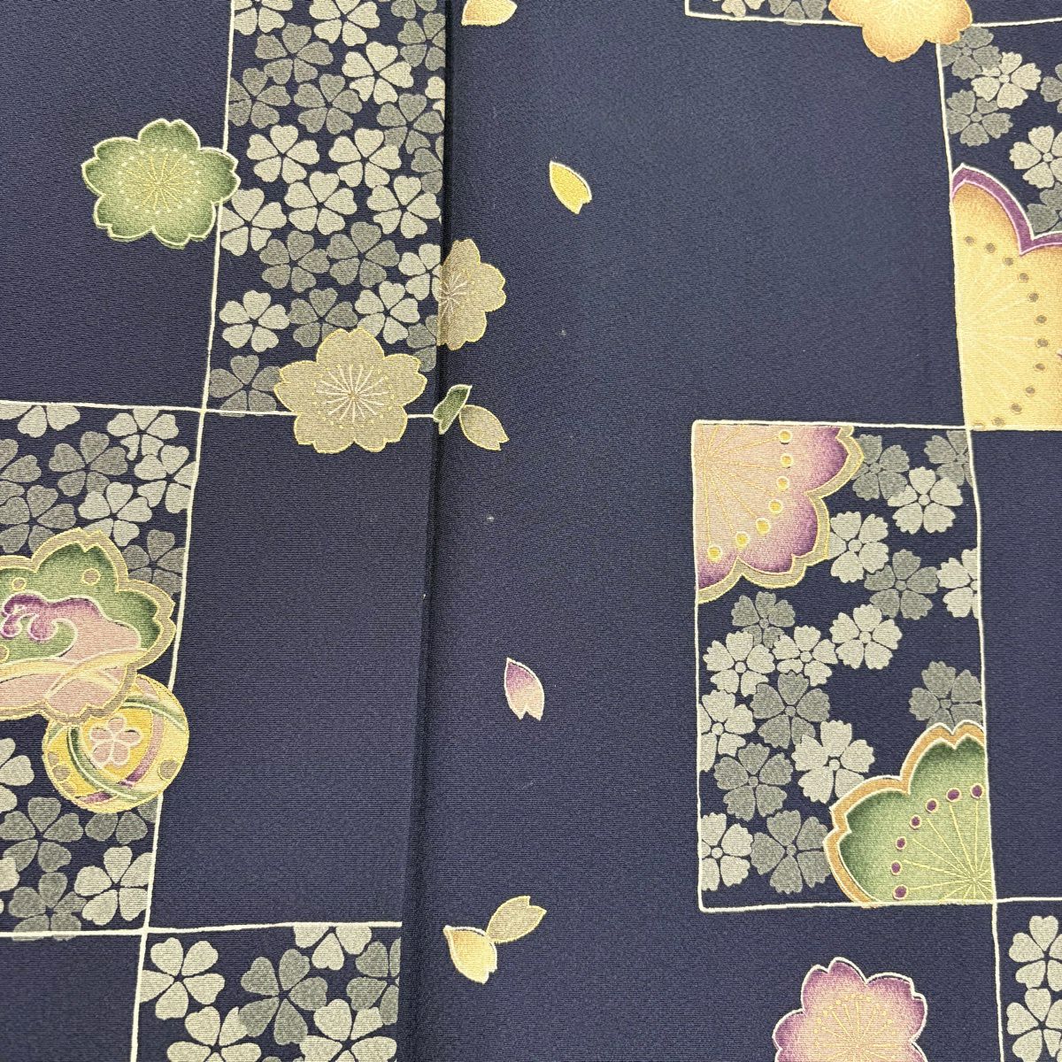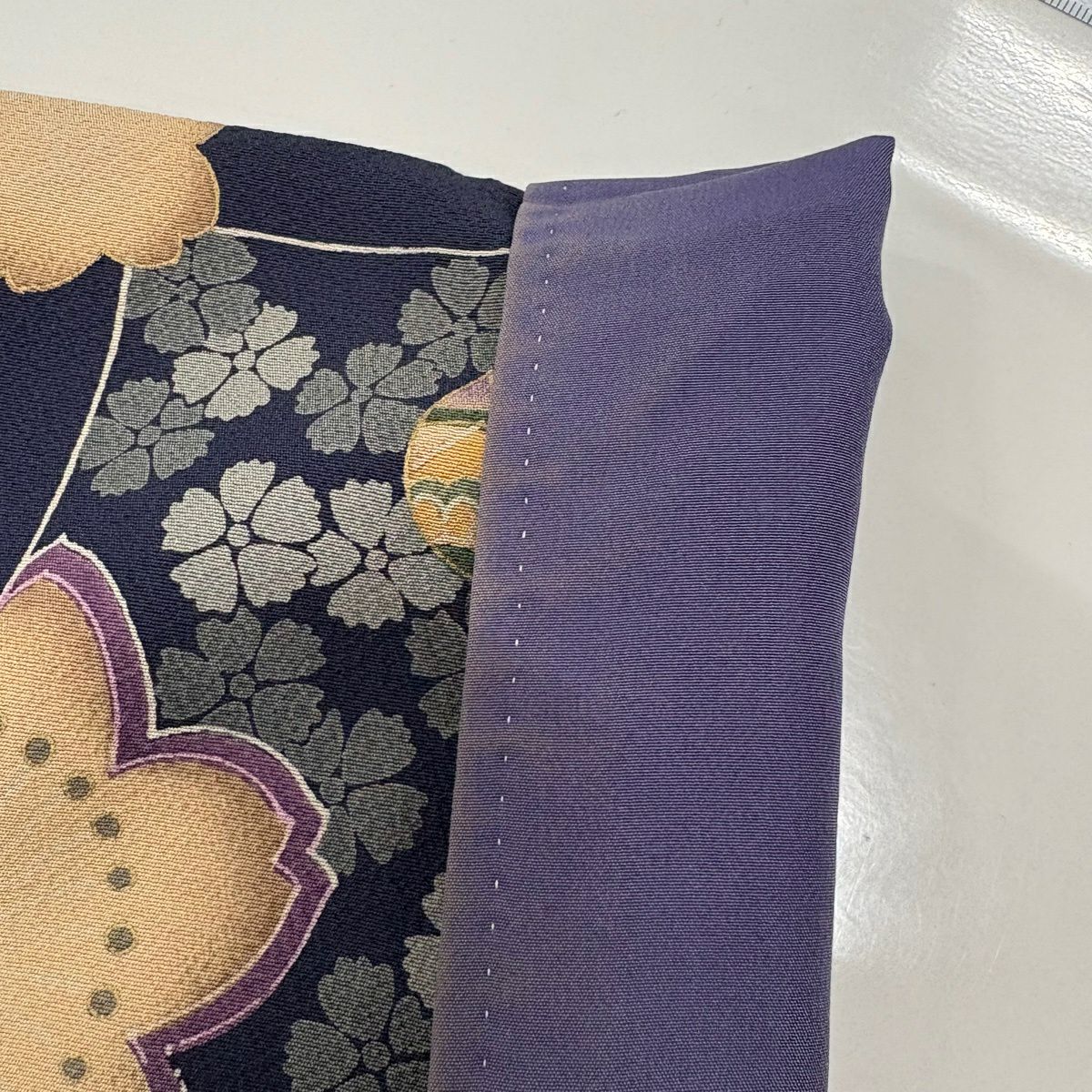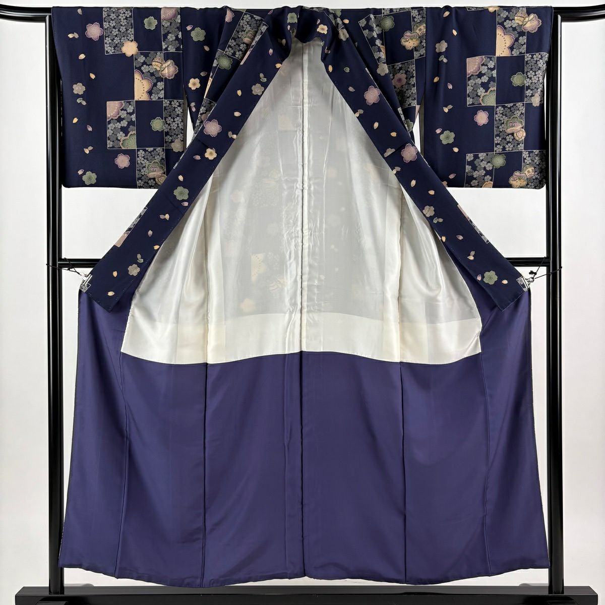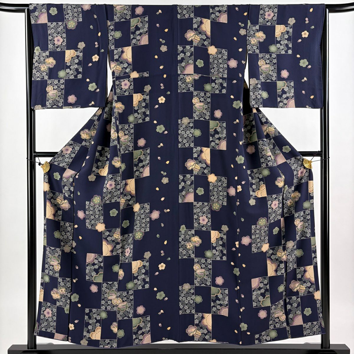 30%OFF 小紋 身丈154.5cm 裄丈65.5cm M 袷 桜 変わり市松 金彩 紫 正絹 秀品 K30