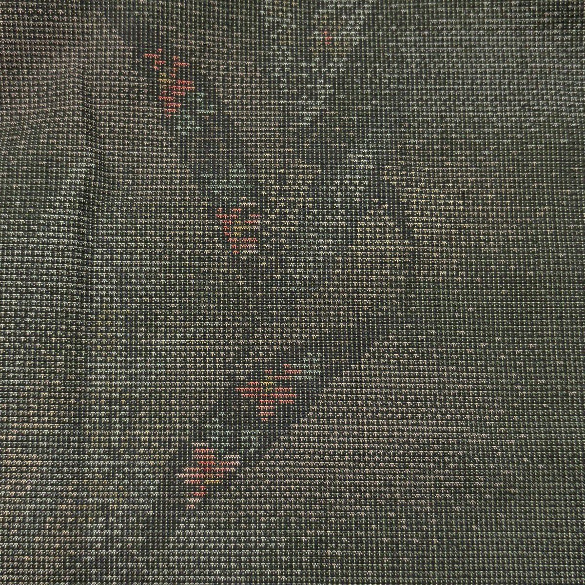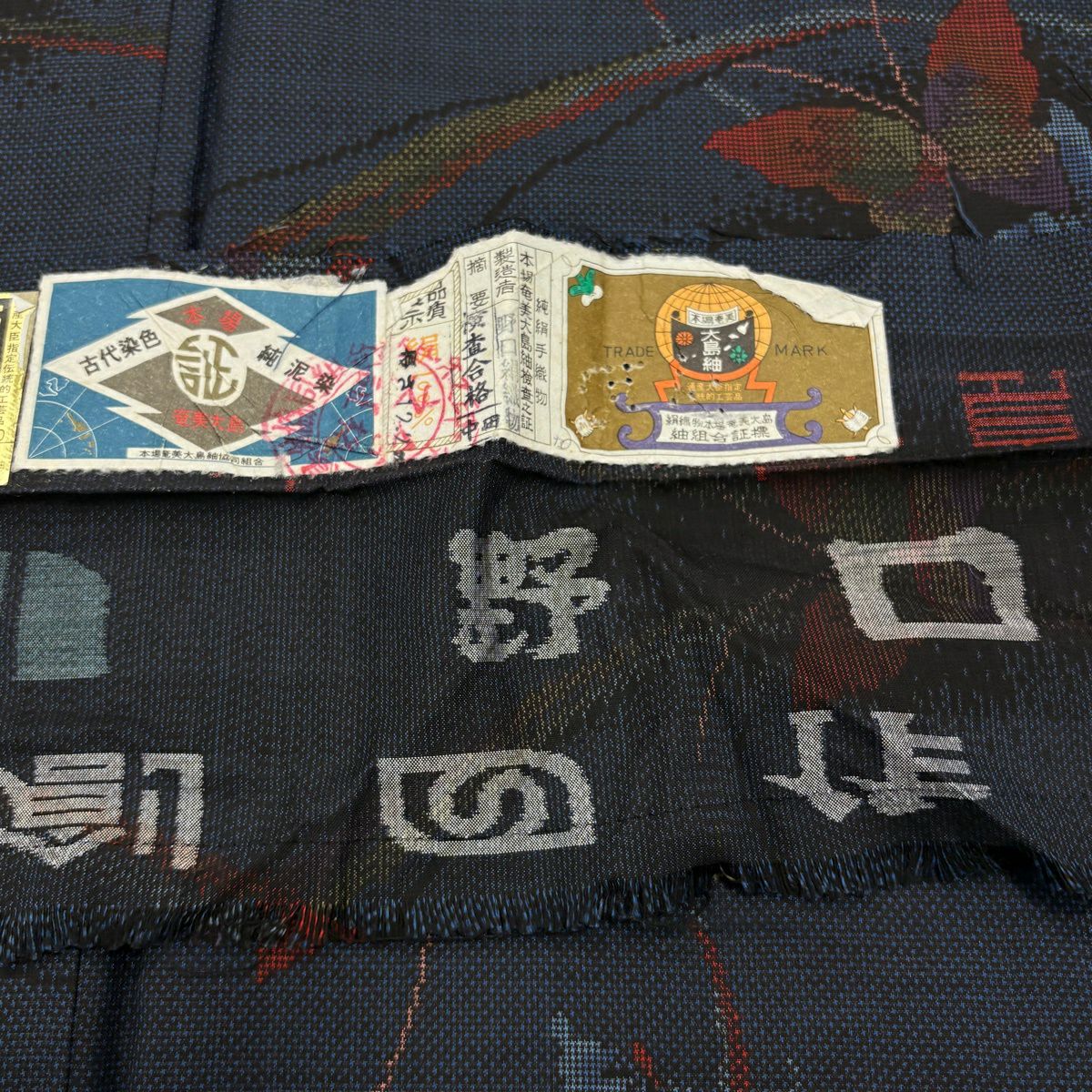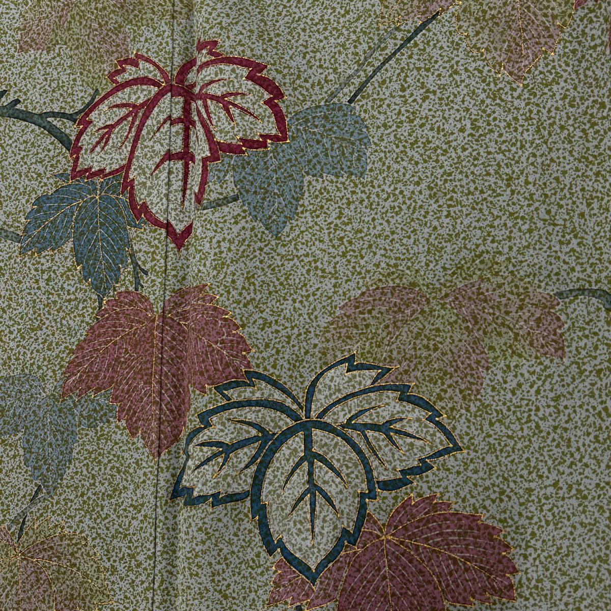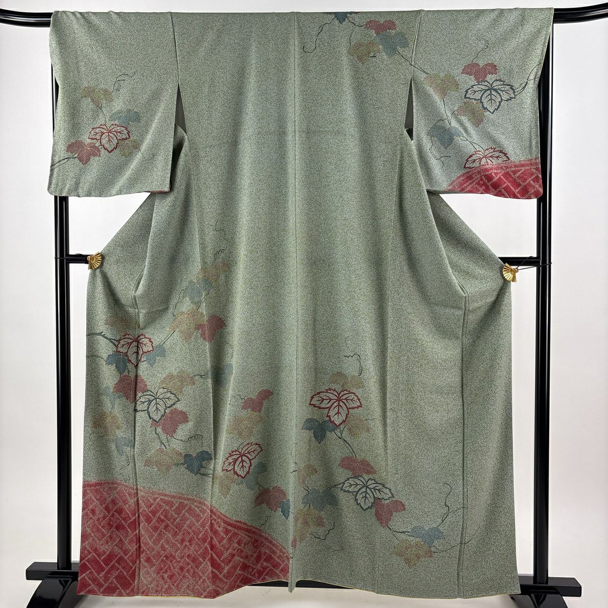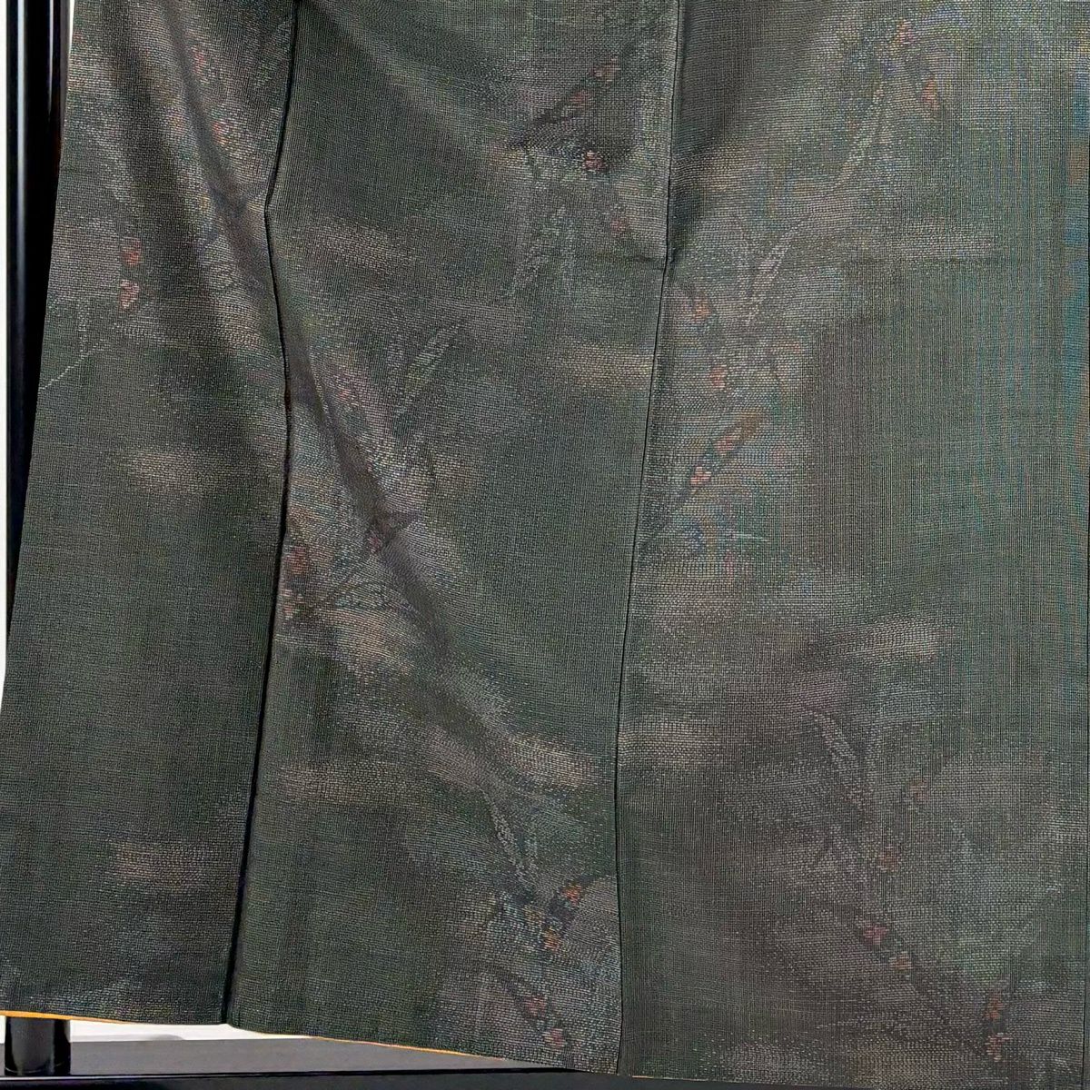 30%OFF 【美品】 紬 身丈159cm 裄丈65.5cm M 袷 草花 葉柄 深緑 正絹 秀品 K30