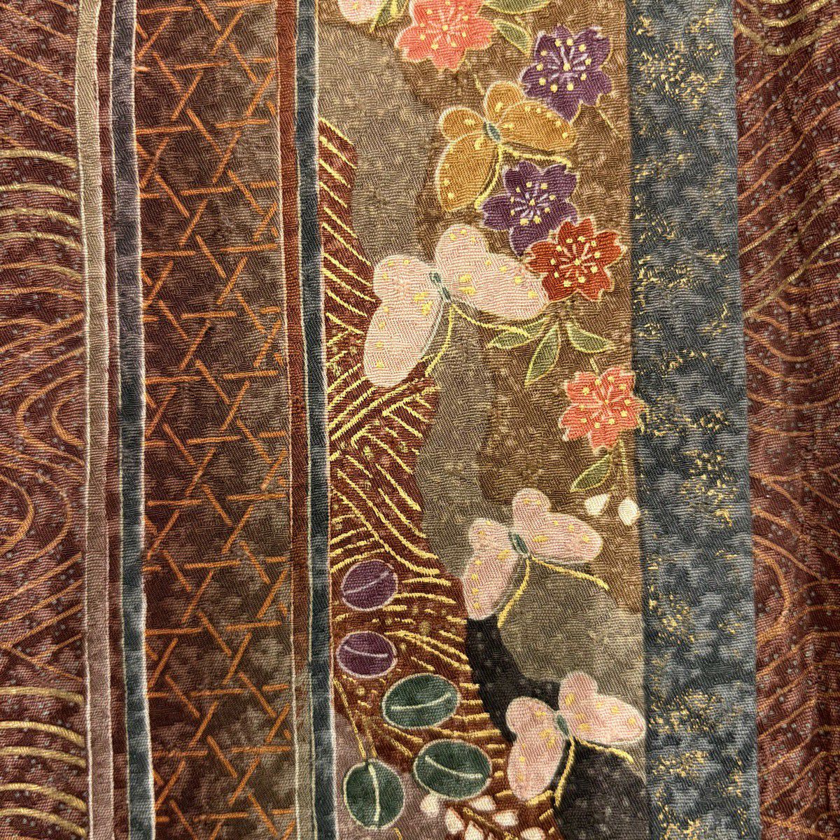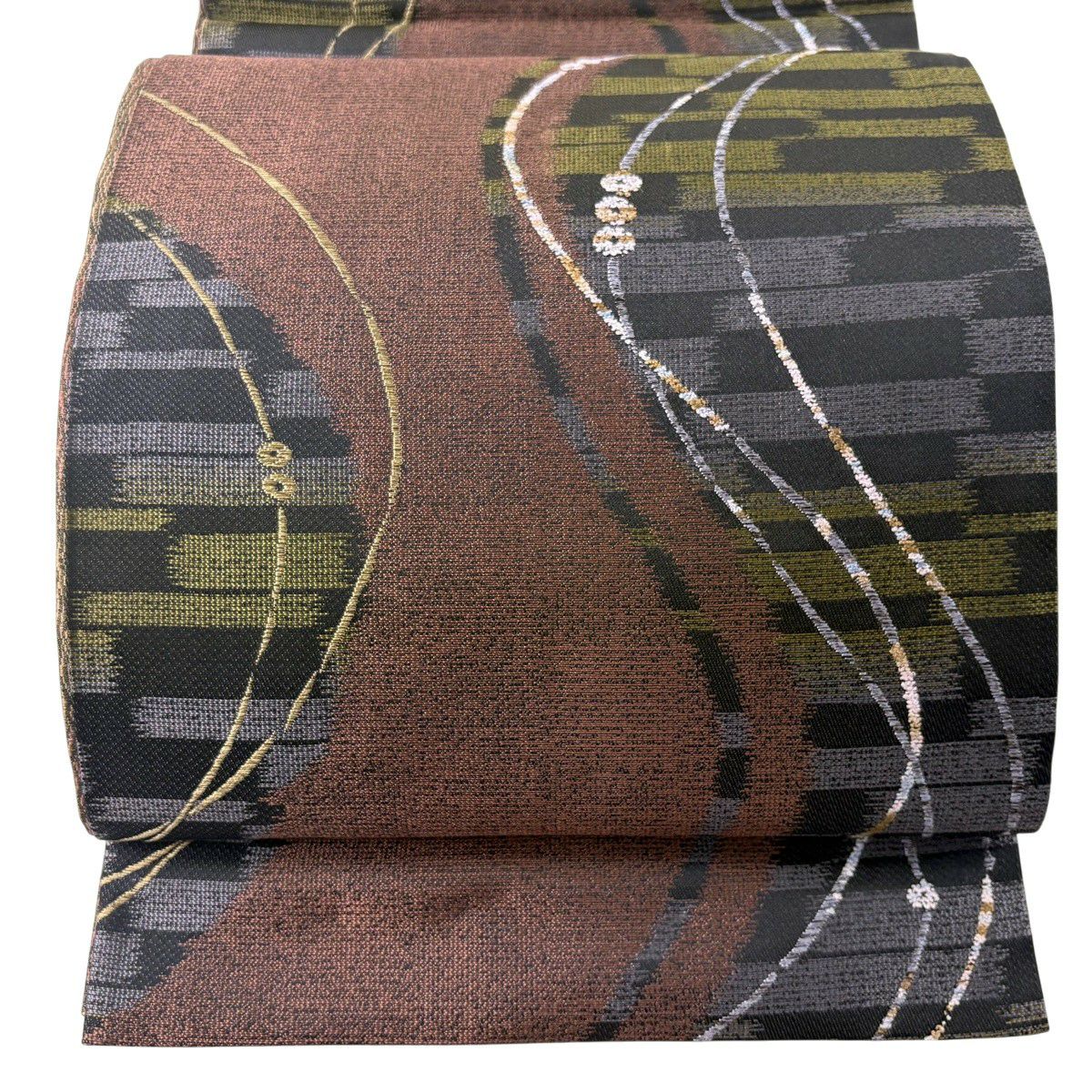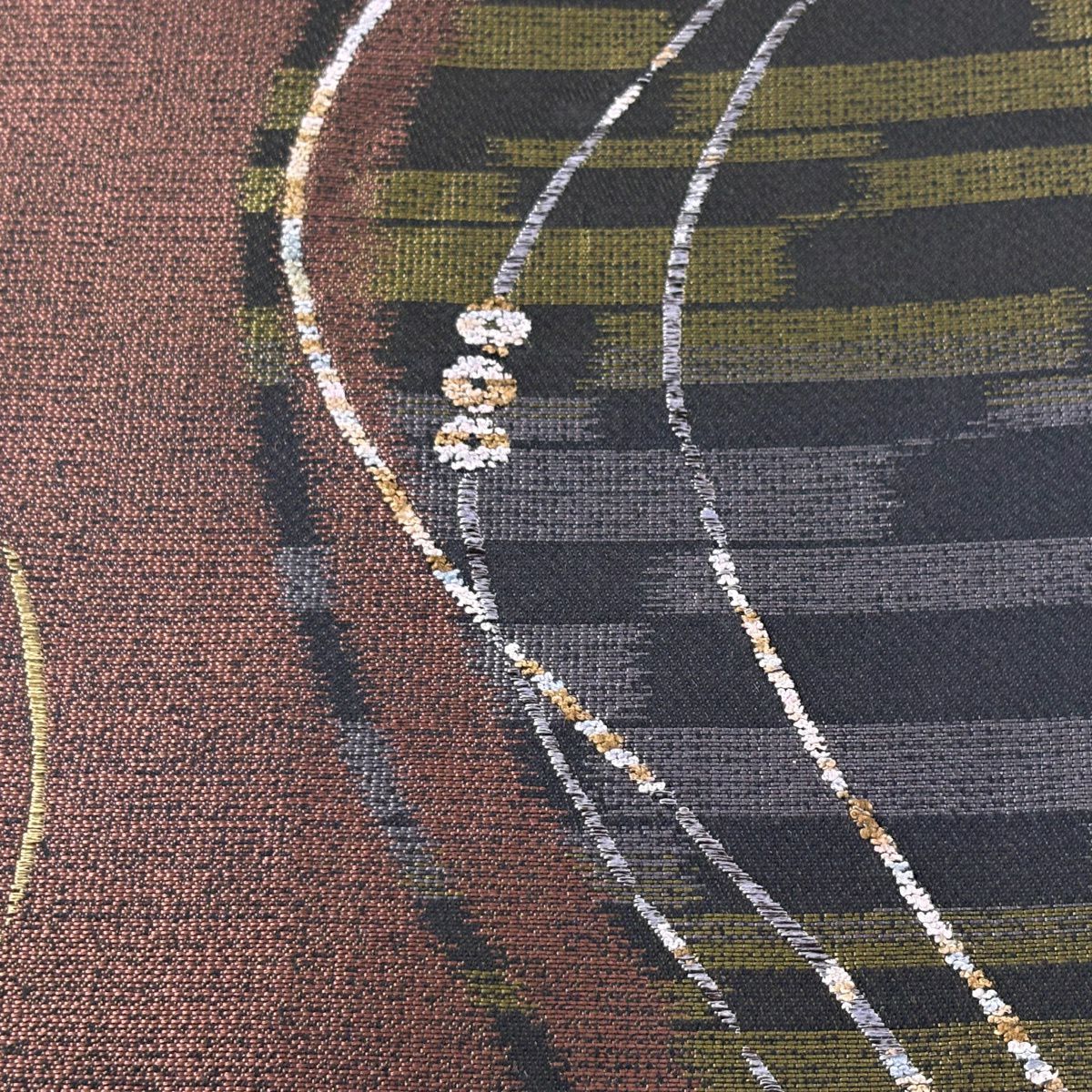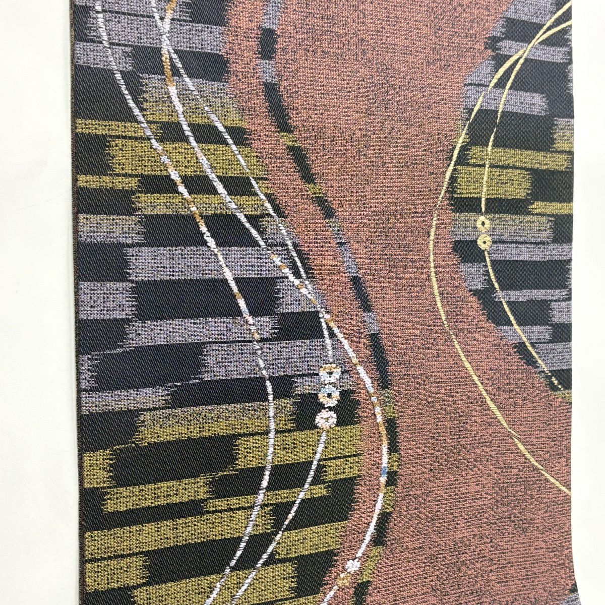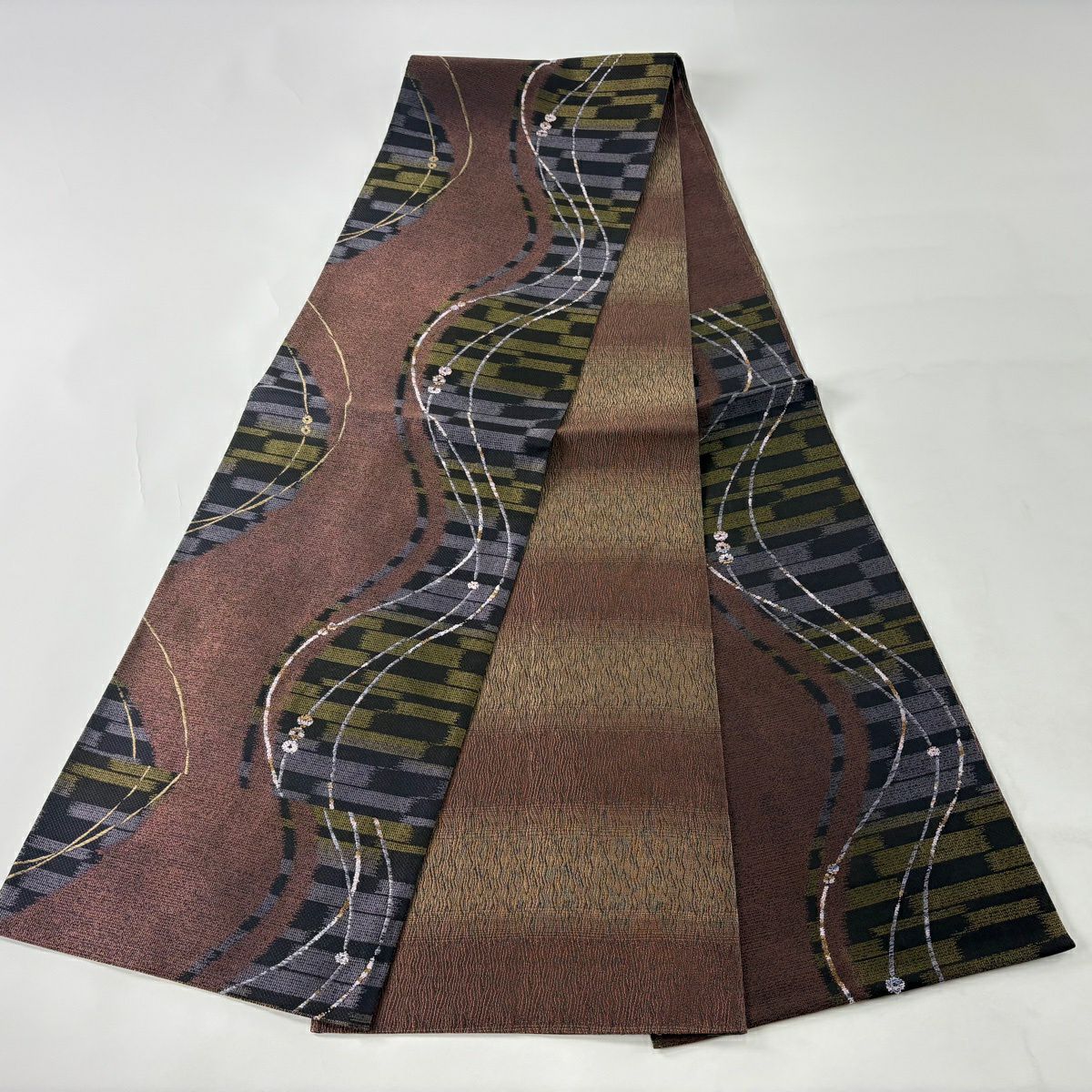 30%OFF 【美品】 袋帯 秀品 落款あり 寺田寛志 幾何学模様 あまみ泥染 赤紫 六通 正絹 K30