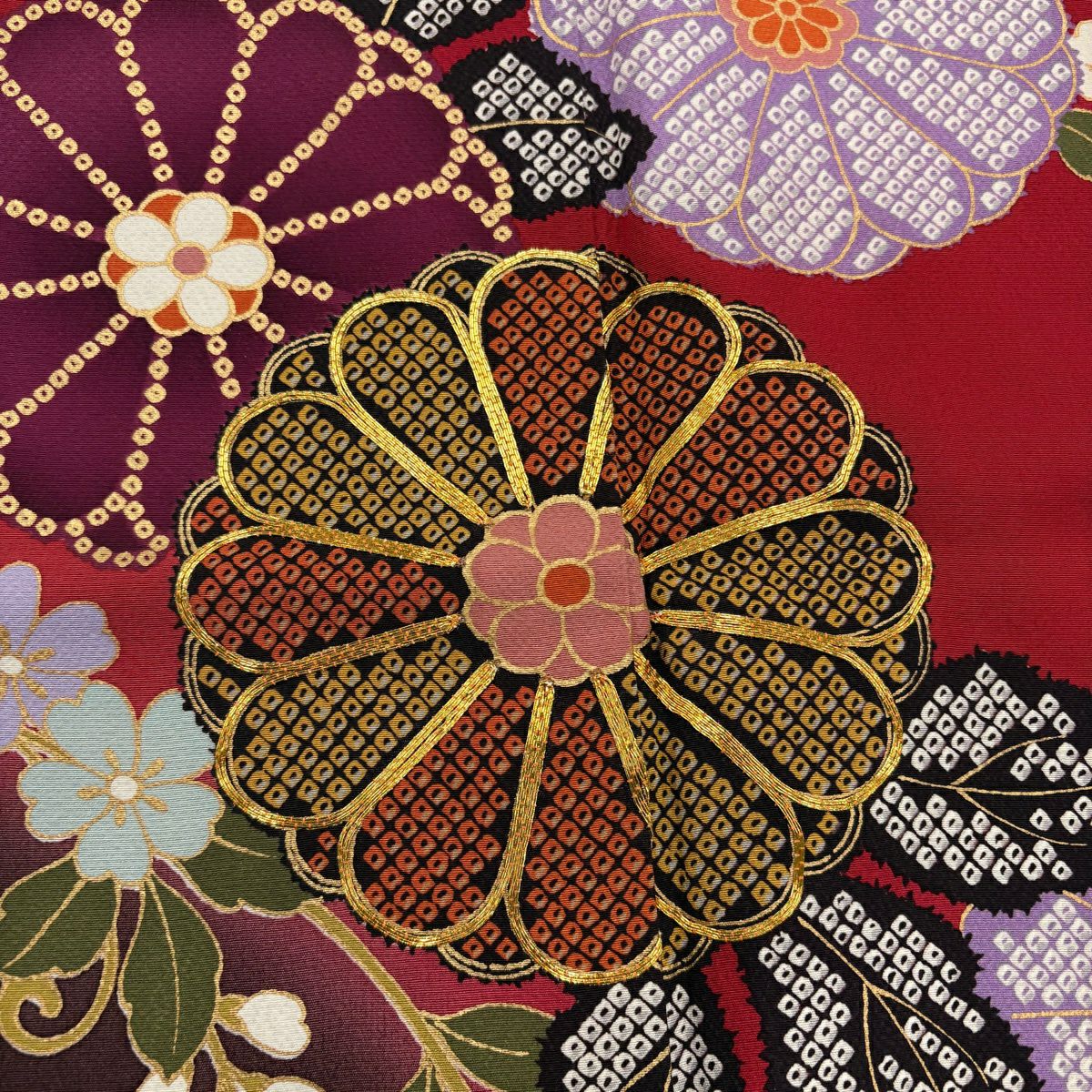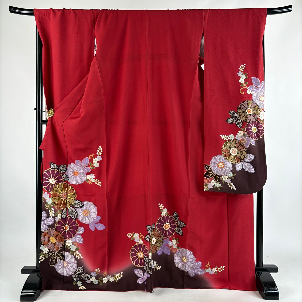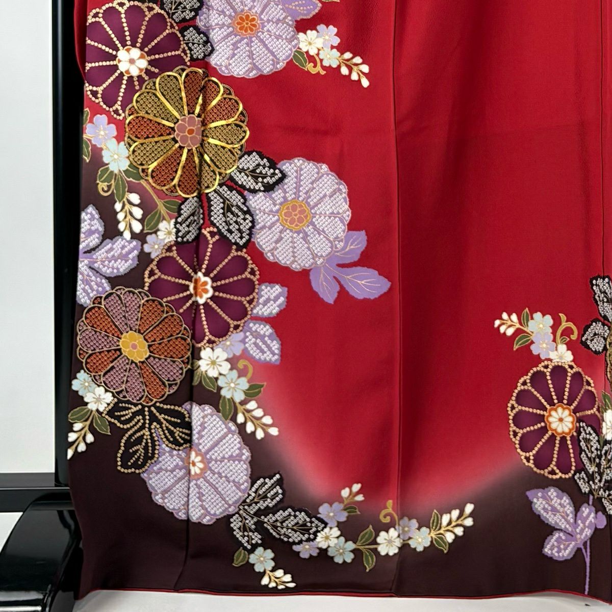 30%OFF 振袖 身丈170.5cm 裄丈71cm L 袷 菊 花唐草 金糸 金彩 赤 正絹 秀品 K30