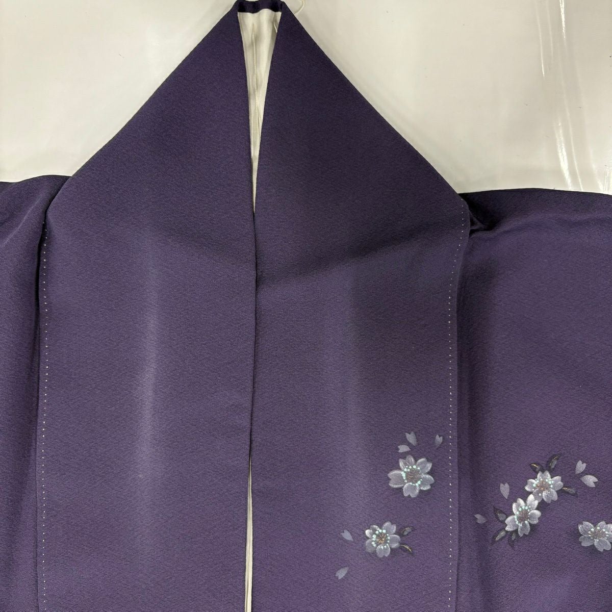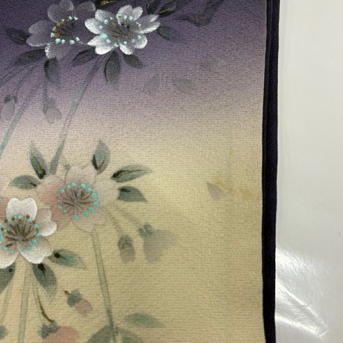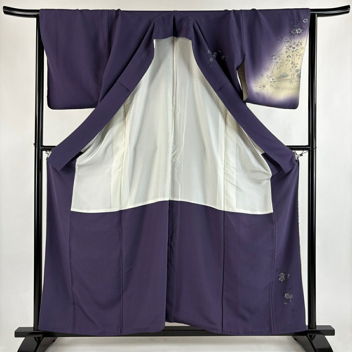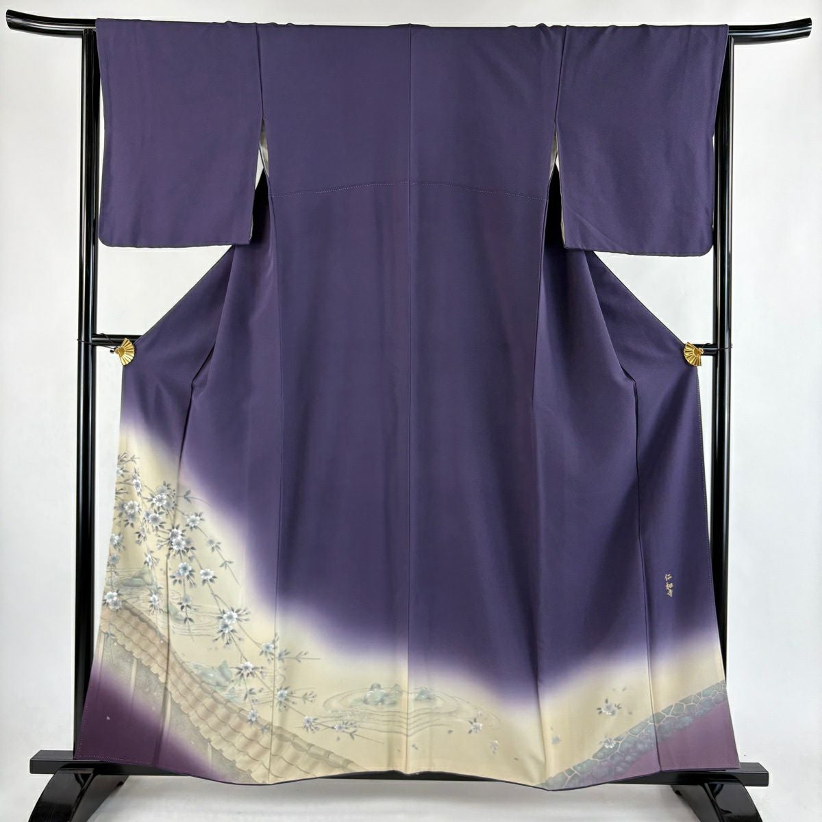 30%OFF 付下げ 身丈150cm 裄丈63cm S 袷 流水 草花 染め分け 灰紫 正絹 秀品 K30