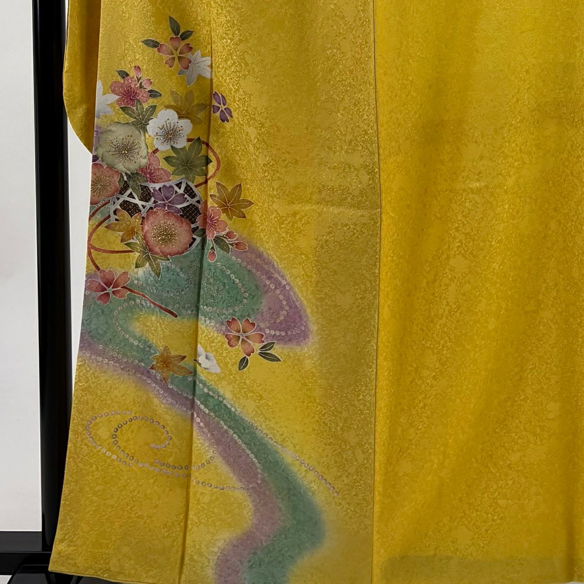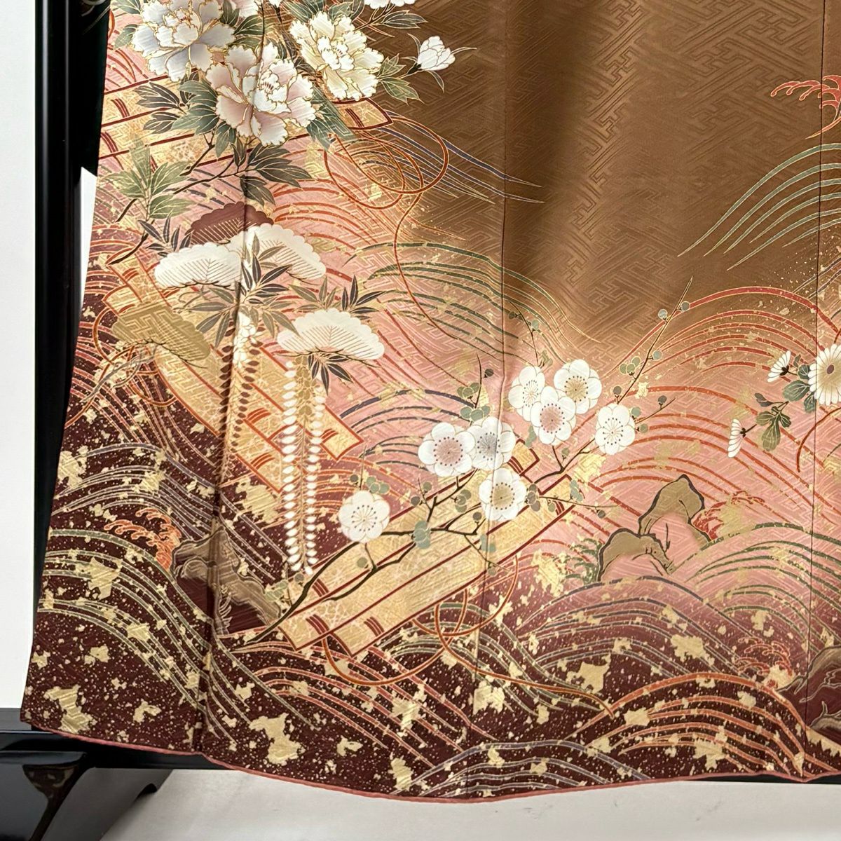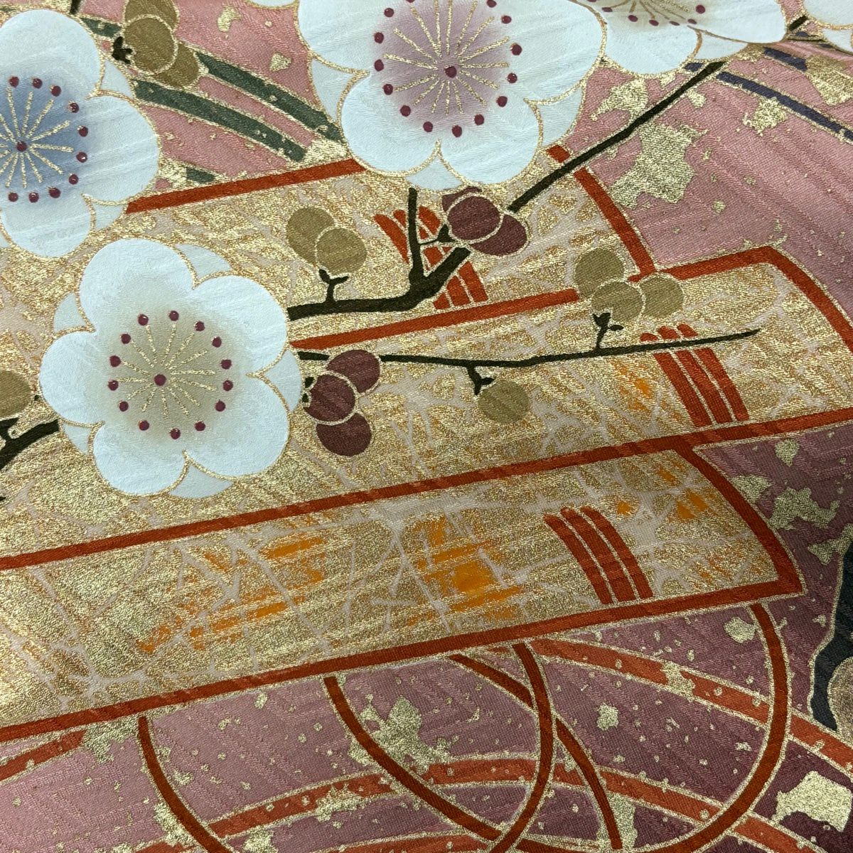 30%OFF 振袖 身丈162.5cm 裄丈63.5cm S 袷 草花 金彩 箔 ピンク 正絹 秀品 K30