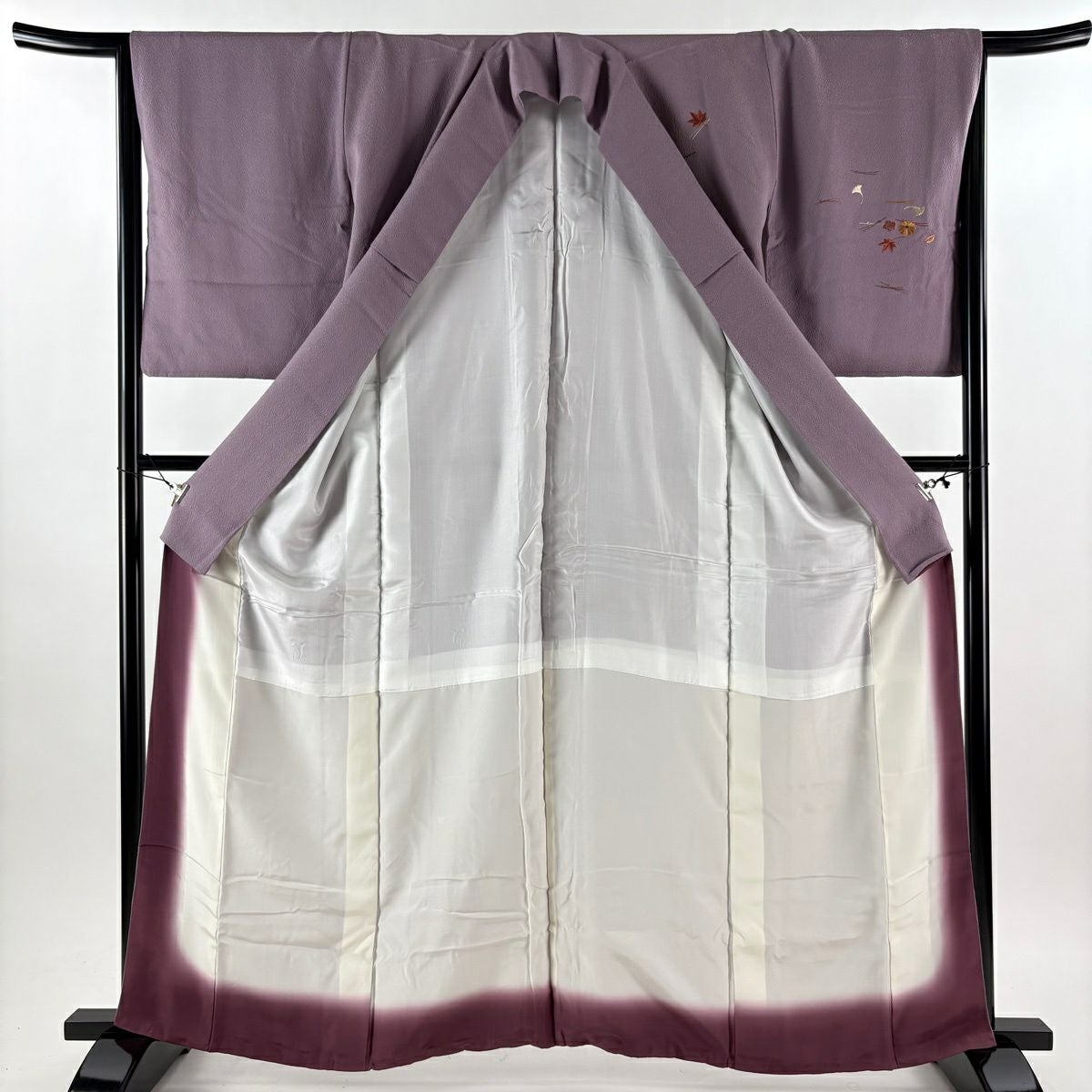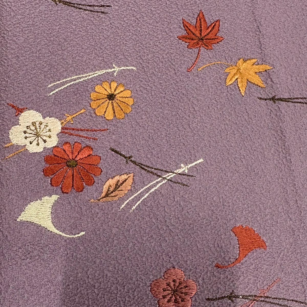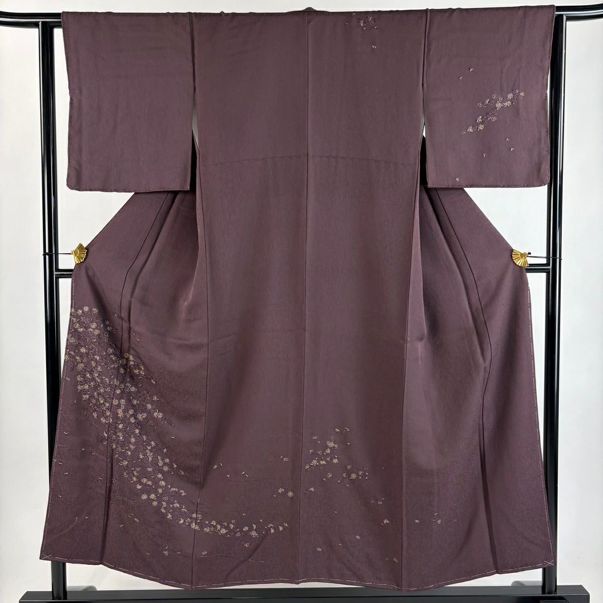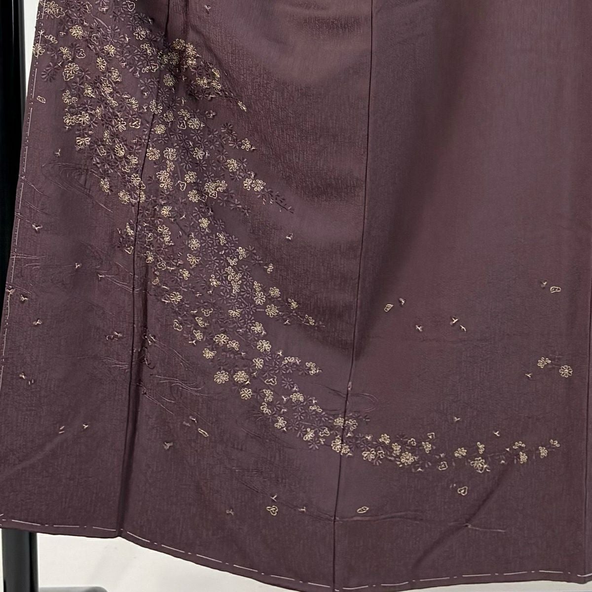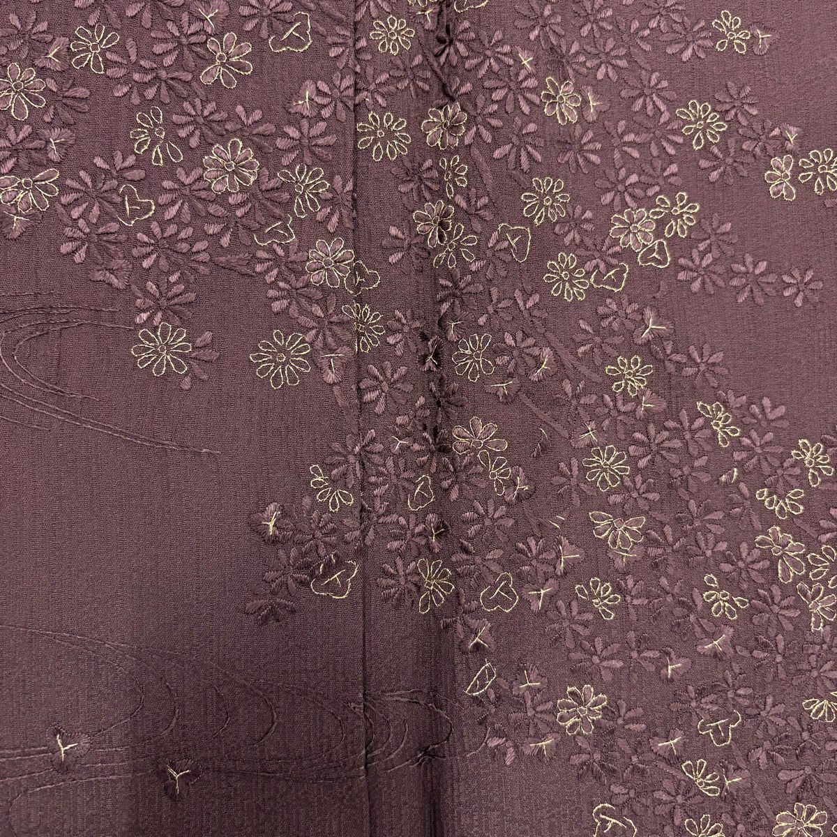 50%OFF 付下げ 身丈159cm 裄丈65cm M 袷 吹き寄せ 梅 金糸 刺繍 紫 正絹 秀品 K50