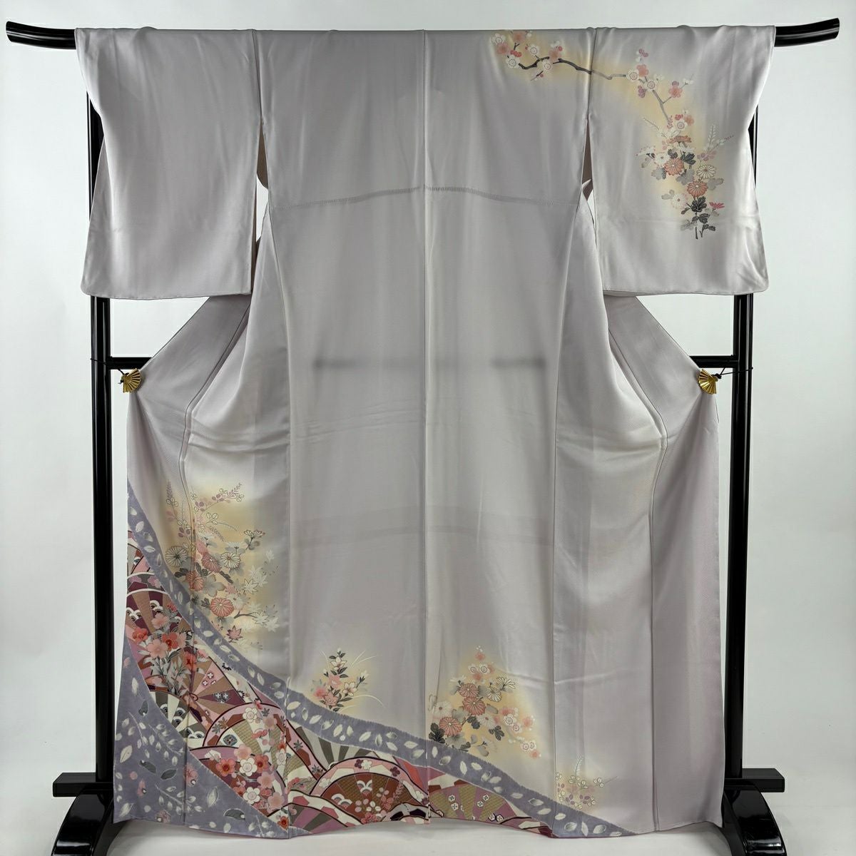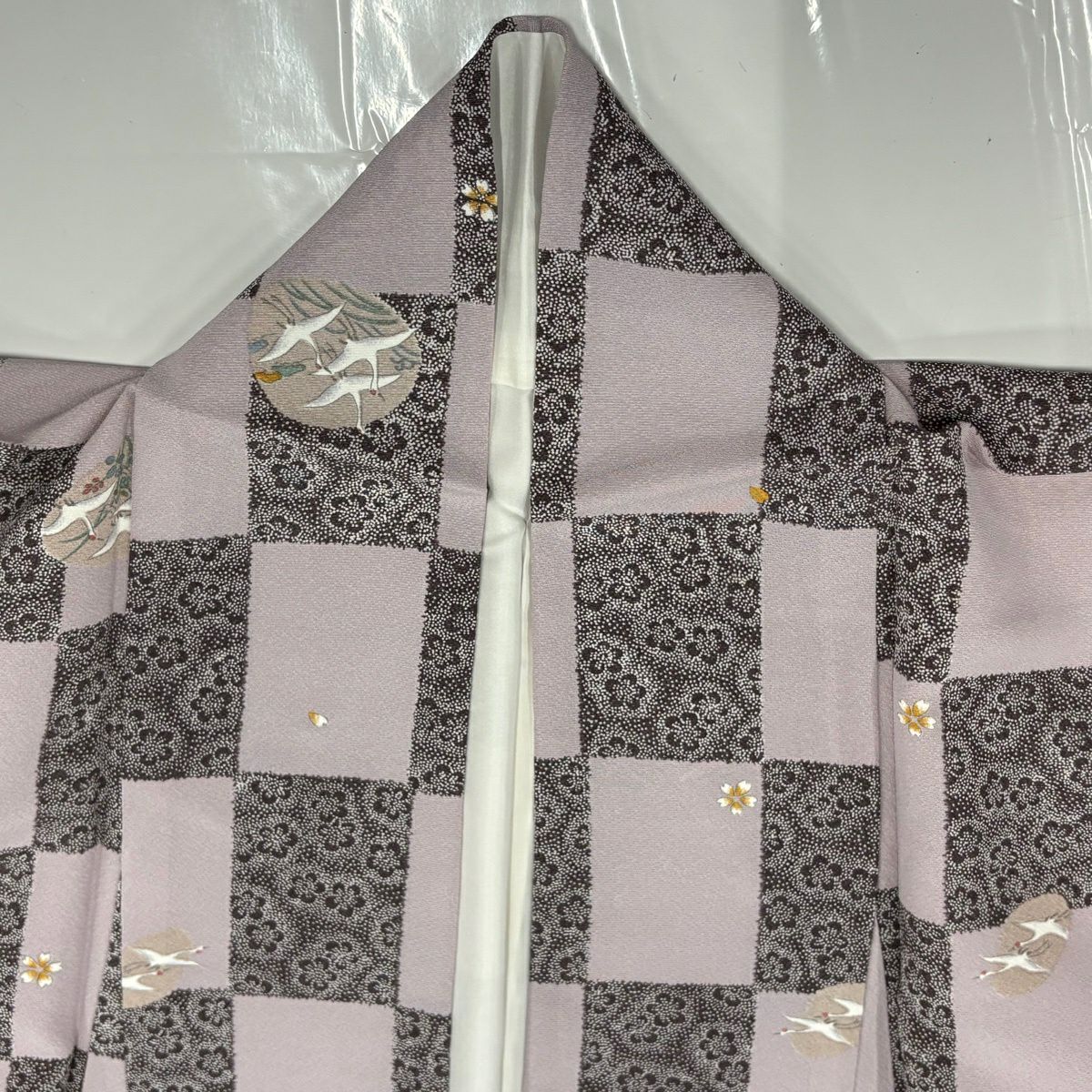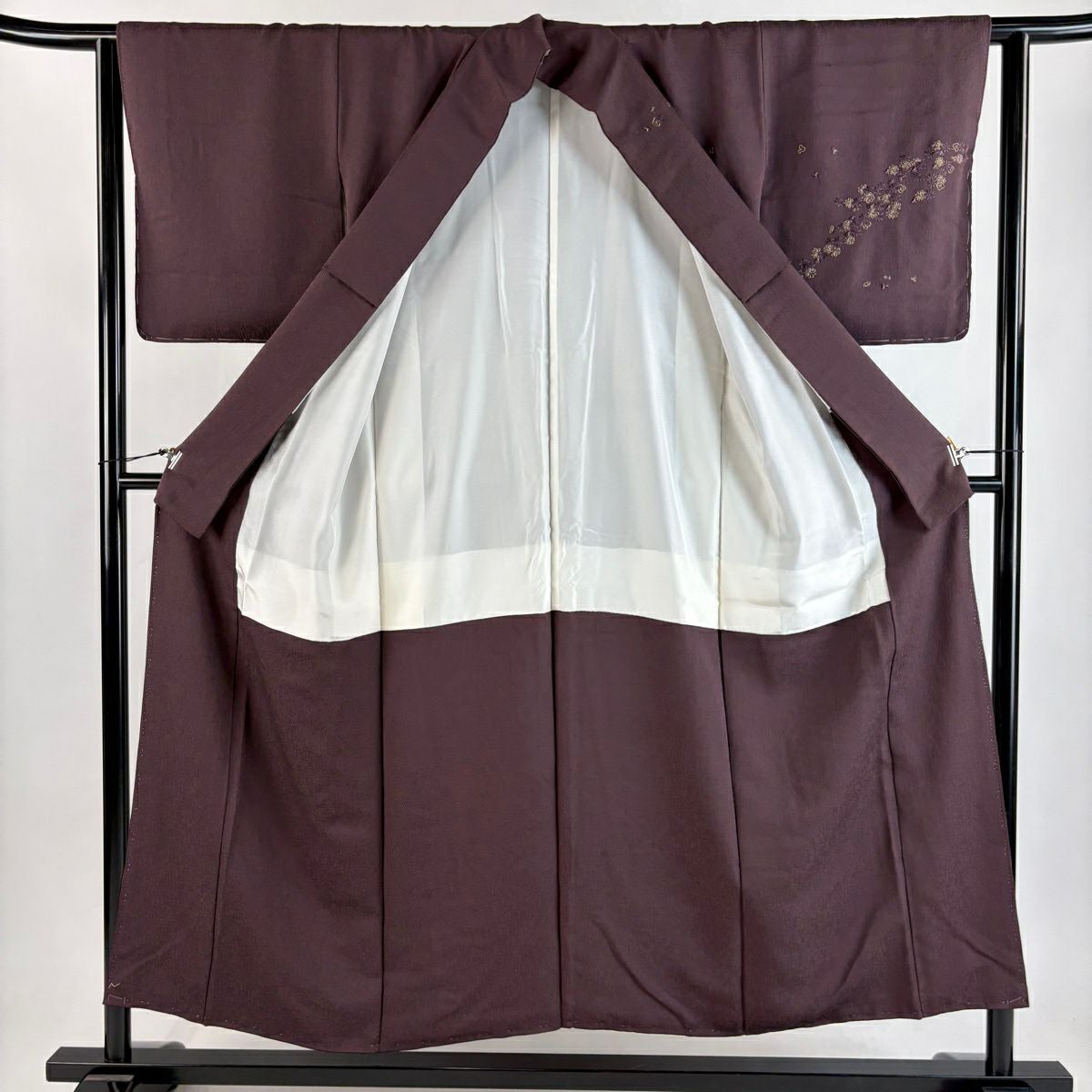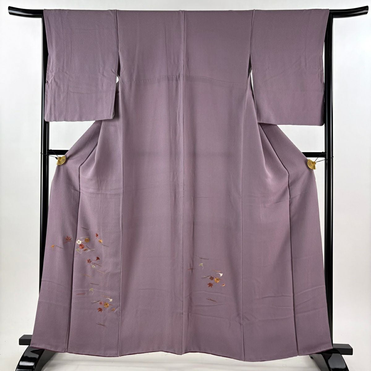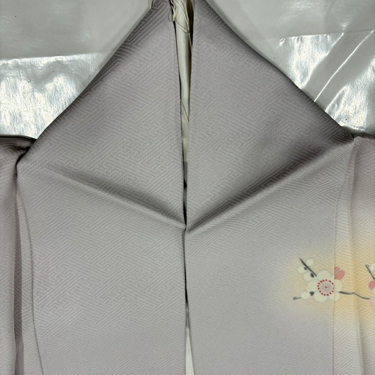 50%OFF 付下げ 身丈159cm 裄丈65cm M 袷 吹き寄せ 梅 金糸 刺繍 紫 正絹 秀品 K50