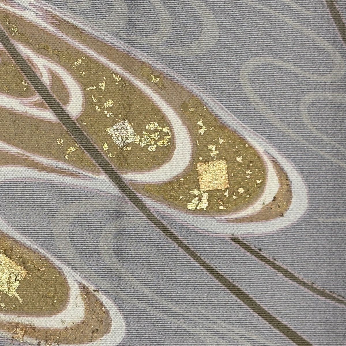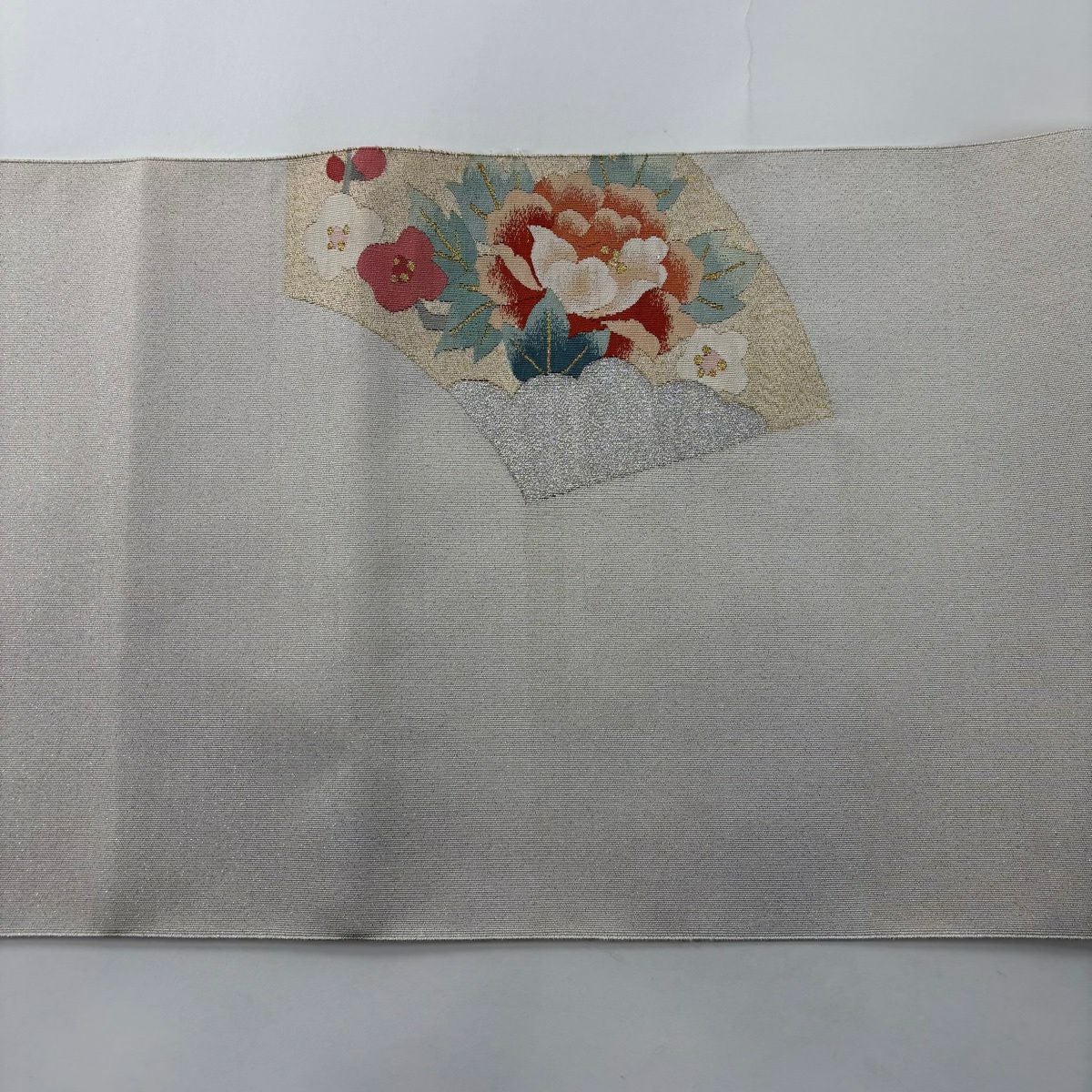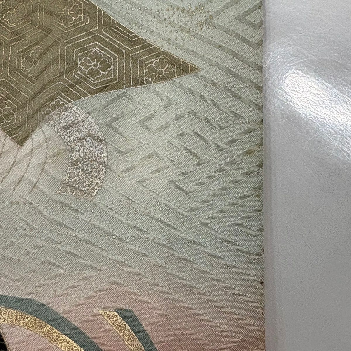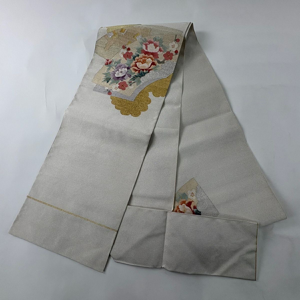 50%OFF 【美品】 袋帯 秀品 落款あり 関西仕立て 草花 亀甲 金銀糸 箔 灰白 六通 正絹 K50
