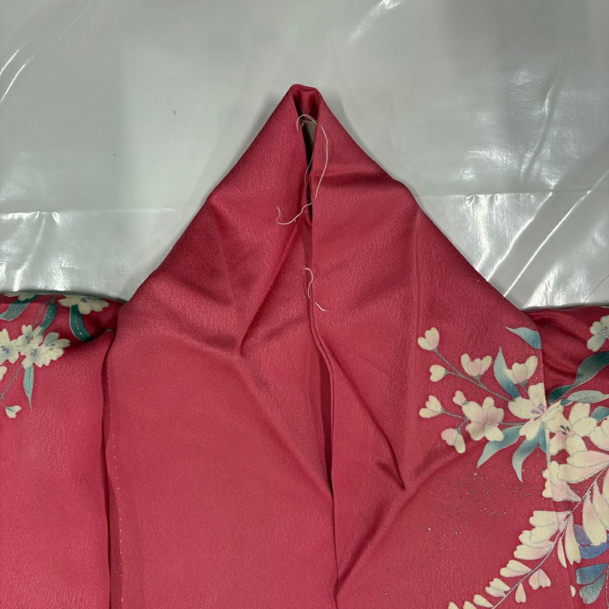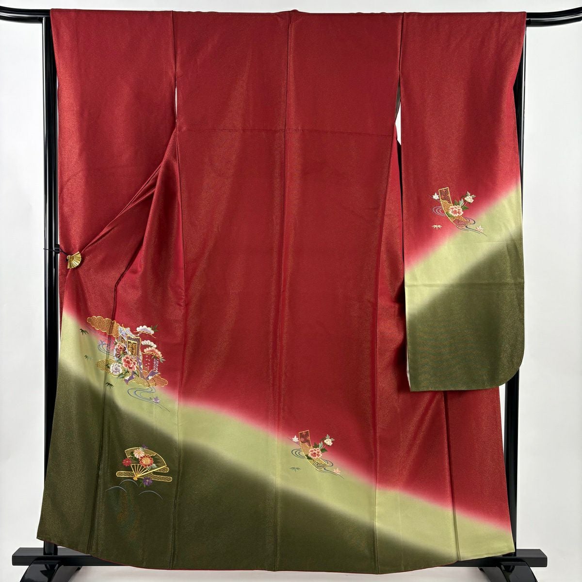 50%OFF 振袖 身丈159.5cm 裄丈67.5cm L 袷 桜 蘭菊 金彩 ぼかし 赤 正絹 秀品 K50