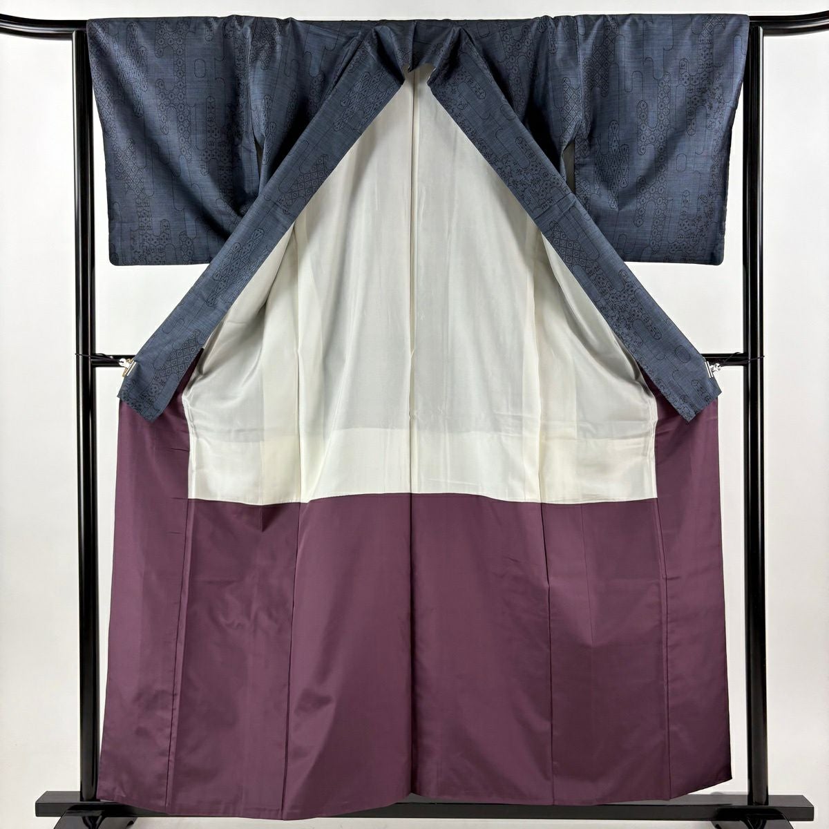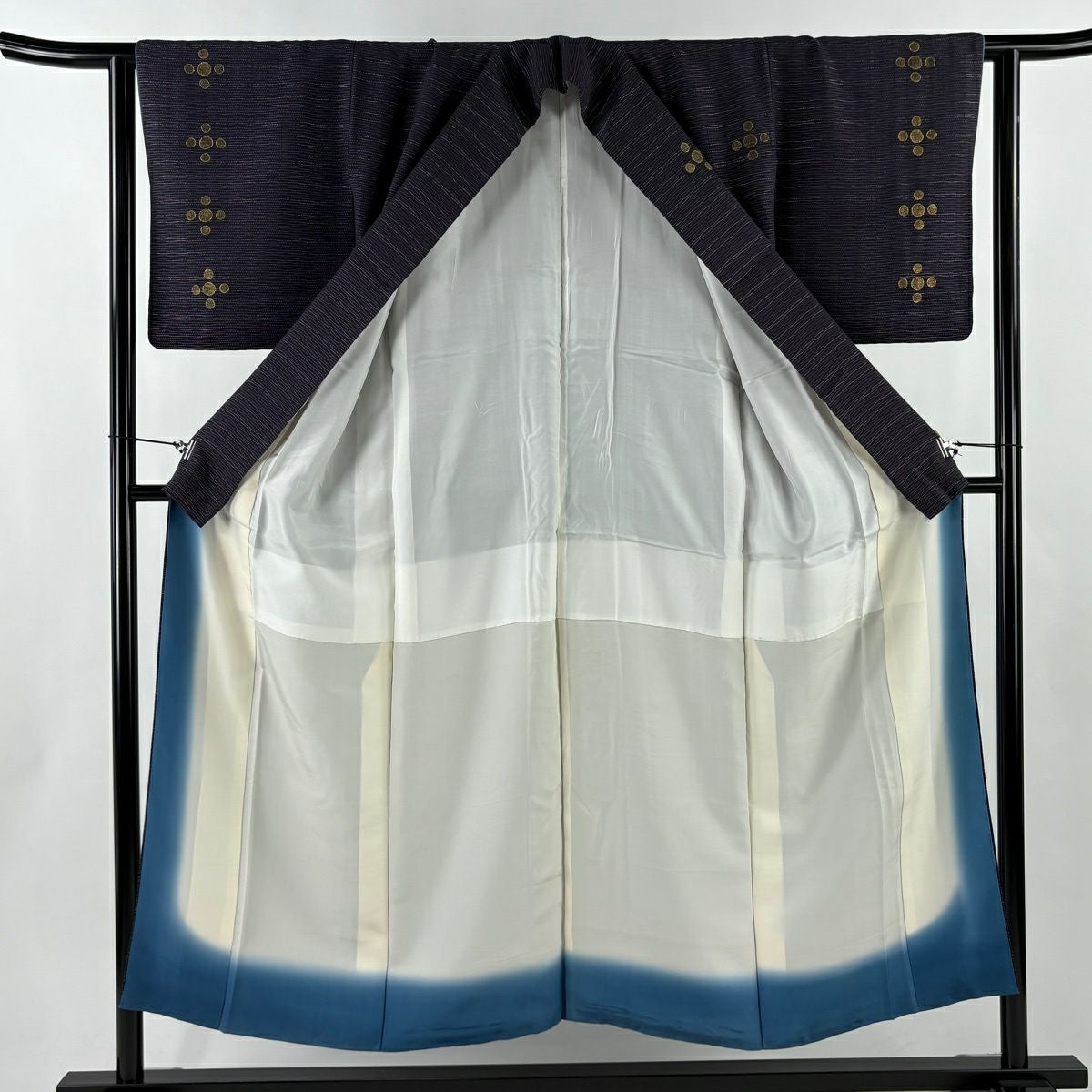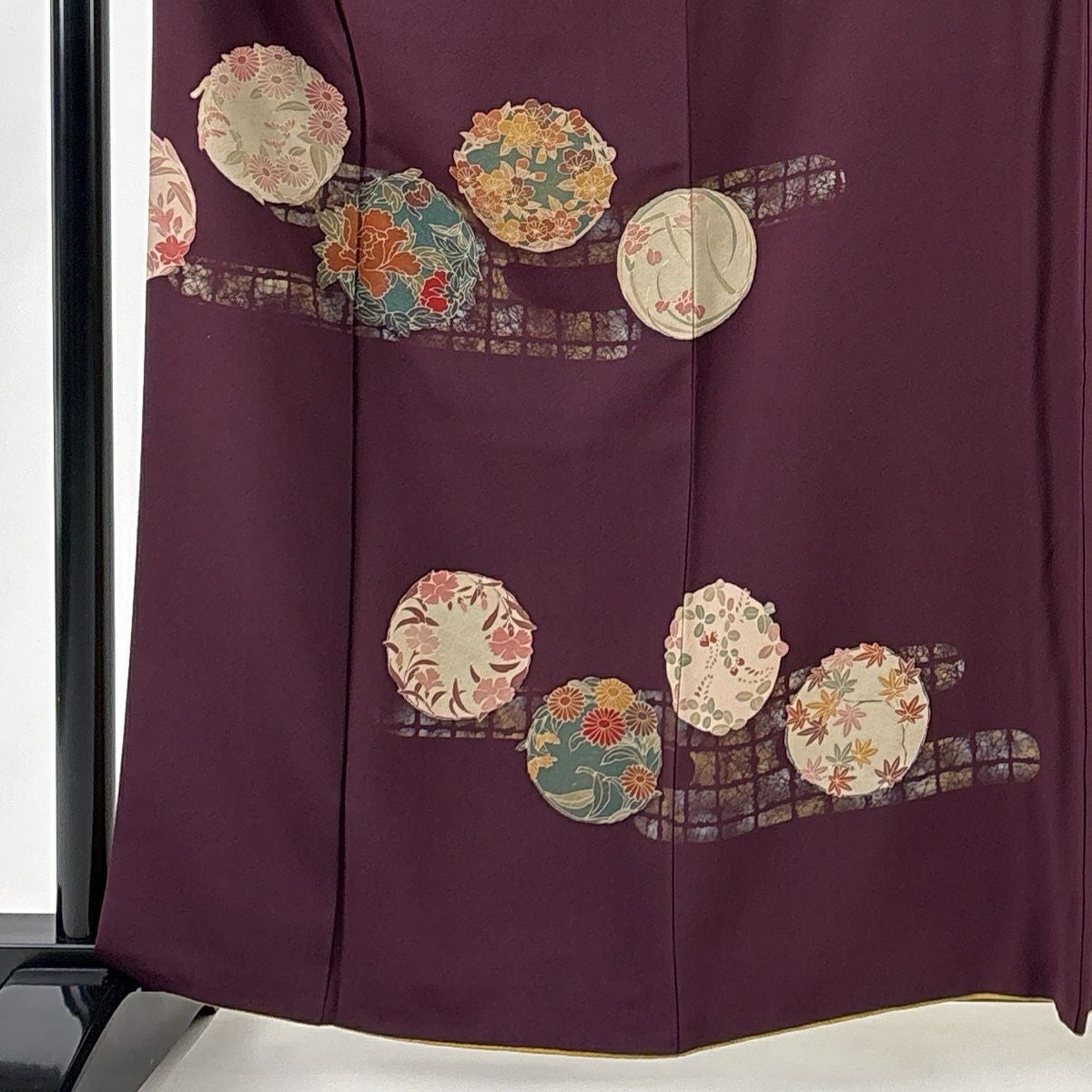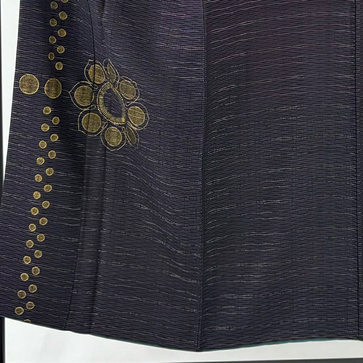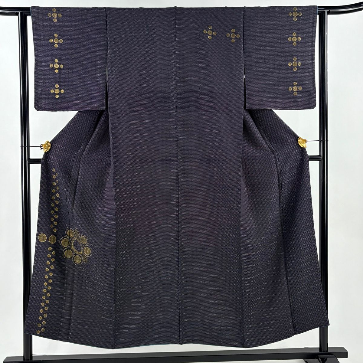 50%OFF 付下げ 身丈151.5cm 裄丈61.5cm S 袷 花 横縞 銀糸 金彩 濃紫 正絹 秀品 K50