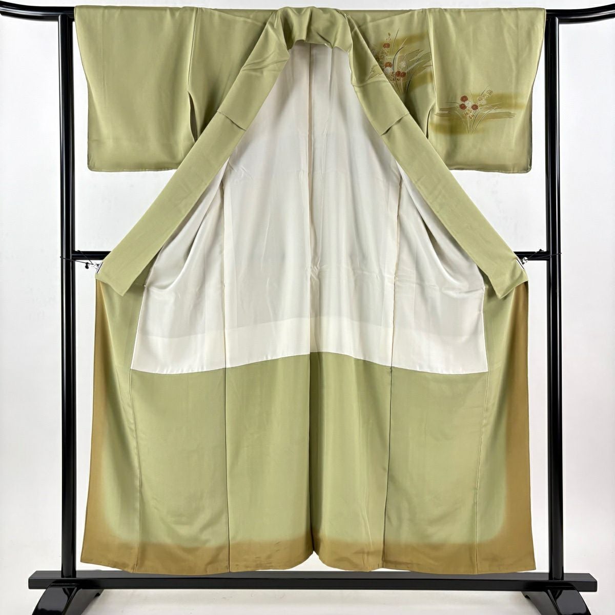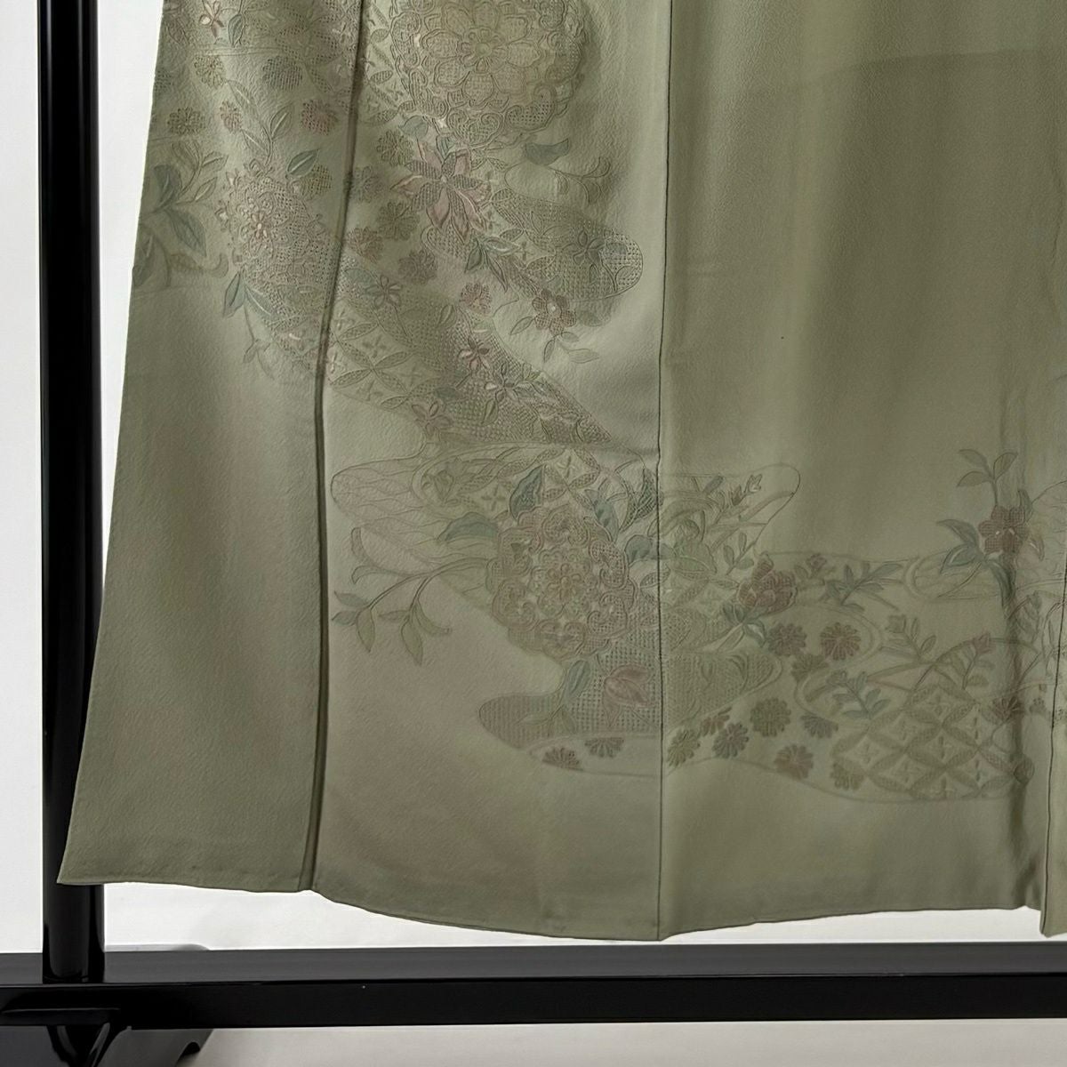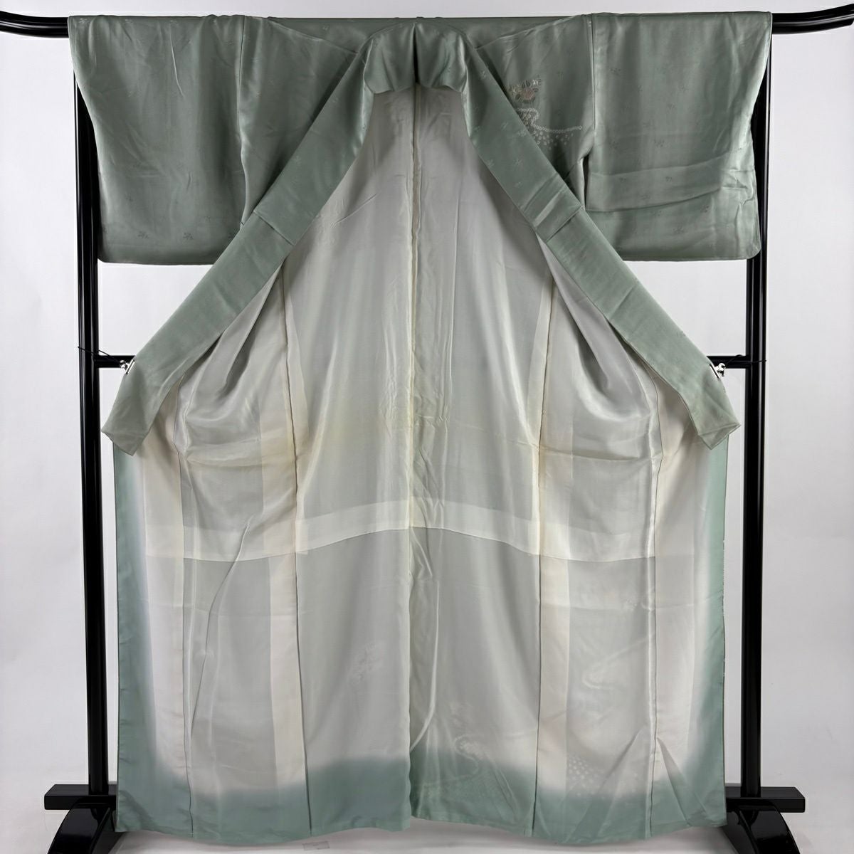 50%OFF 訪問着 身丈155cm 裄丈64.5cm M 袷 梅 菊 金彩 ぼかし 薄緑 正絹 秀品 K50