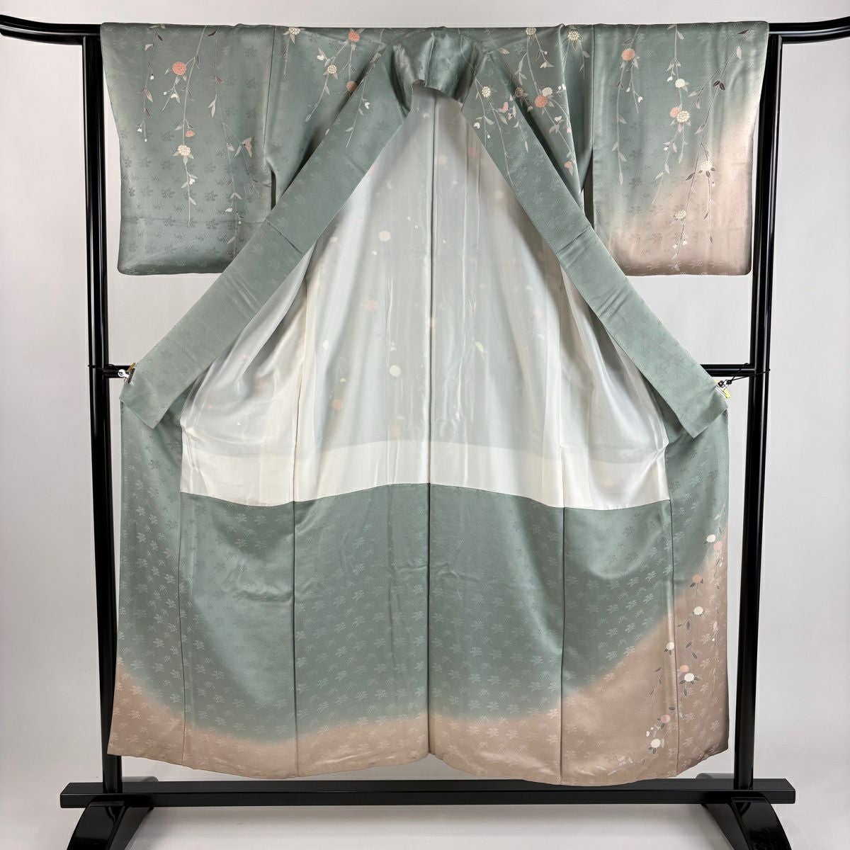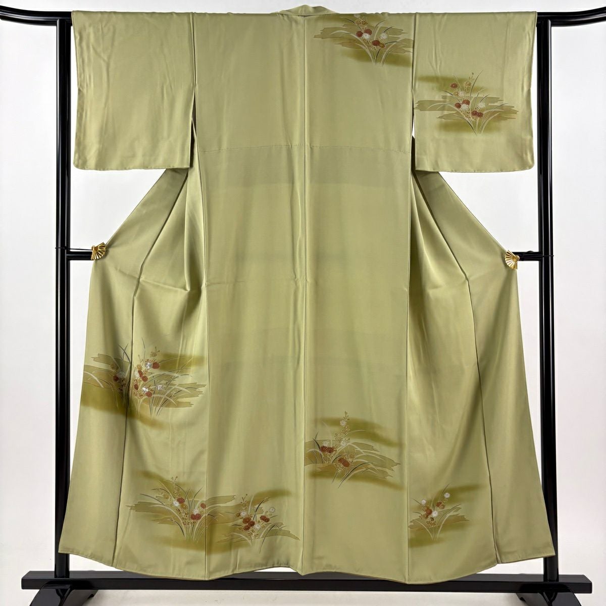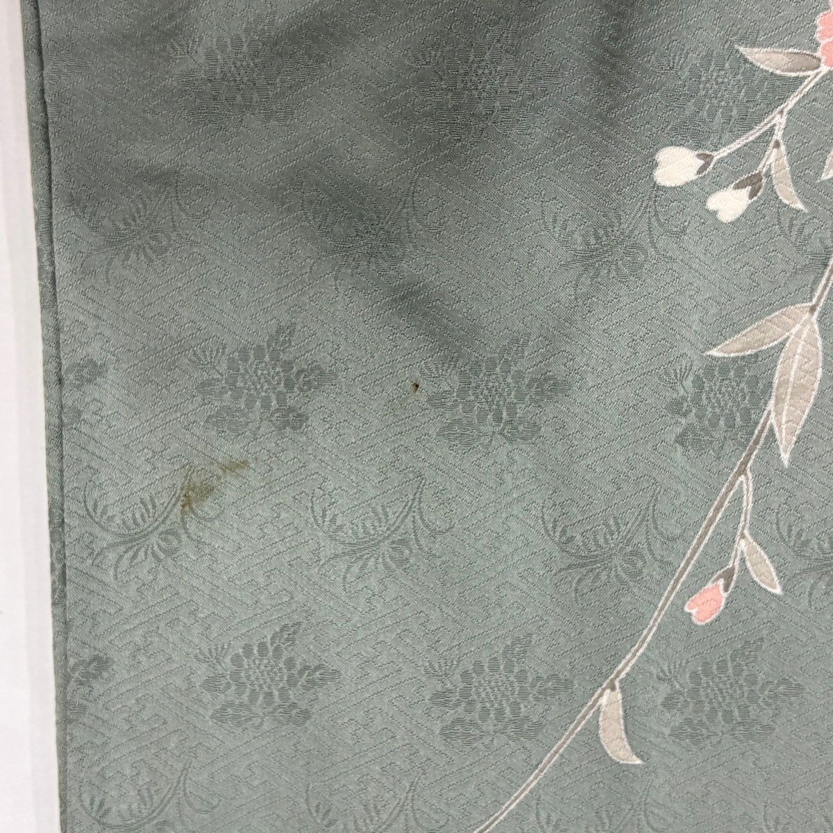 50%OFF 訪問着 身丈155cm 裄丈64.5cm M 袷 梅 菊 金彩 ぼかし 薄緑 正絹 秀品 K50