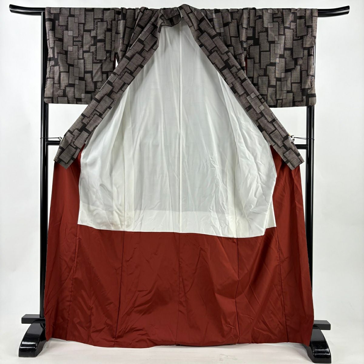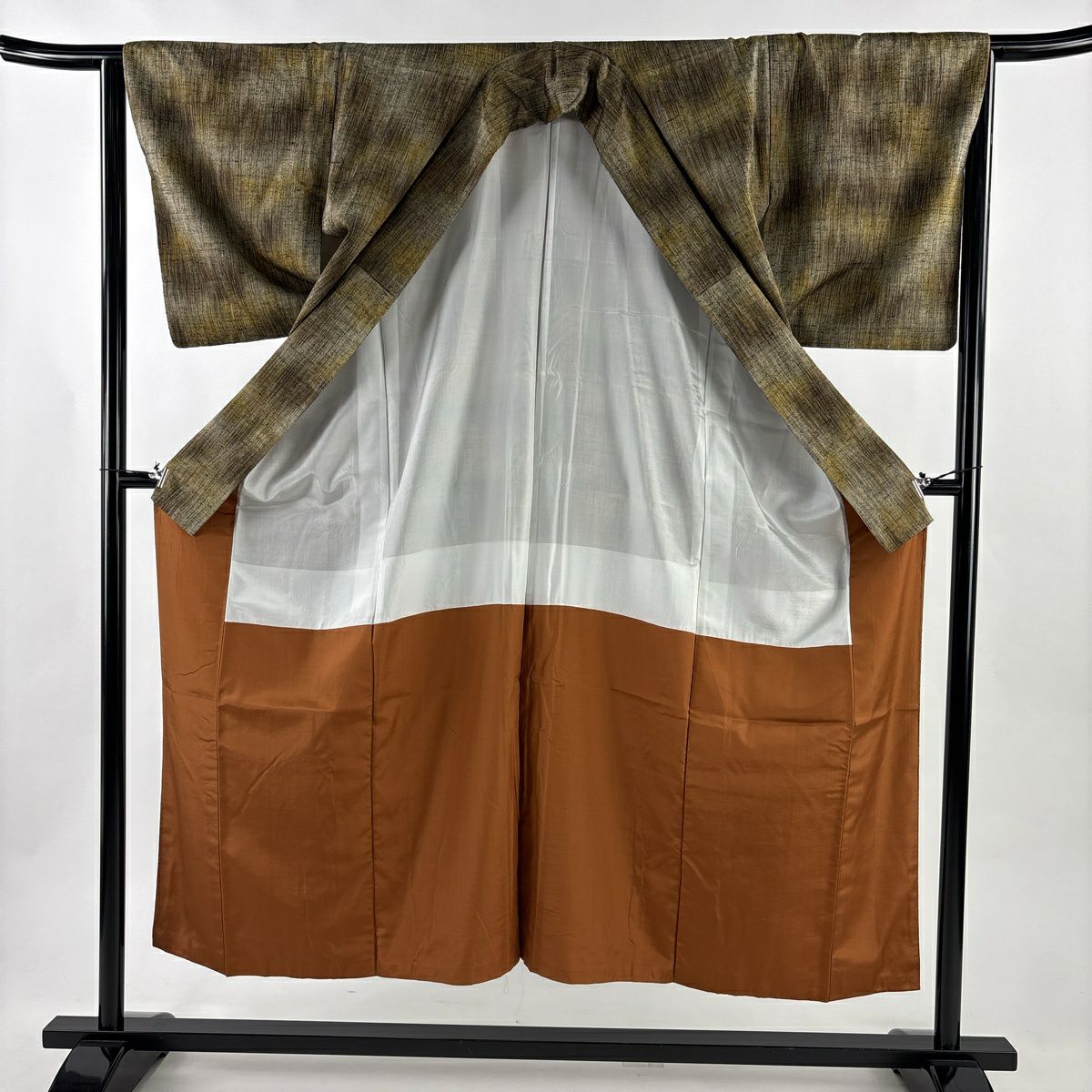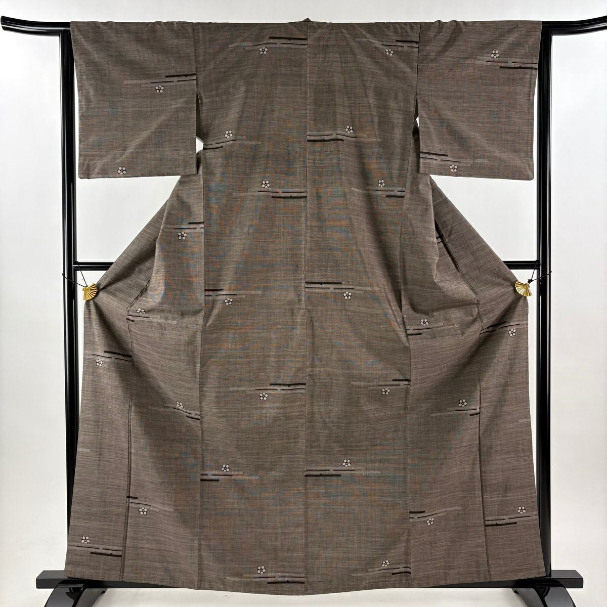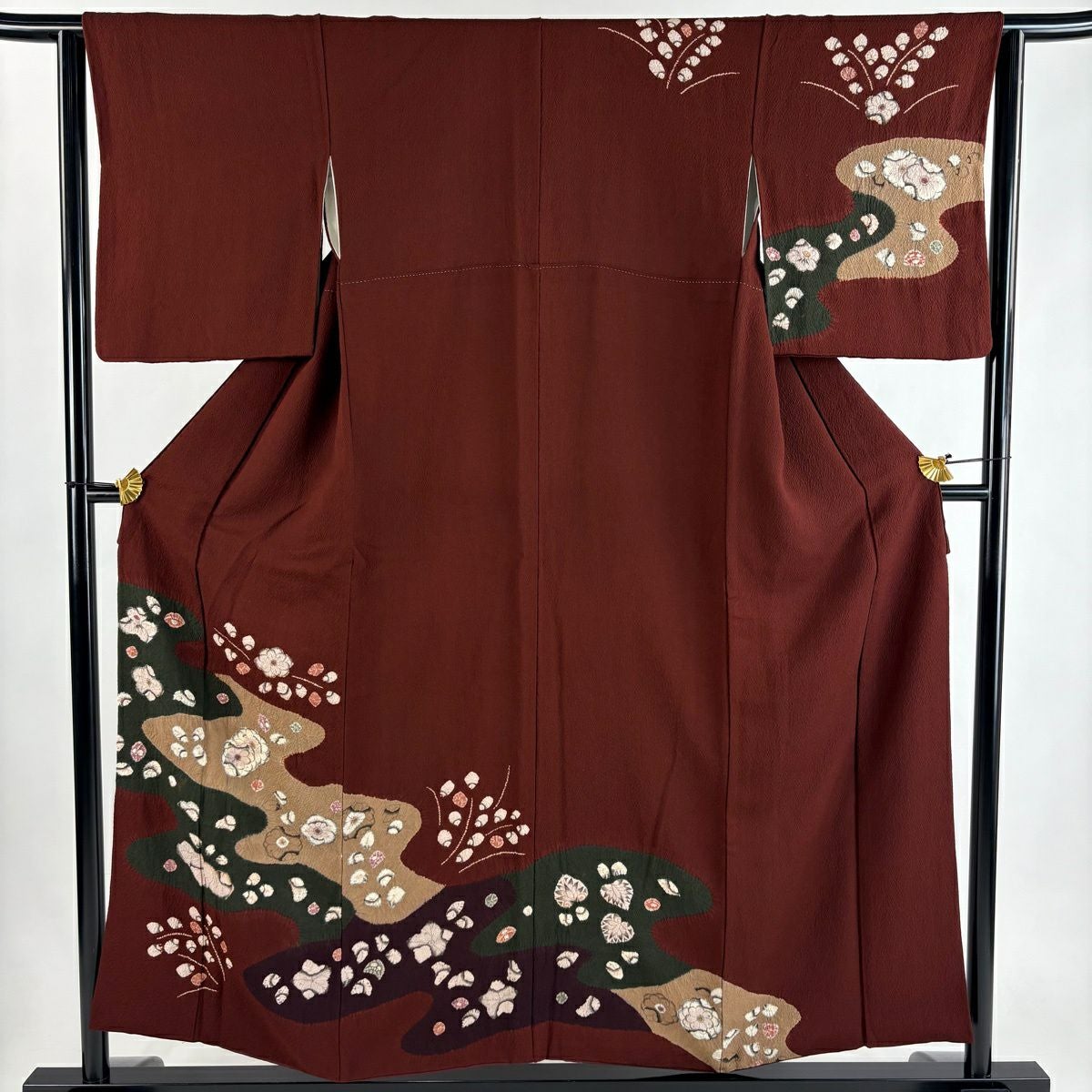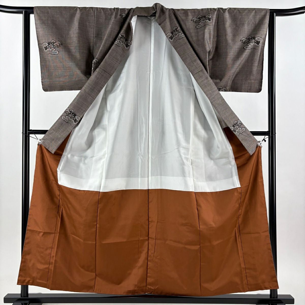 50%OFF 紬 身丈163.5cm 裄丈64cm M 袷 ますいわ屋 梅 ヱ霞 焦茶色 正絹 秀品 K50