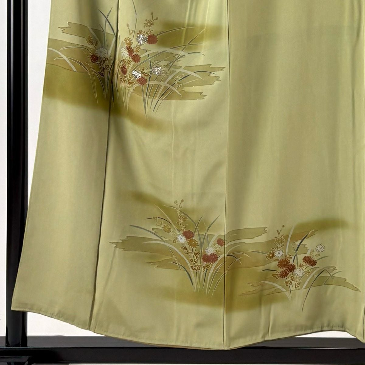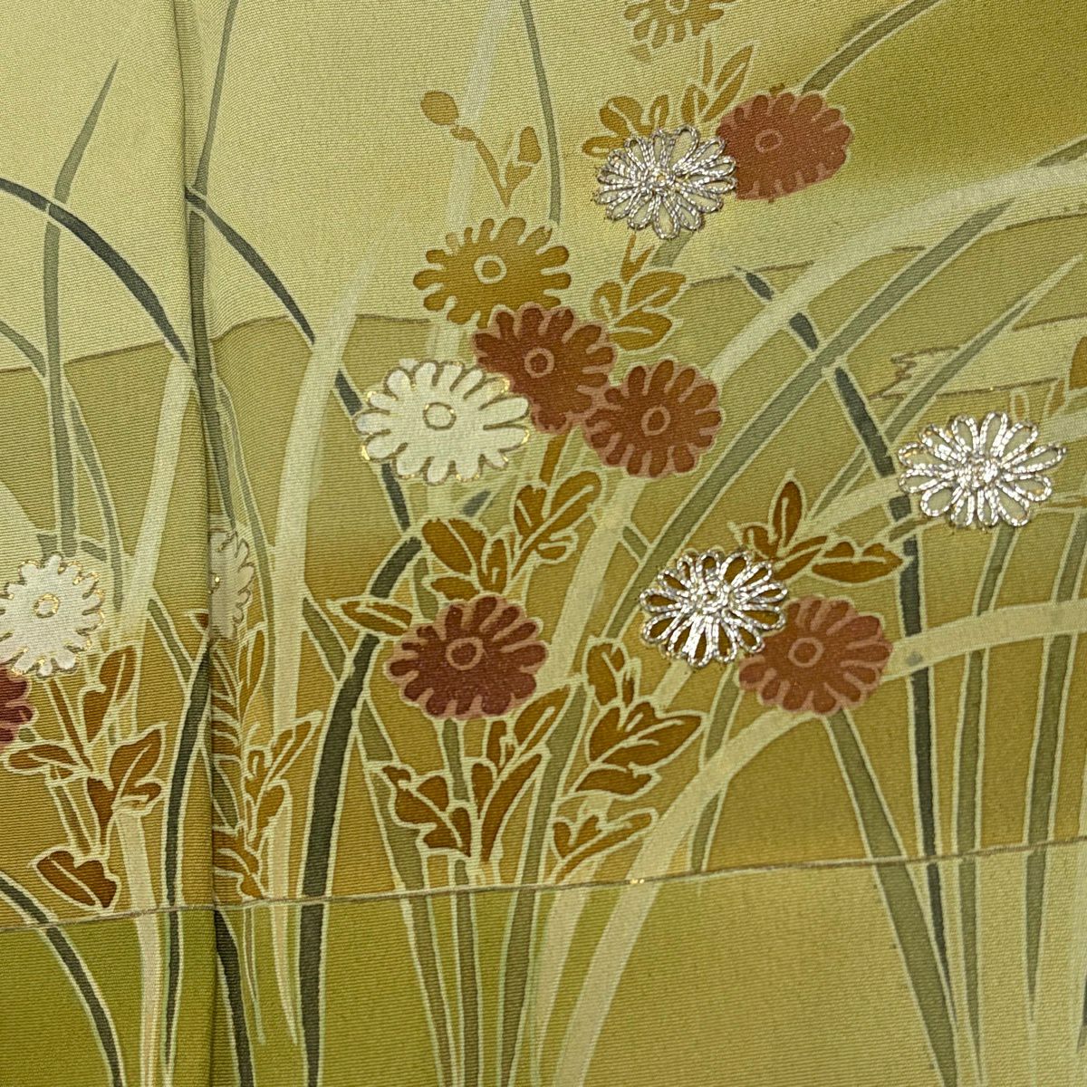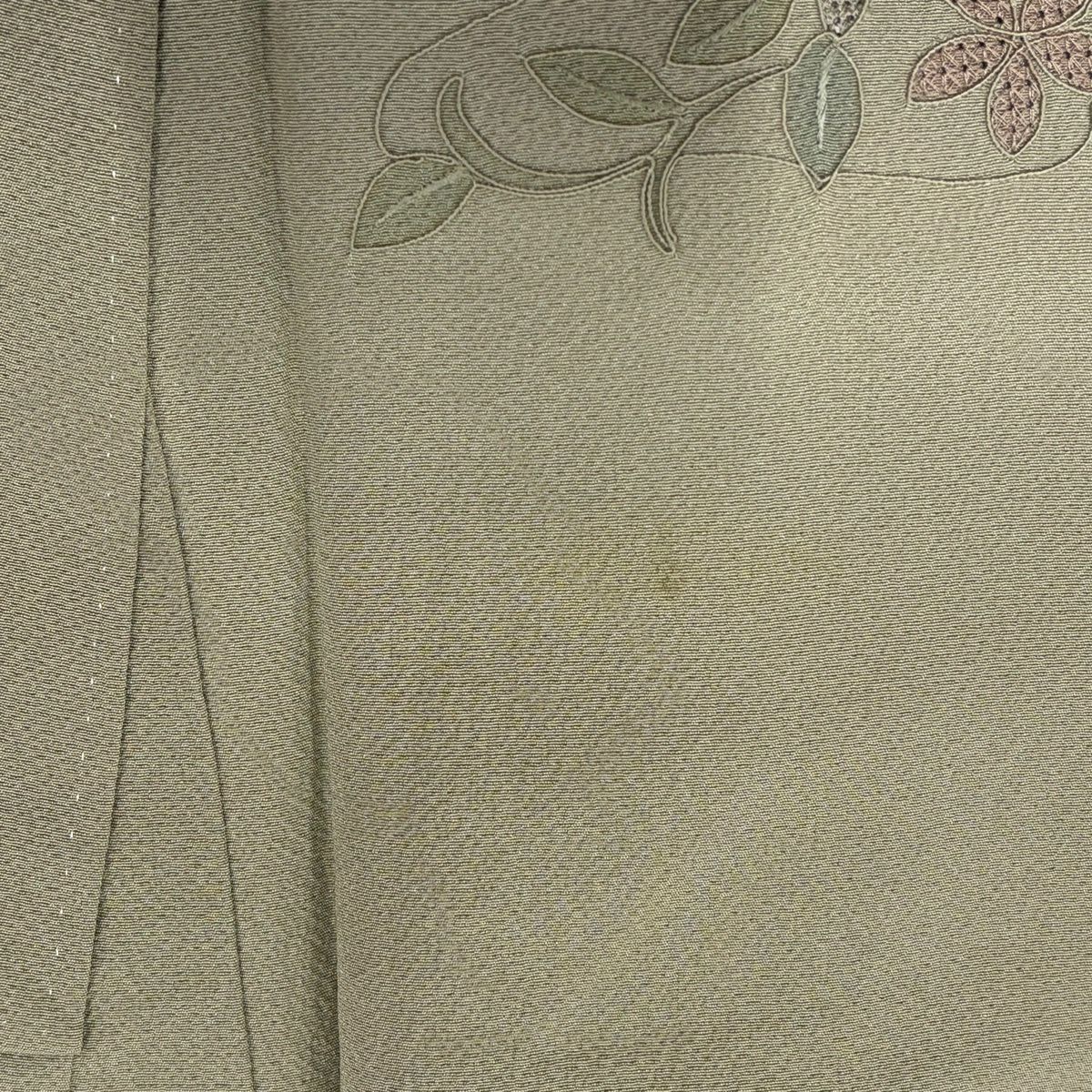 50%OFF 付下げ 身丈150cm 裄丈63cm S 袷 貝 草花 刺繍 金糸 黄土色 正絹 秀品 K50