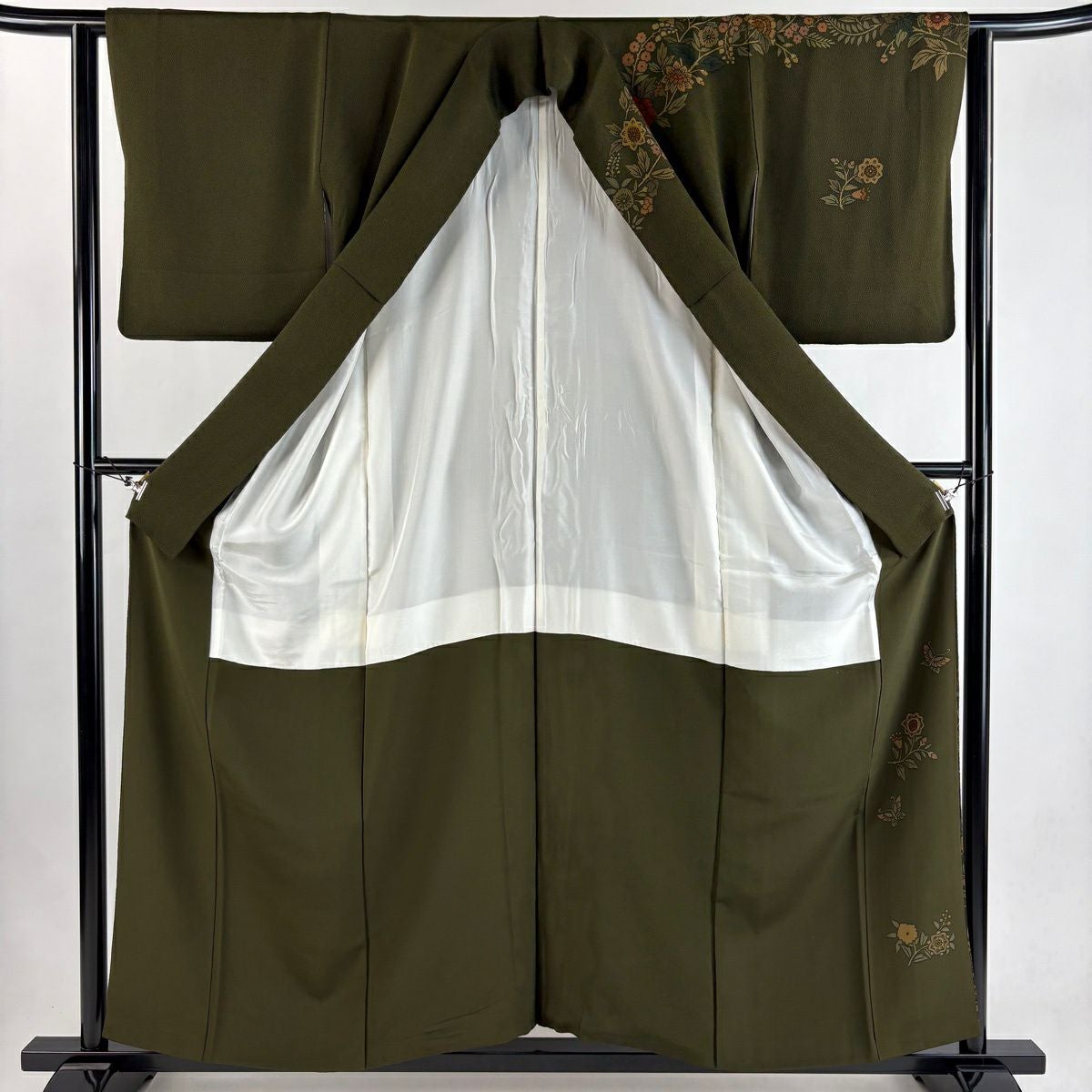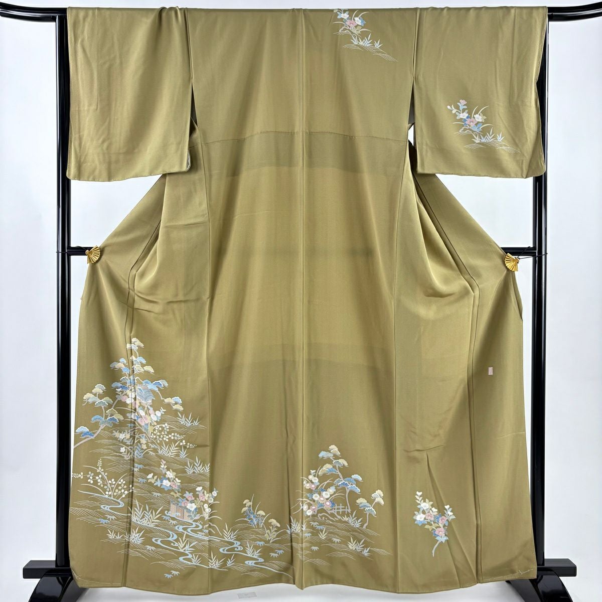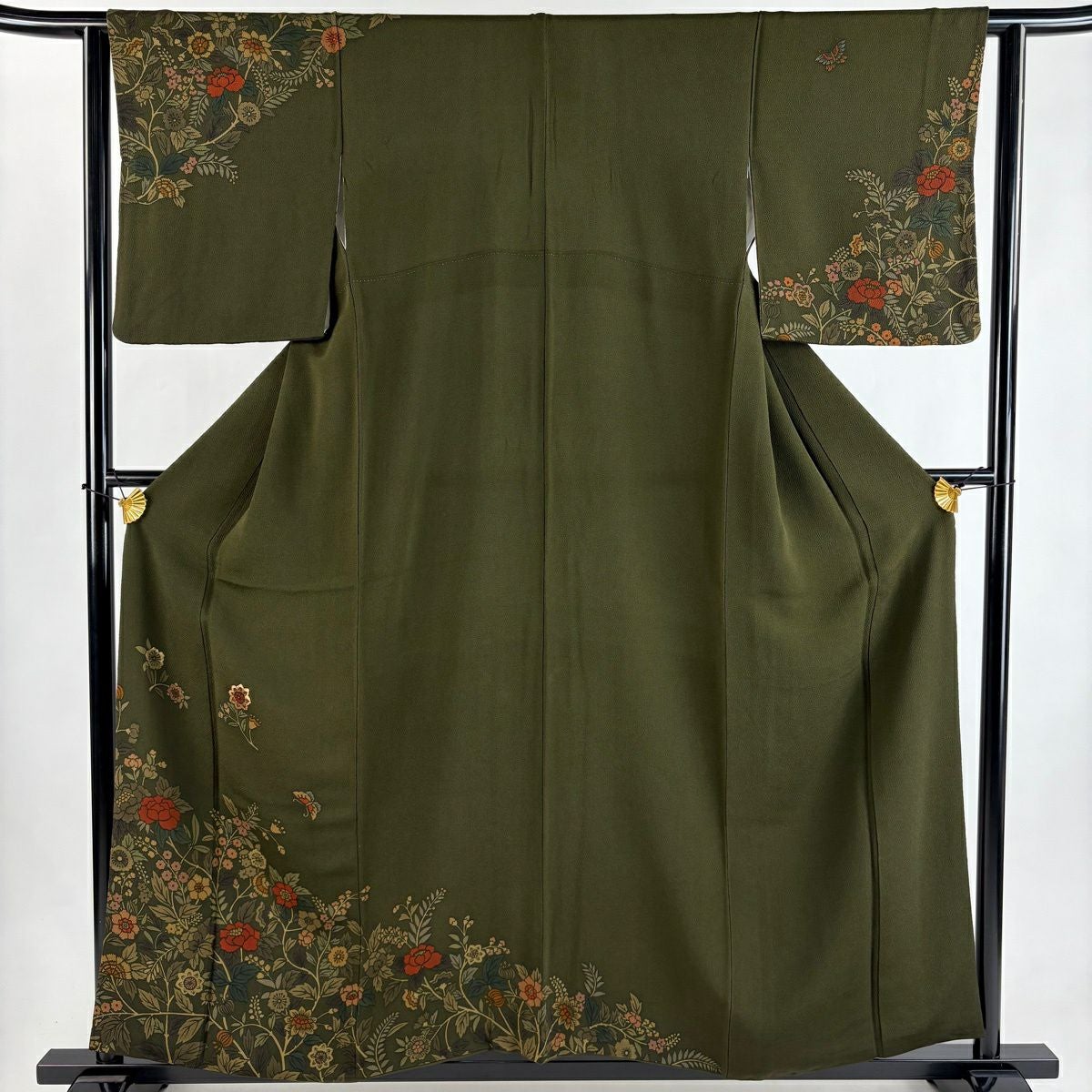 50%OFF 付下げ 身丈150cm 裄丈63cm S 袷 貝 草花 刺繍 金糸 黄土色 正絹 秀品 K50