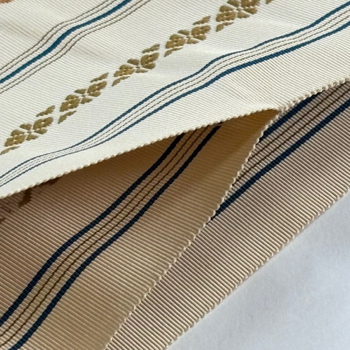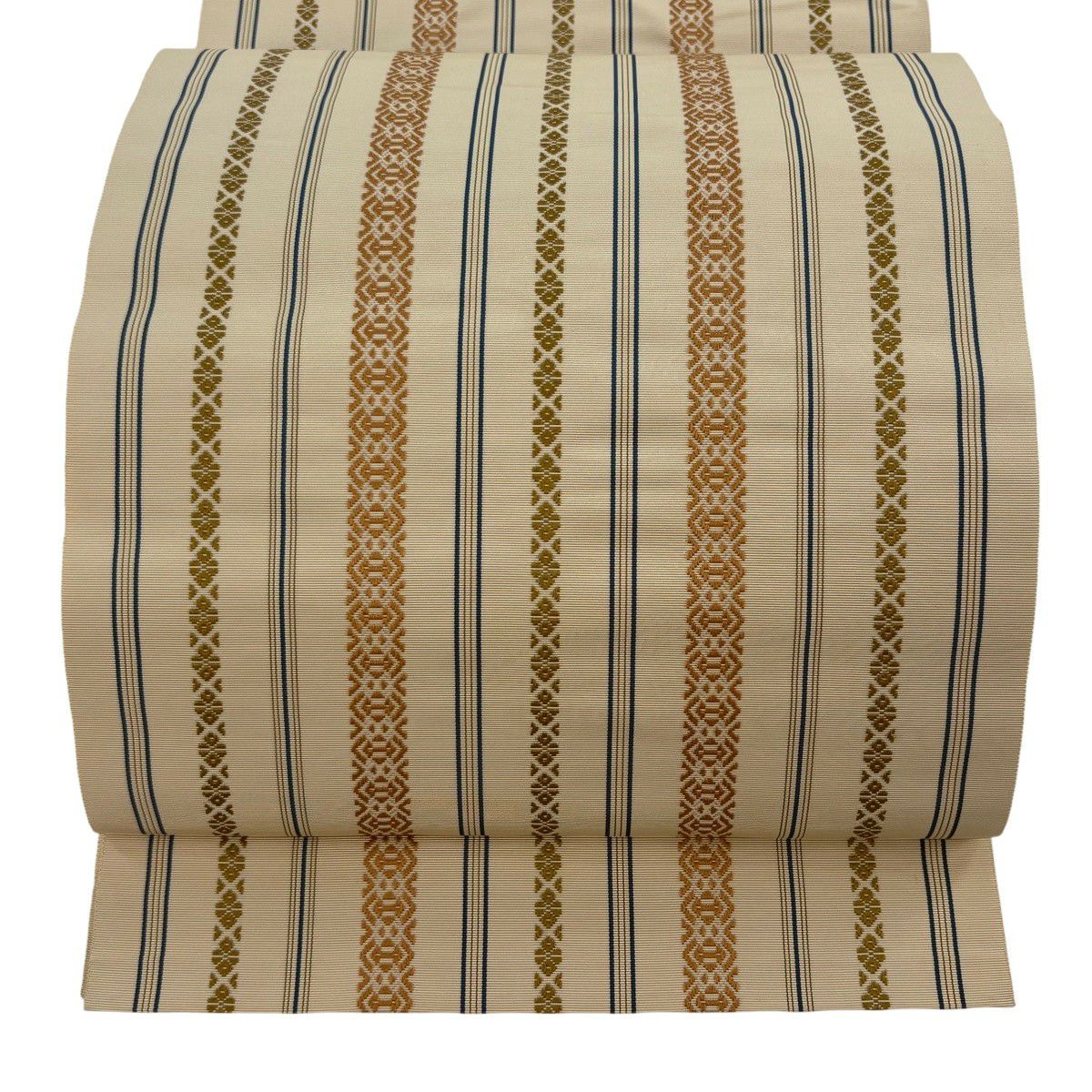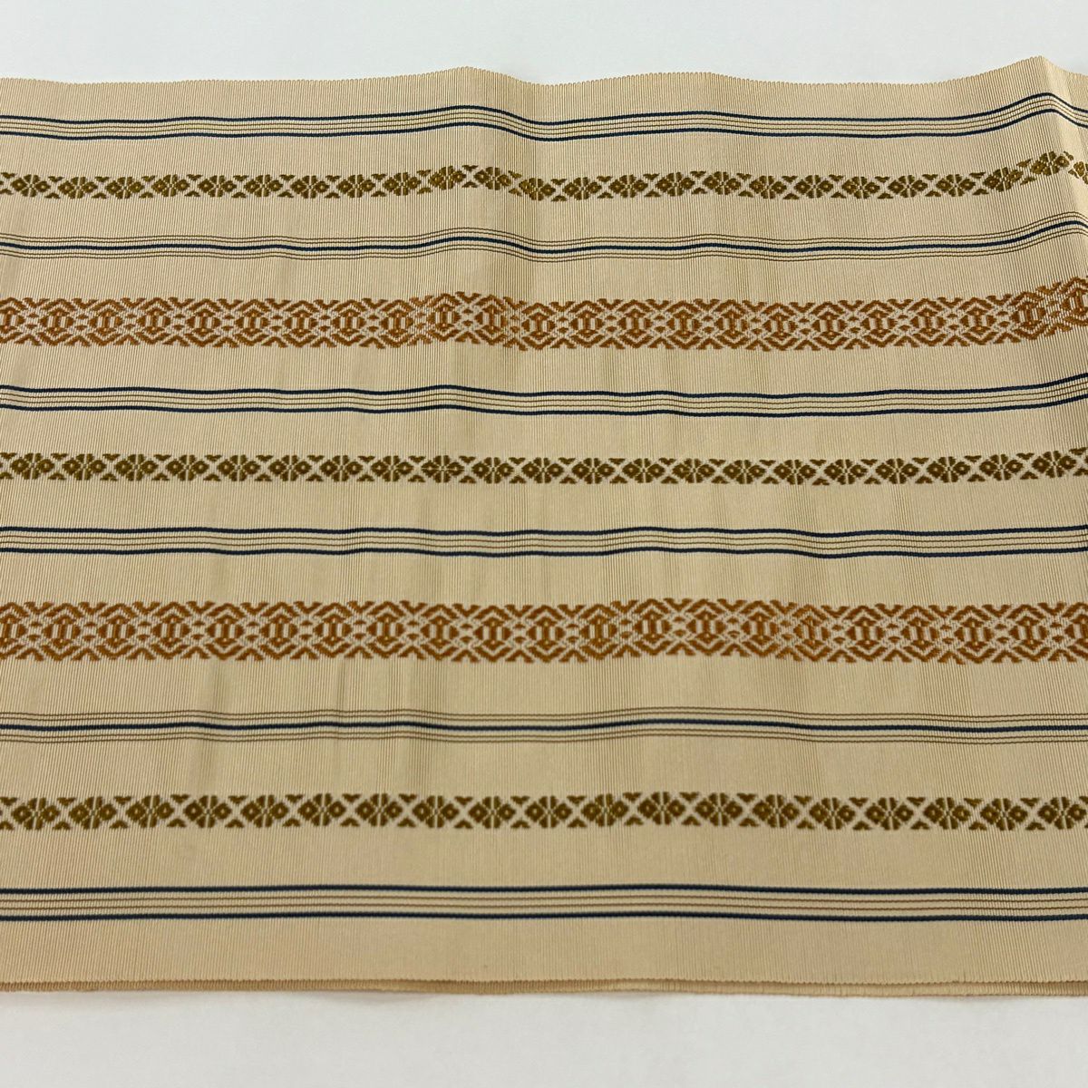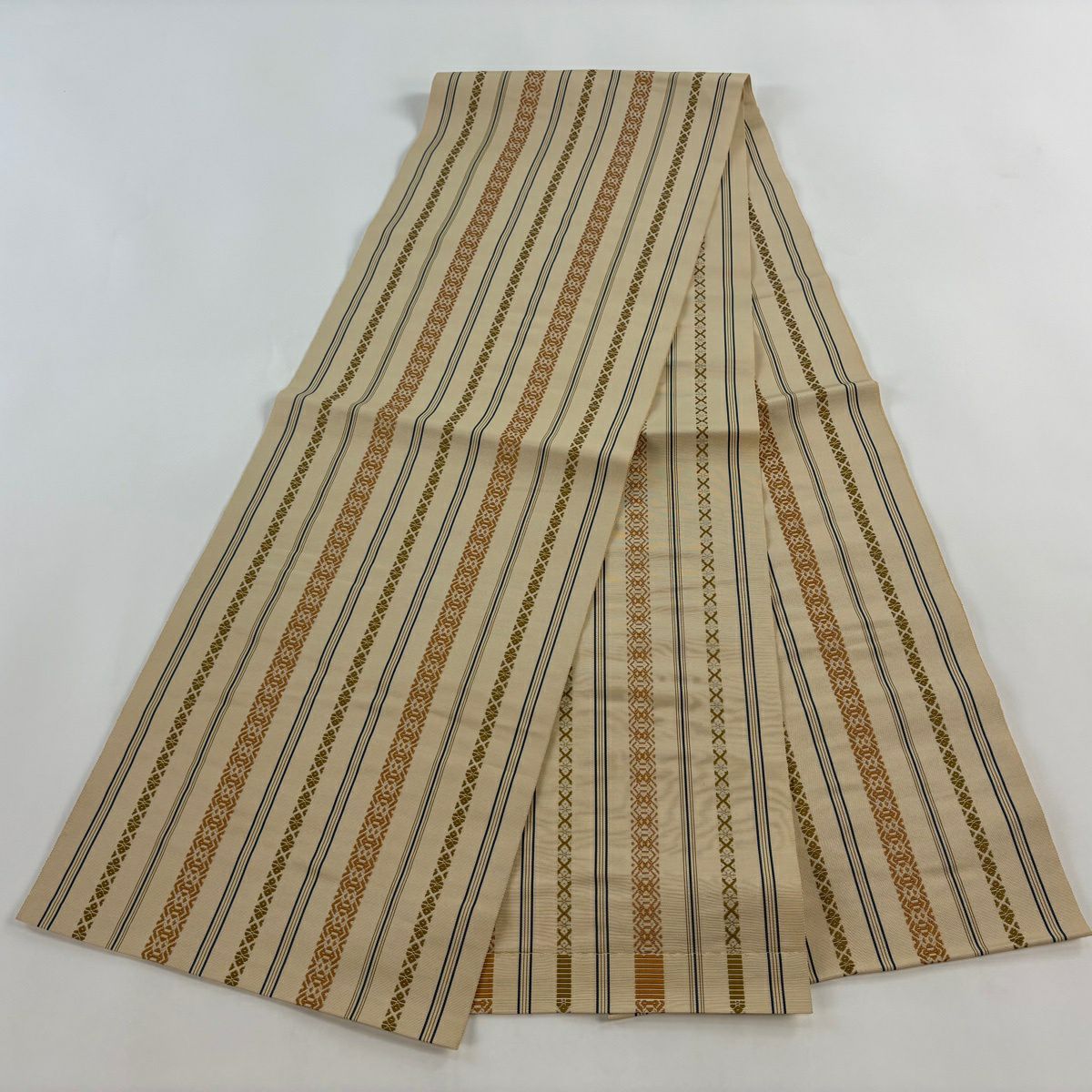 50%OFF 【美品】 名古屋帯 秀品 八寸名古屋帯 トンネル仕立て 縞 幾何学模様 ベージュ 正絹 K50