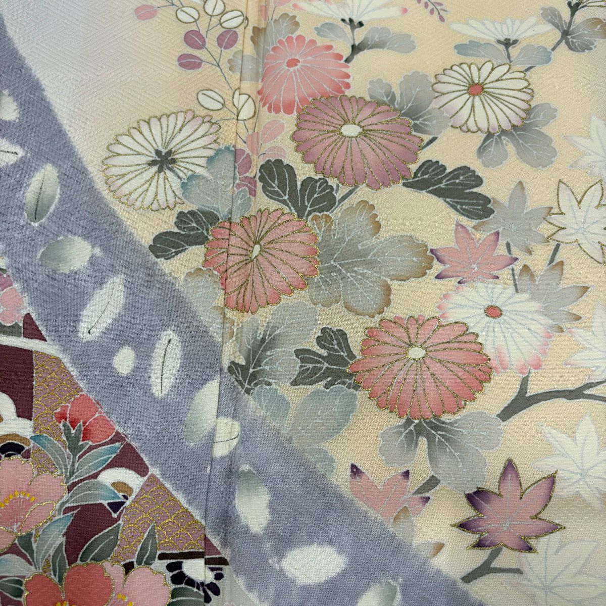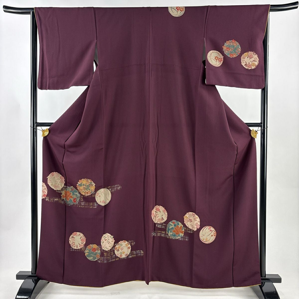 50%OFF 訪問着 身丈152cm 裄丈62.5cm S 袷 菊 流水 刺繍 金糸 紫 正絹 秀品 K50