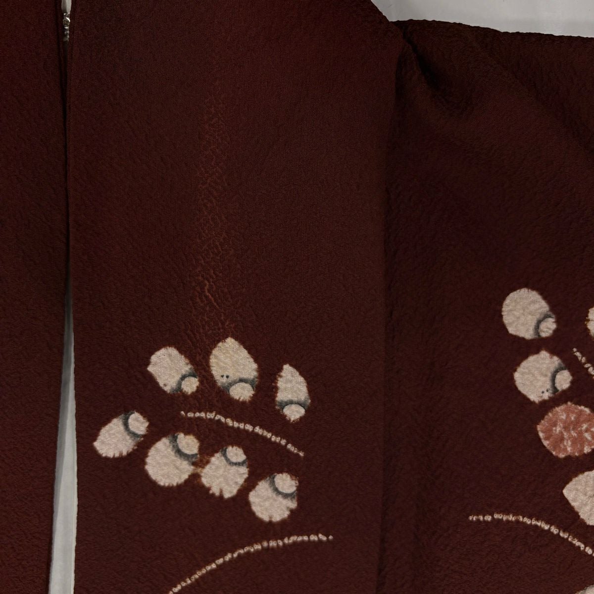 50%OFF 小紋 身丈161.5cm 裄丈66cm M 袷 菊 椿 縮緬 小豆色 正絹 秀品 一つ紋 K50