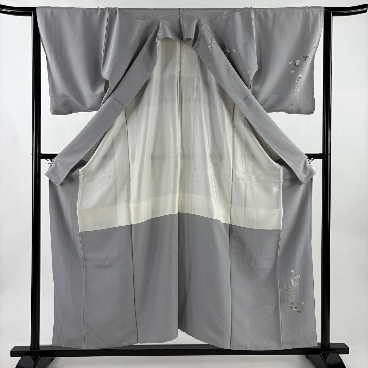 50%OFF 【美品】 付下げ 身丈158.5cm 裄丈62cm S 袷 縦縞 梅 灰色 正絹 秀品 K50