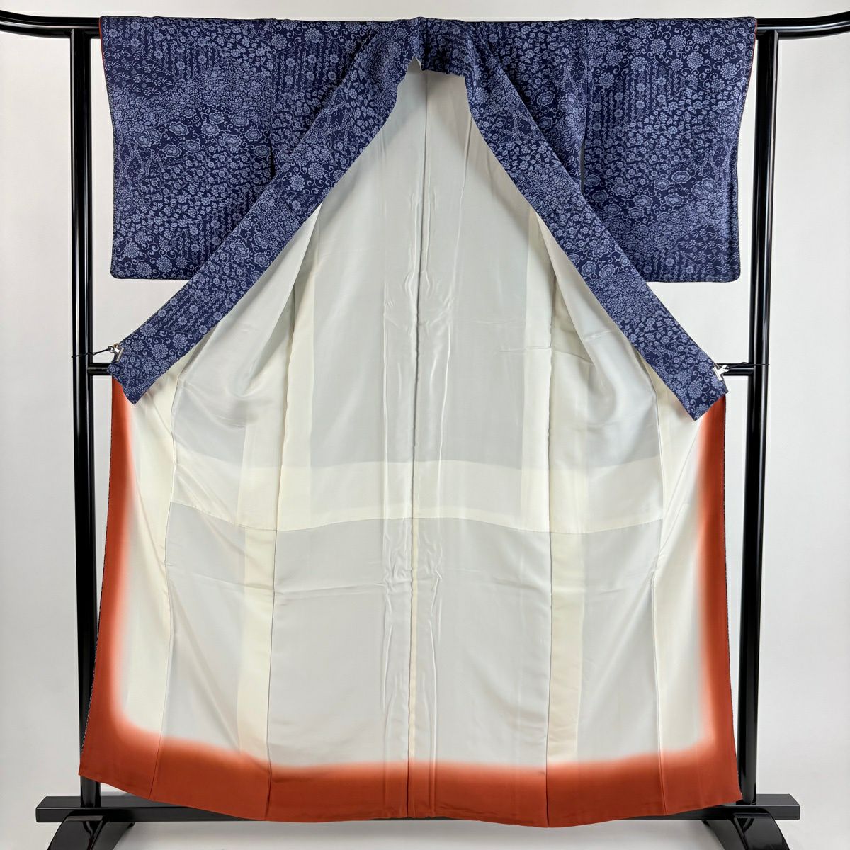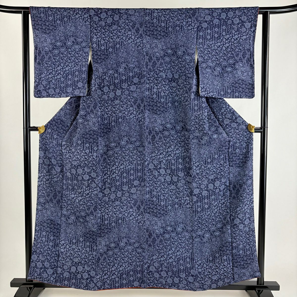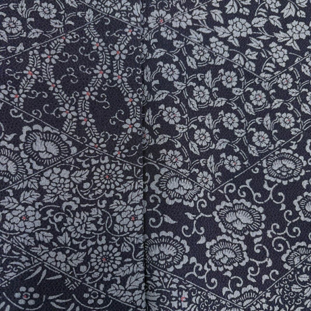 50%OFF 【美品】 紬 身丈158cm 裄丈64.5cm M 袷 壺垂れ 草花 藍色 正絹 秀品 K50