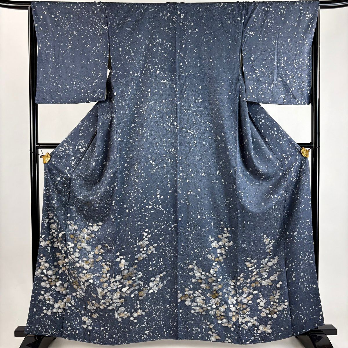 50%OFF 小紋 身丈156cm 裄丈64.5cm M 袷 枝垂れ桜 金彩 絞り 青紫 正絹 秀品 K50