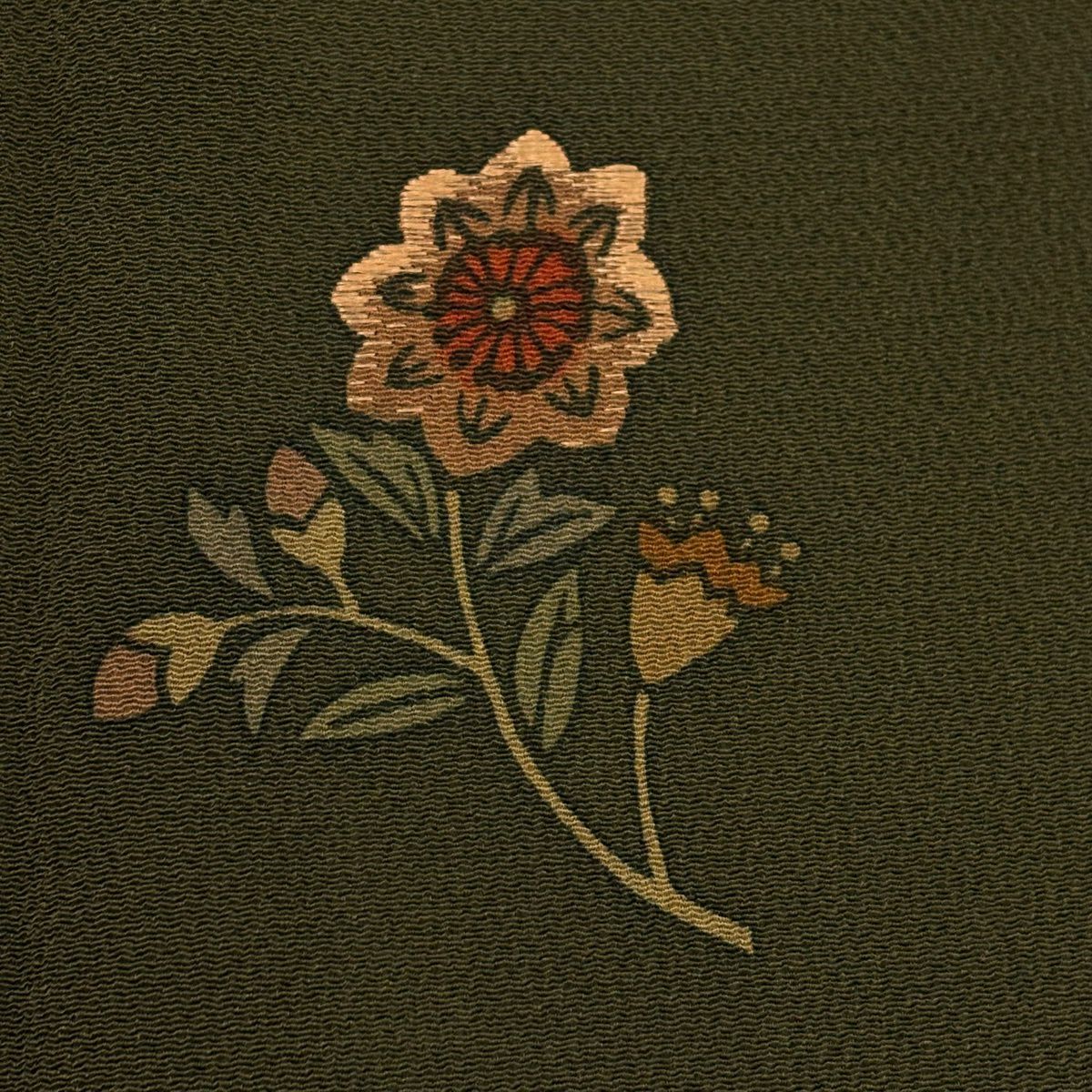 50%OFF 【美品】 袋帯 秀品 落款あり 雪間乃草 七宝文 花 金銀糸 箔 茶緑色 六通 正絹 K50