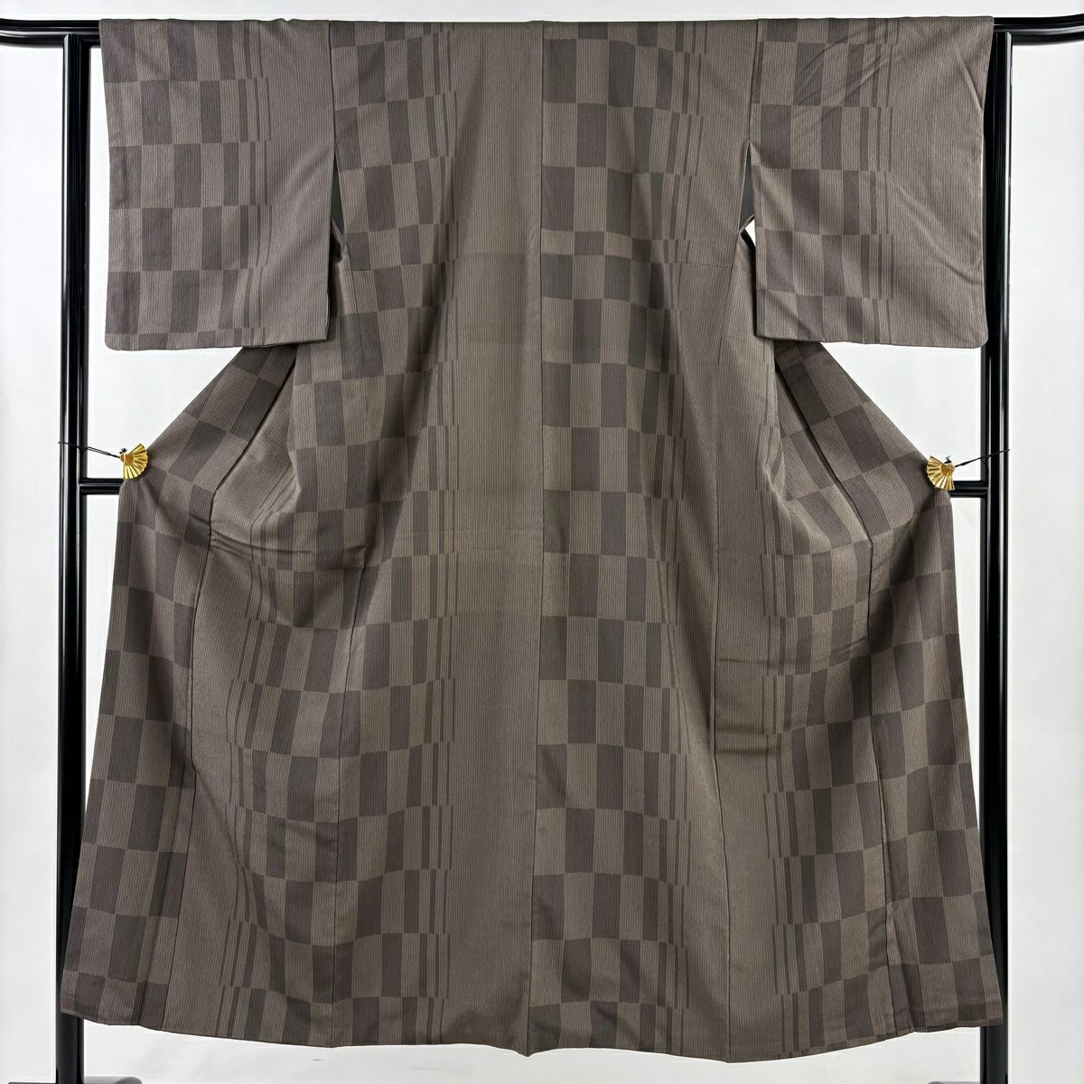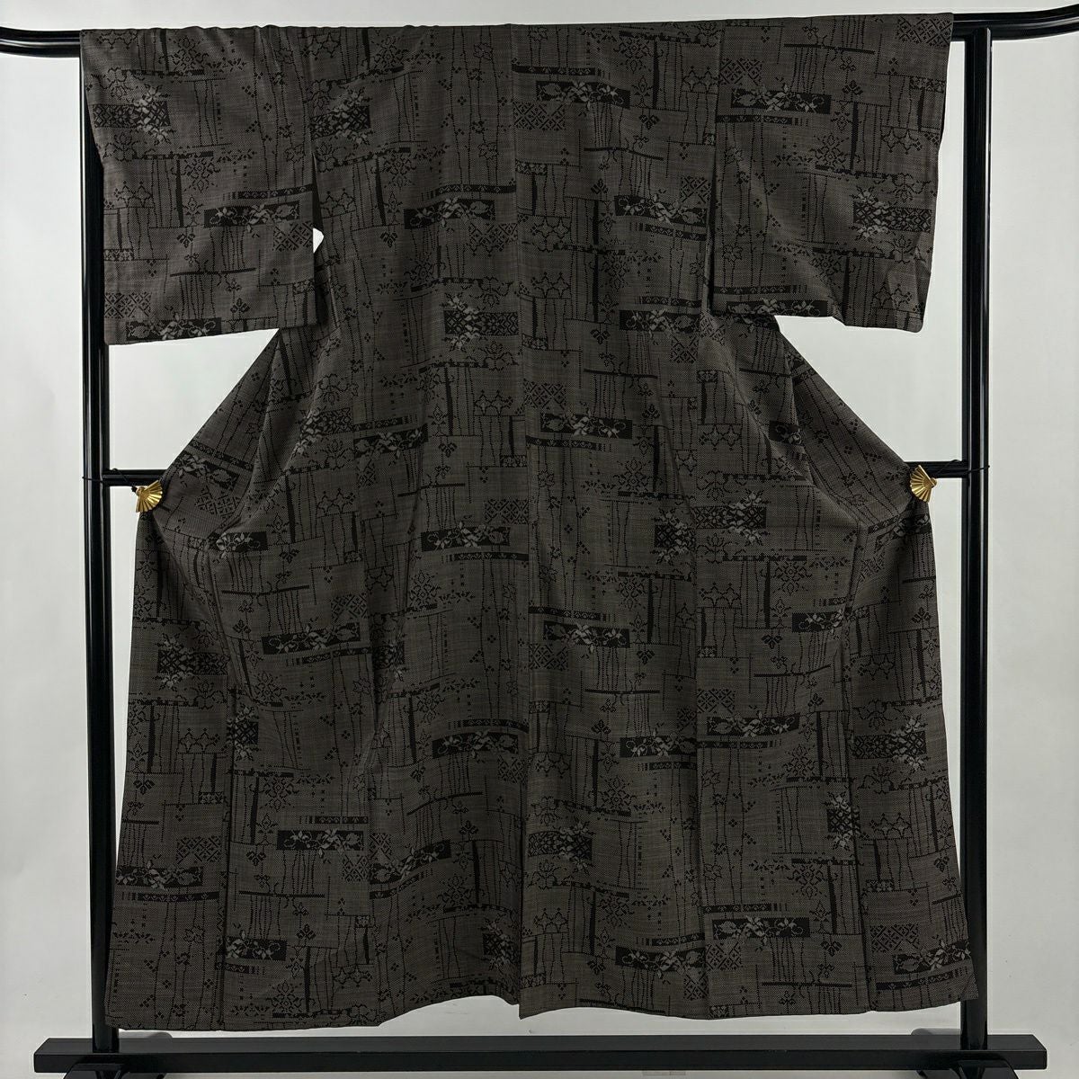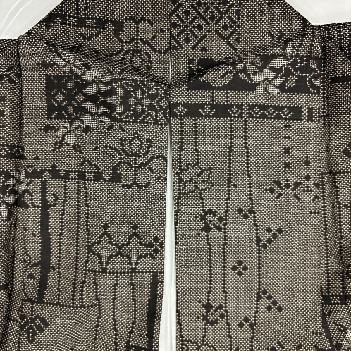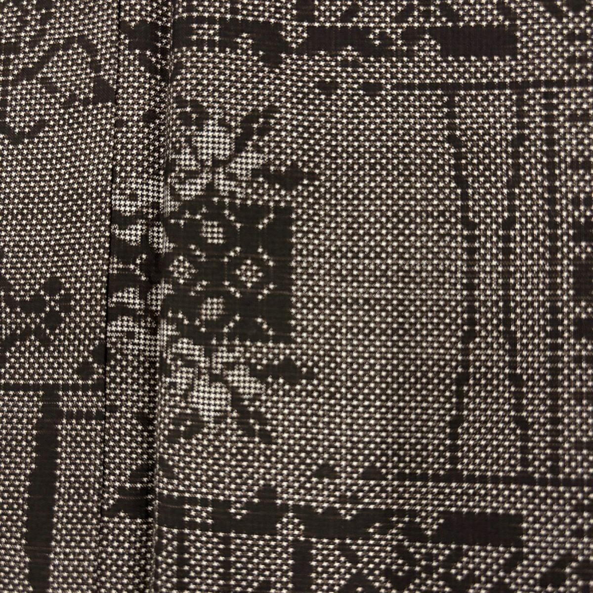 50%OFF 【美品】 小紋 身丈159.5cm 裄丈64.5cm M 袷 桧垣 絞り 茶色 正絹 秀品 K50