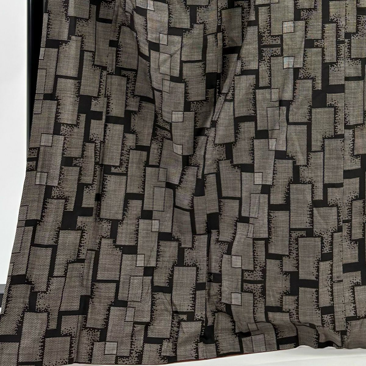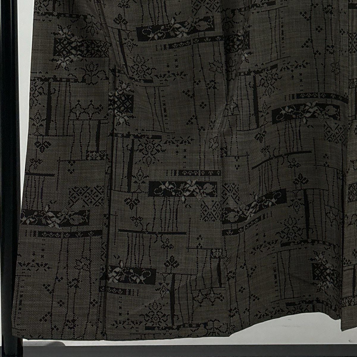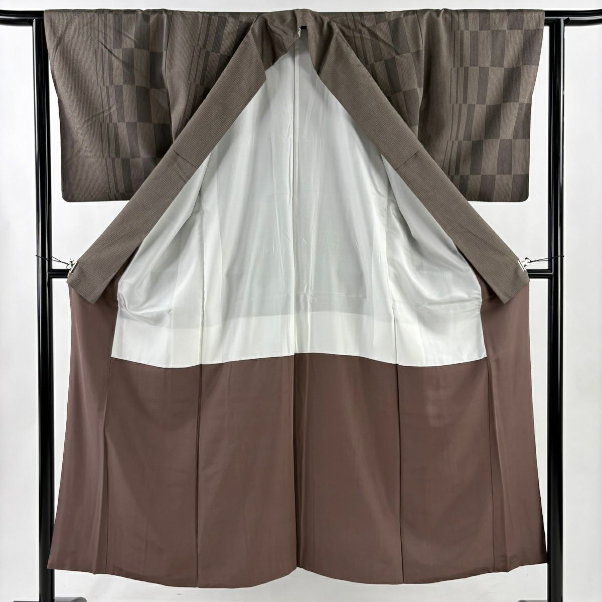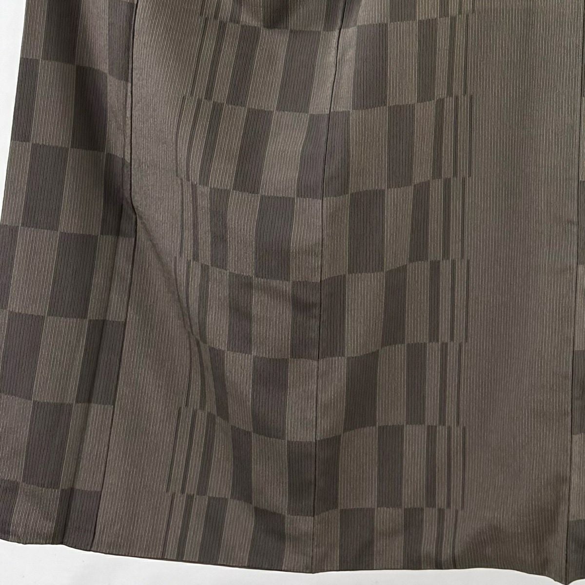 50%OFF 【美品】 小紋 身丈159.5cm 裄丈64.5cm M 袷 桧垣 絞り 茶色 正絹 秀品 K50