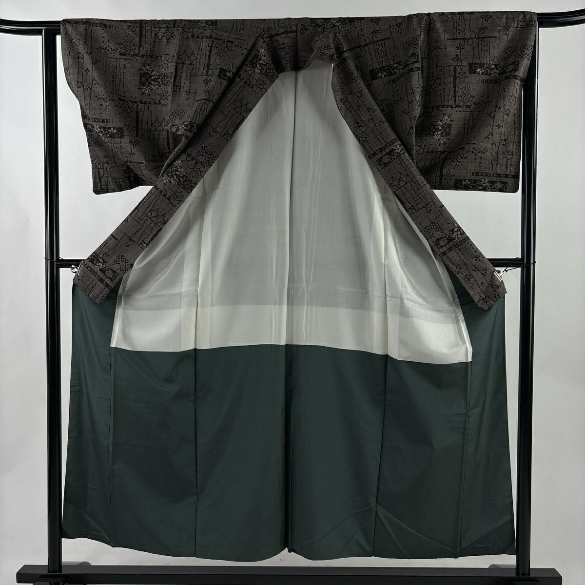 50%OFF 紬 身丈163.5cm 裄丈65cm M 袷 袋帯セット 草花 亀甲 焦茶色 正絹 秀品 K50