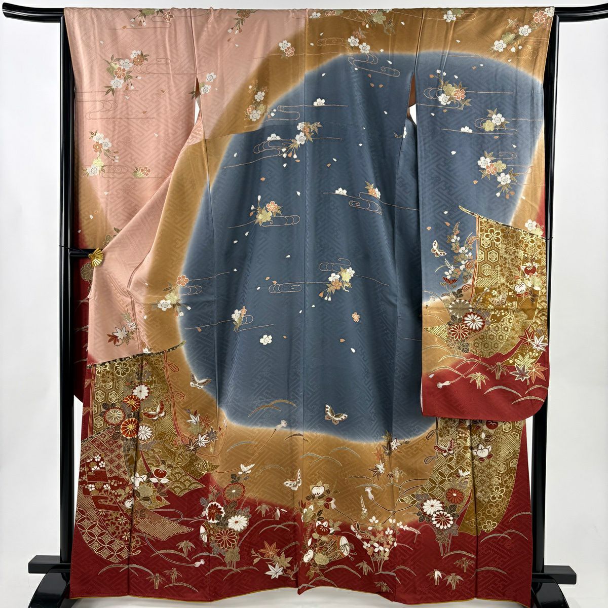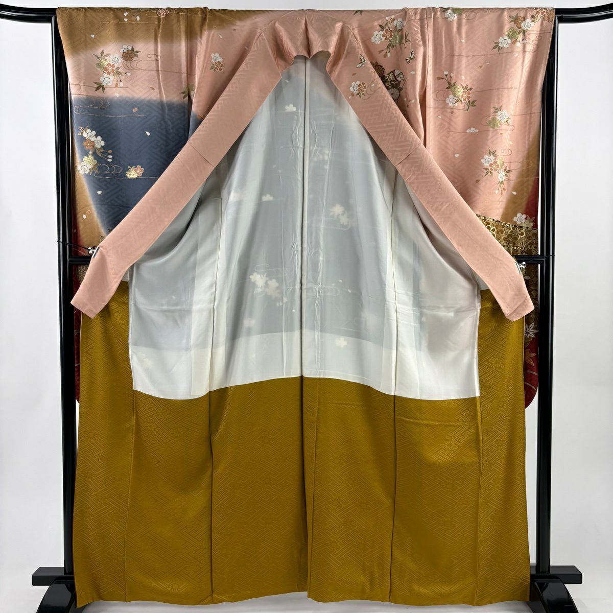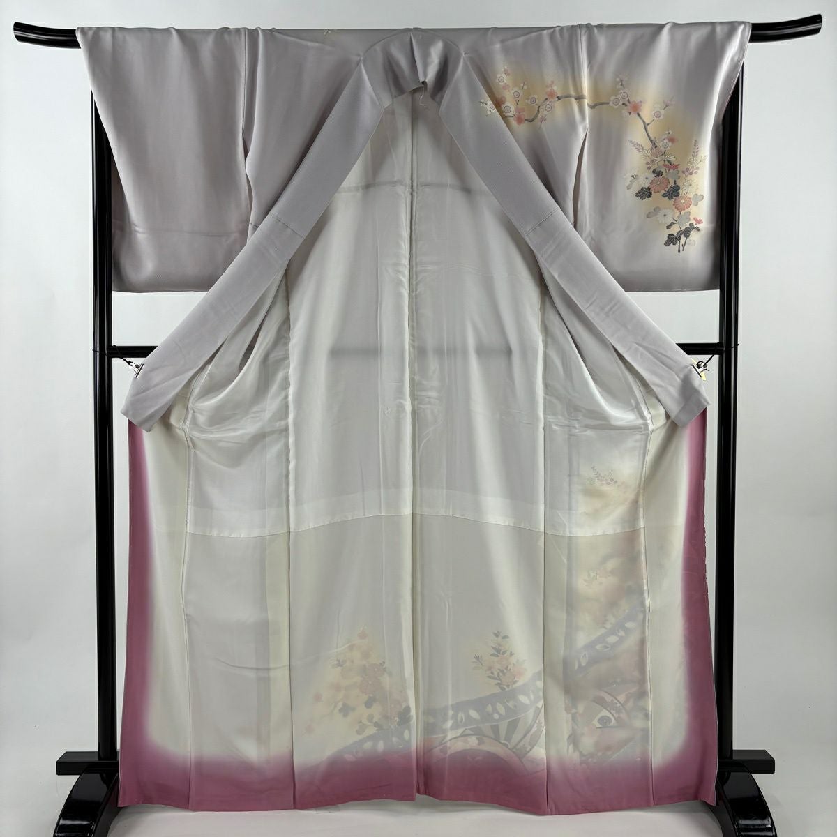 50%OFF 振袖 身丈168.5cm 裄丈69cm L 袷 鈴 梅 金糸 金彩 ピンク 正絹 秀品 K50