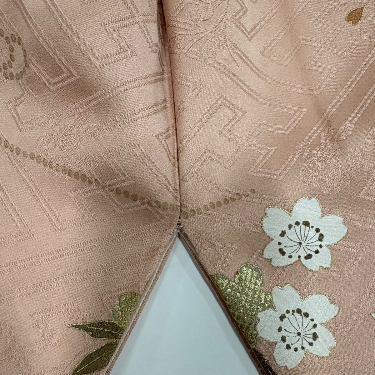 50%OFF 【美品】 袋帯 秀品 扇面 蜀江文 刺繍 金糸 ピンクベージュ お太鼓柄 正絹 K50