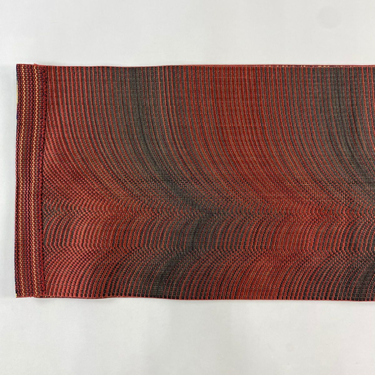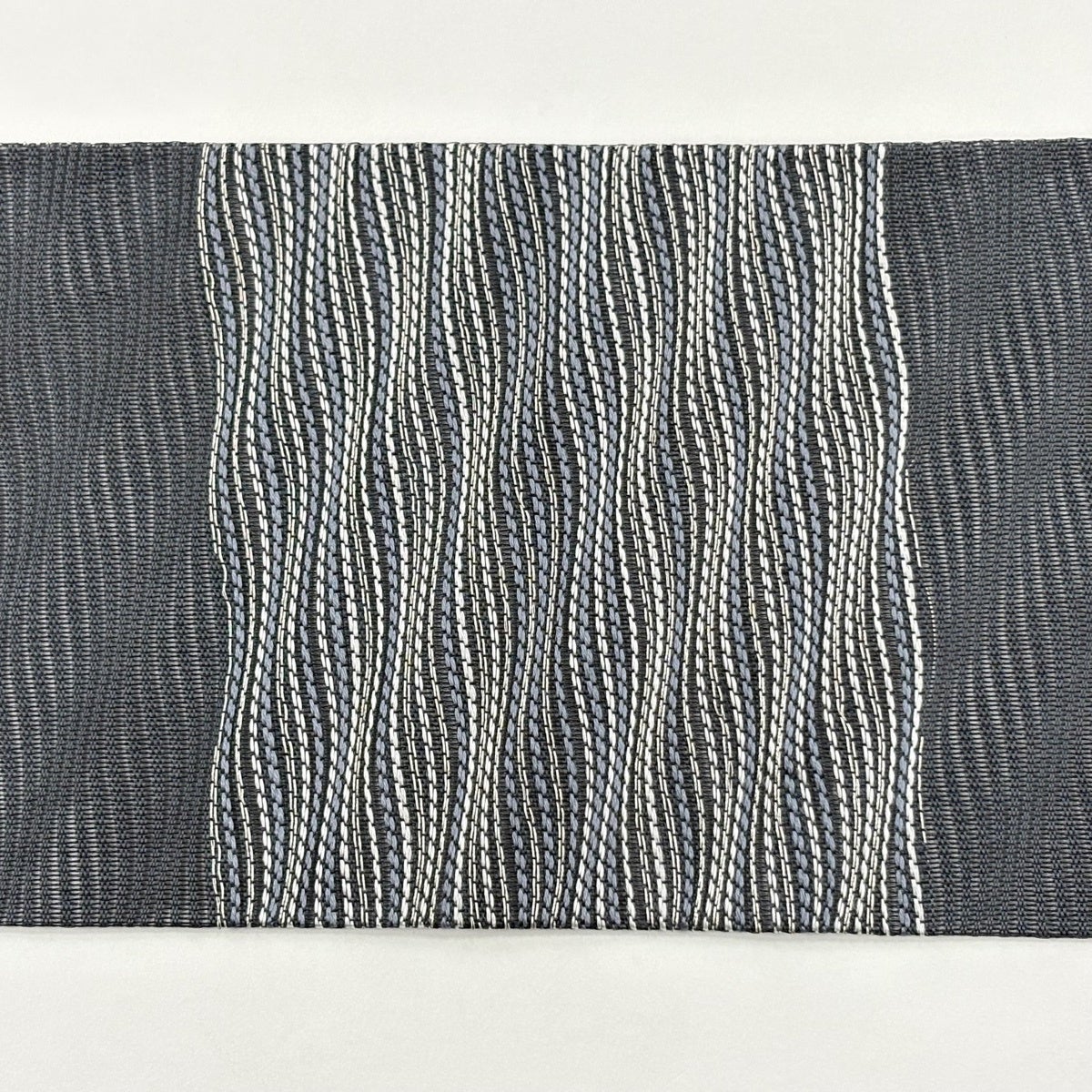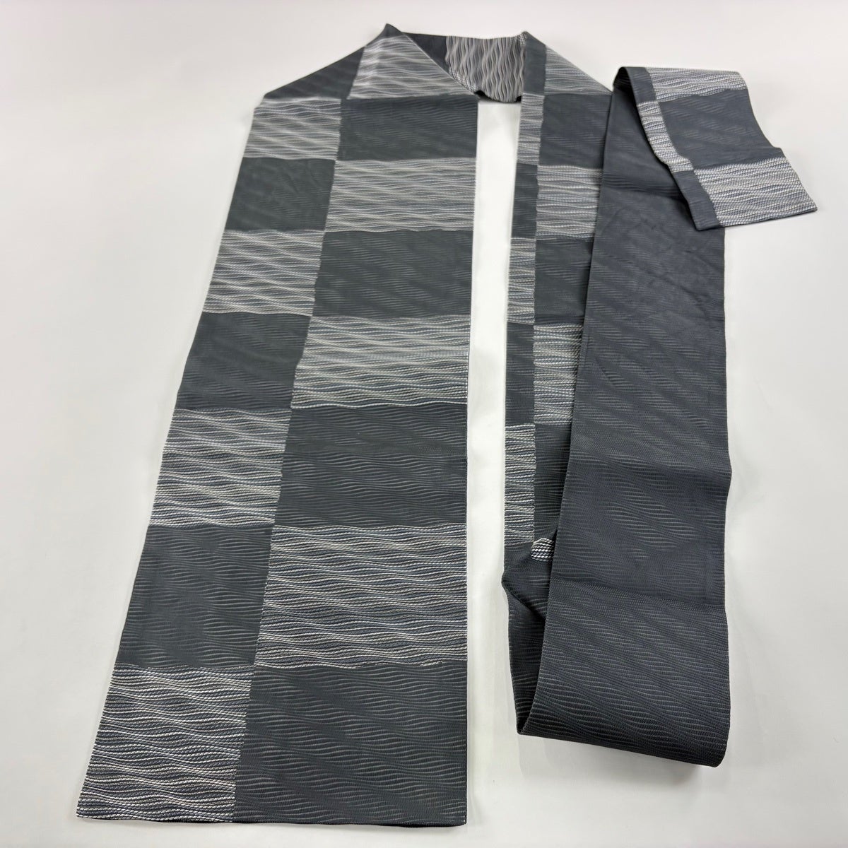 名古屋帯 秀品 夏帯 絽 よろけ縞 変わり市松 灰色 正絹