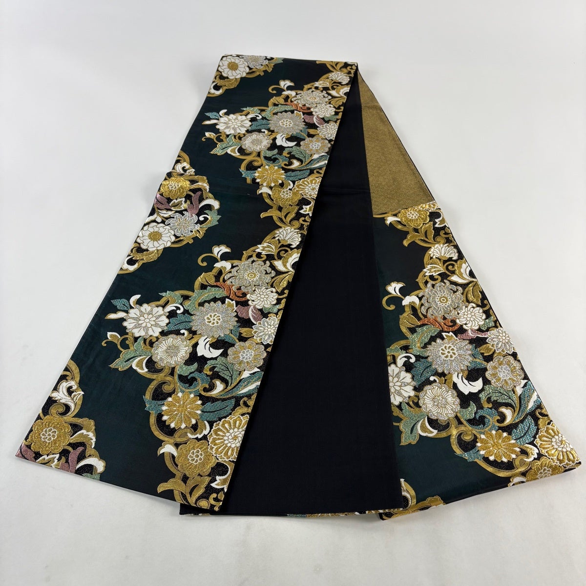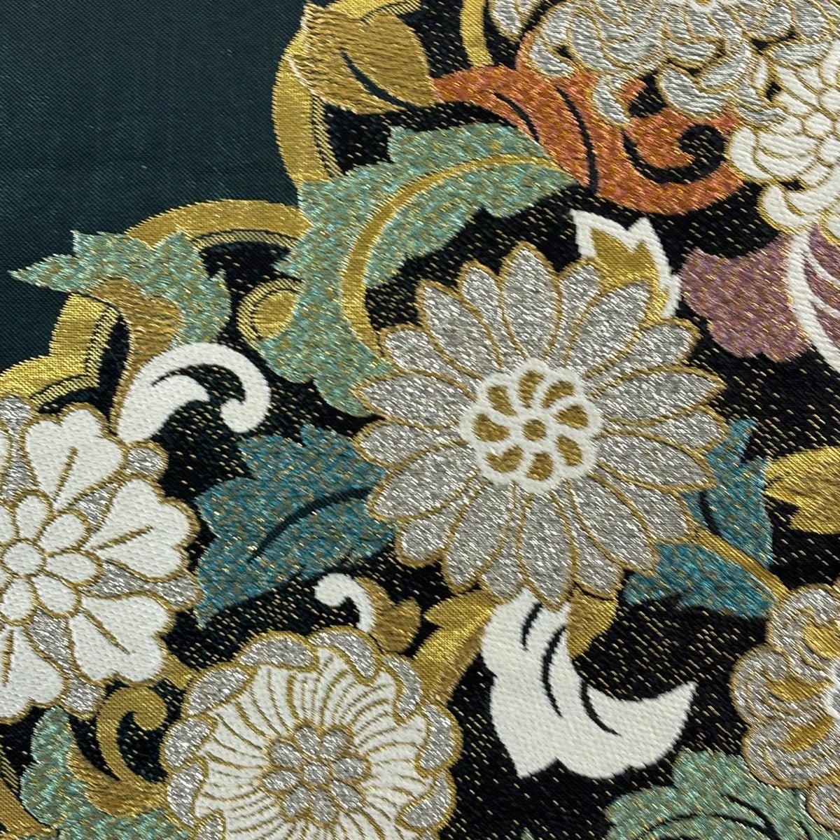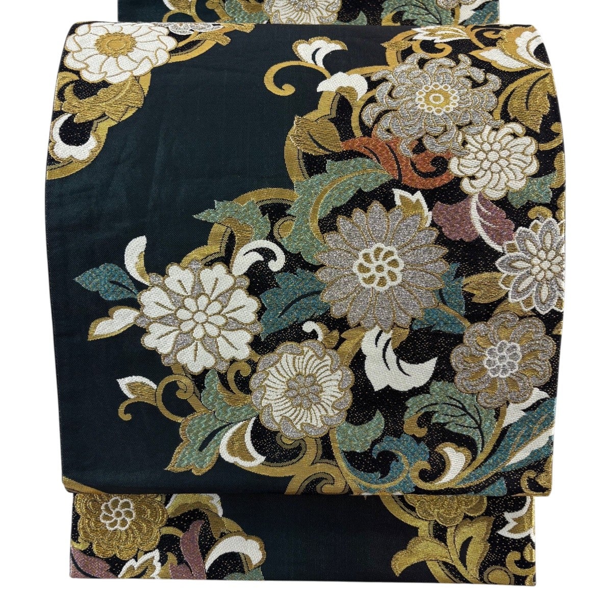 袋帯 秀品 振袖向き 花唐草 金銀糸 箔 深緑 六通 正絹