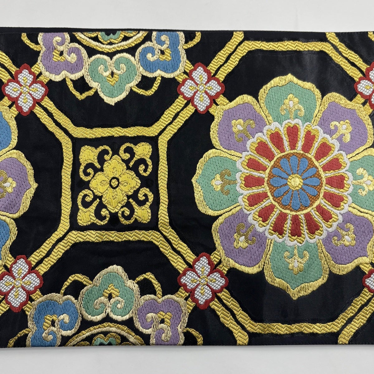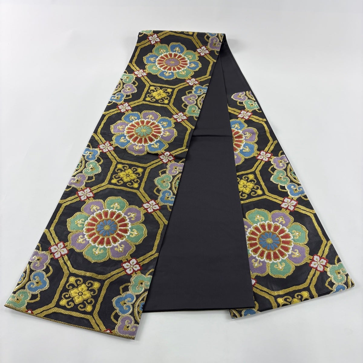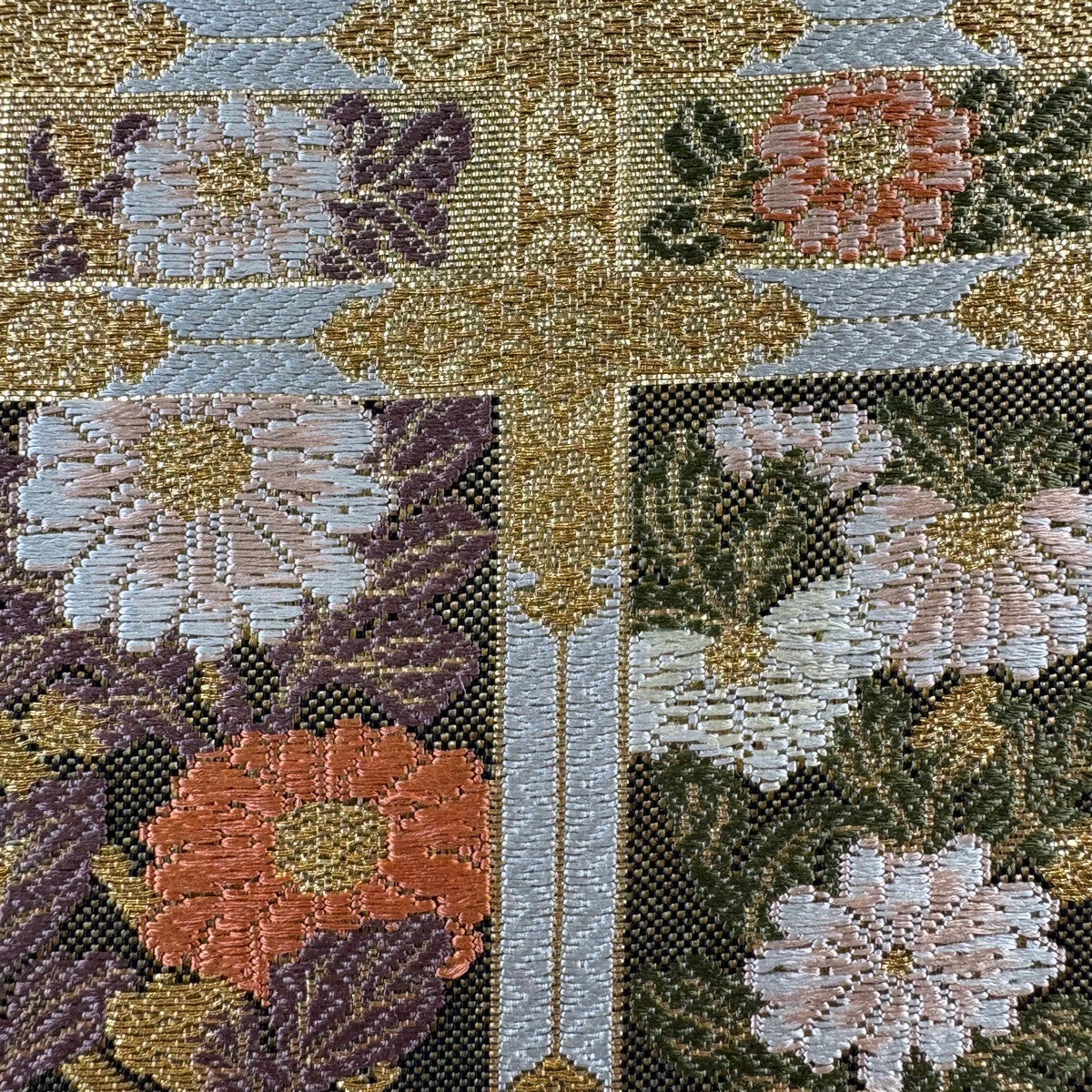 【美品】 袋帯 秀品 蜀江華文 金糸 箔 墨色 六通 正絹