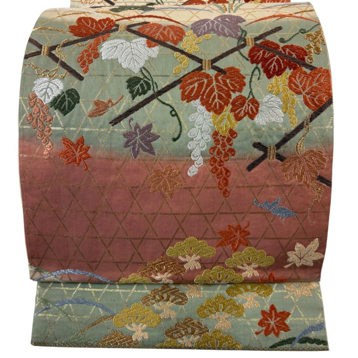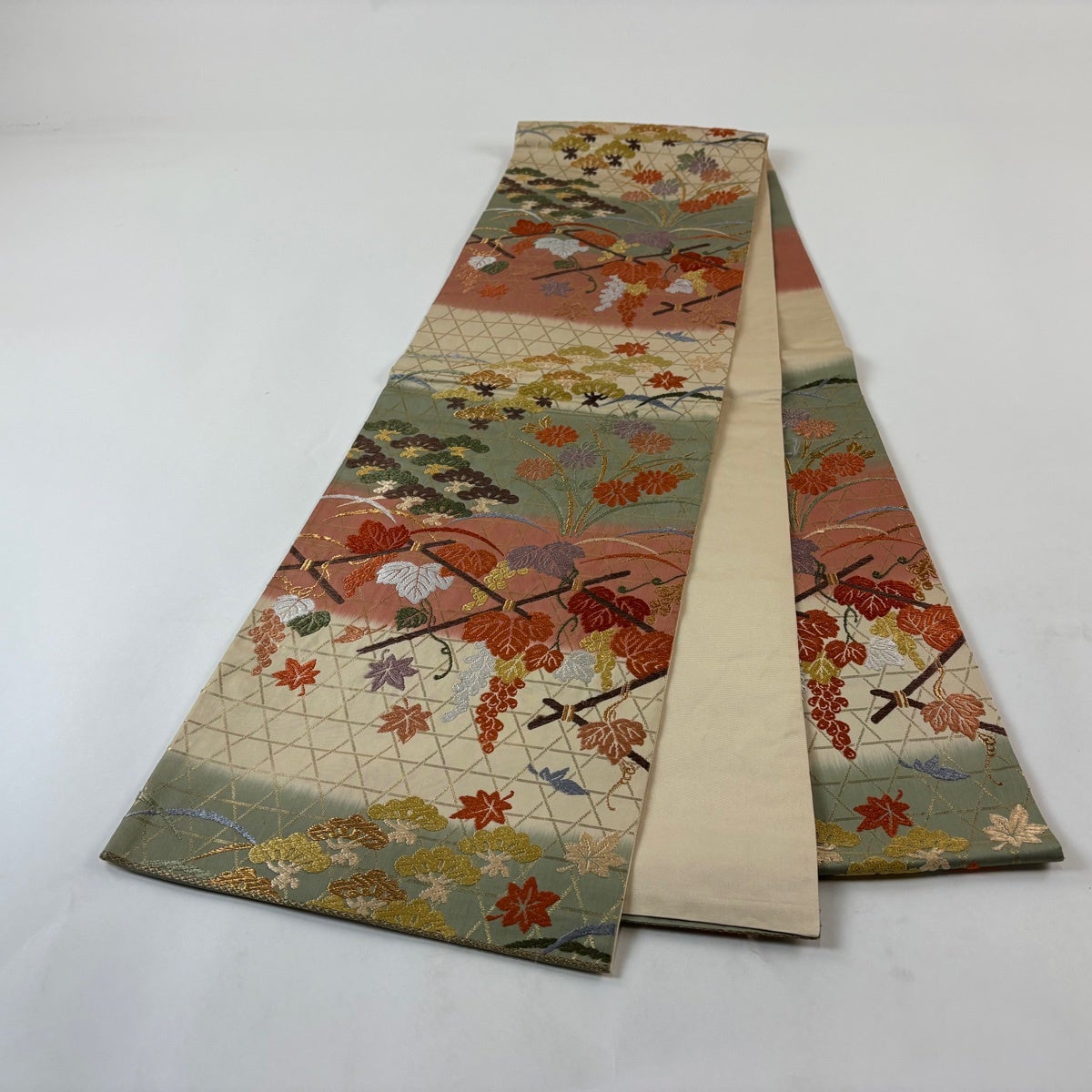 袋帯 秀品 葡萄 笠松 唐織 箔 ベージュ 六通 正絹