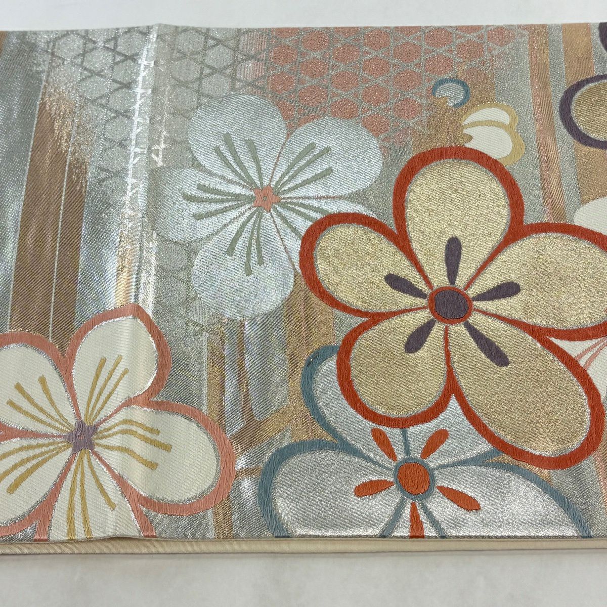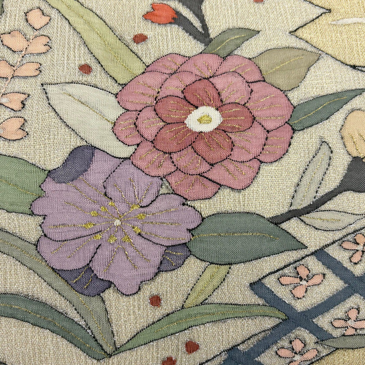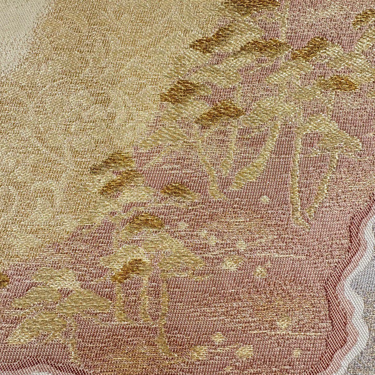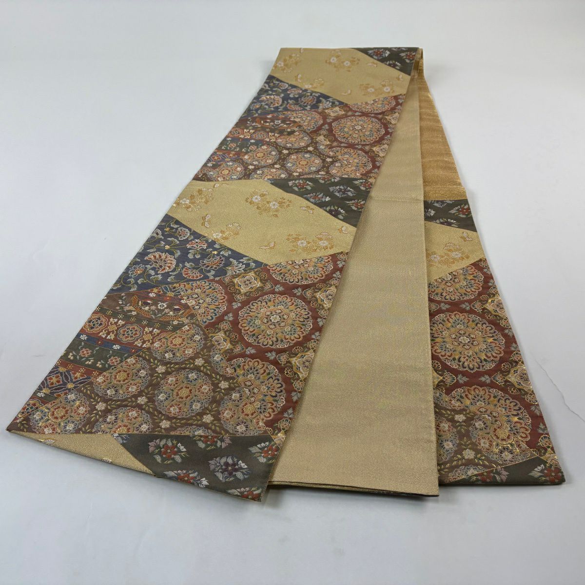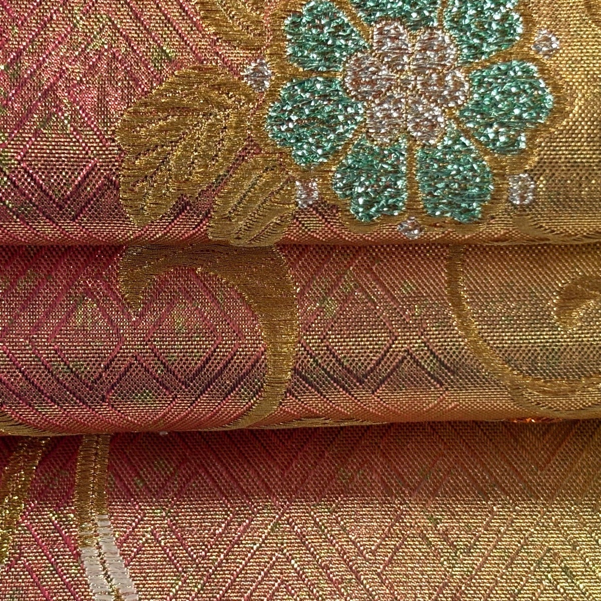 袋帯 秀品 夏帯 草花 松皮菱 金銀糸 金色 お太鼓柄 正絹