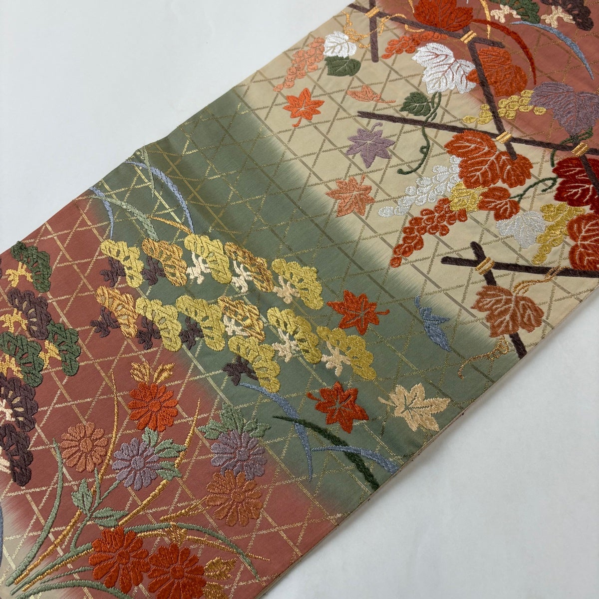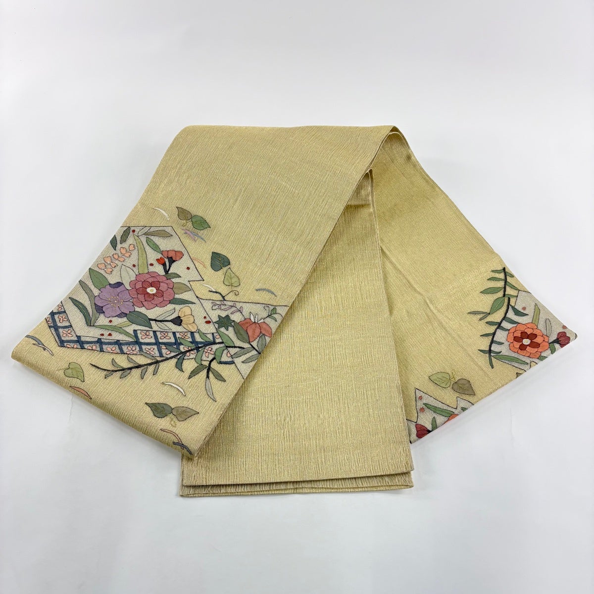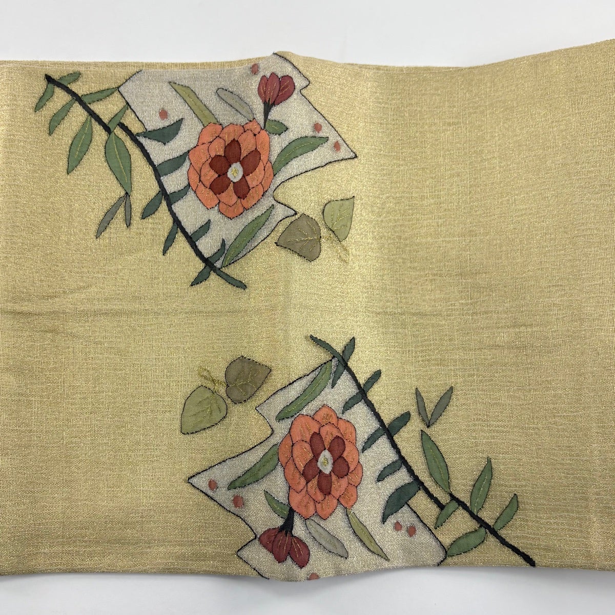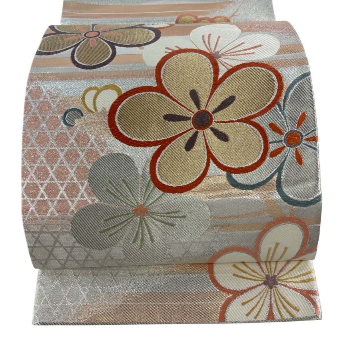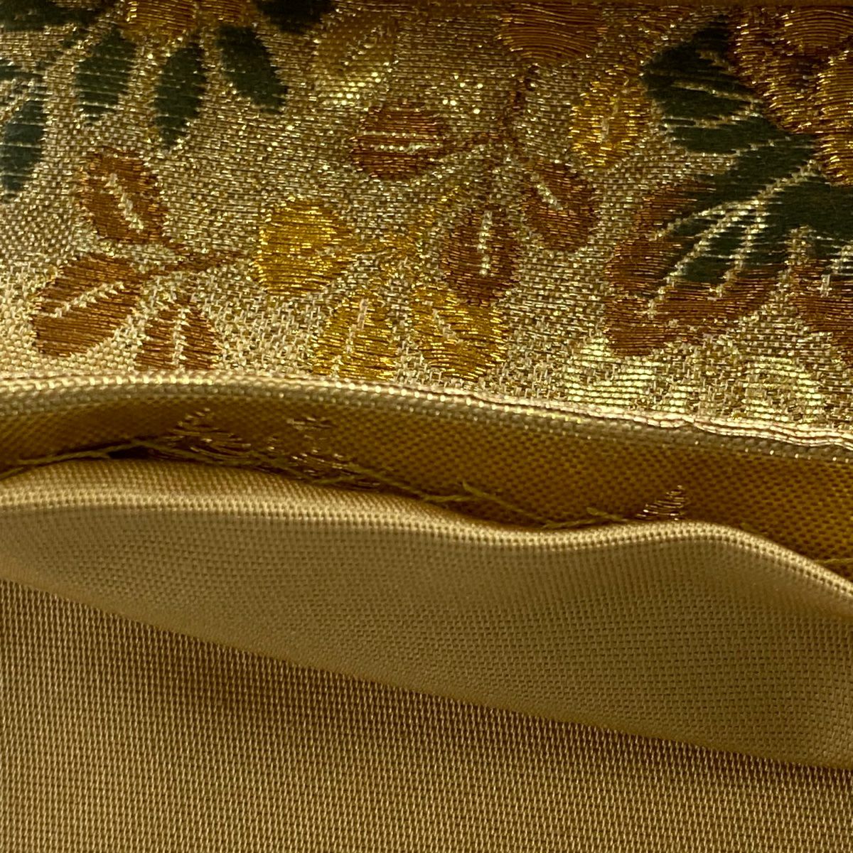 袋帯 秀品 夏帯 草花 松皮菱 金銀糸 金色 お太鼓柄 正絹