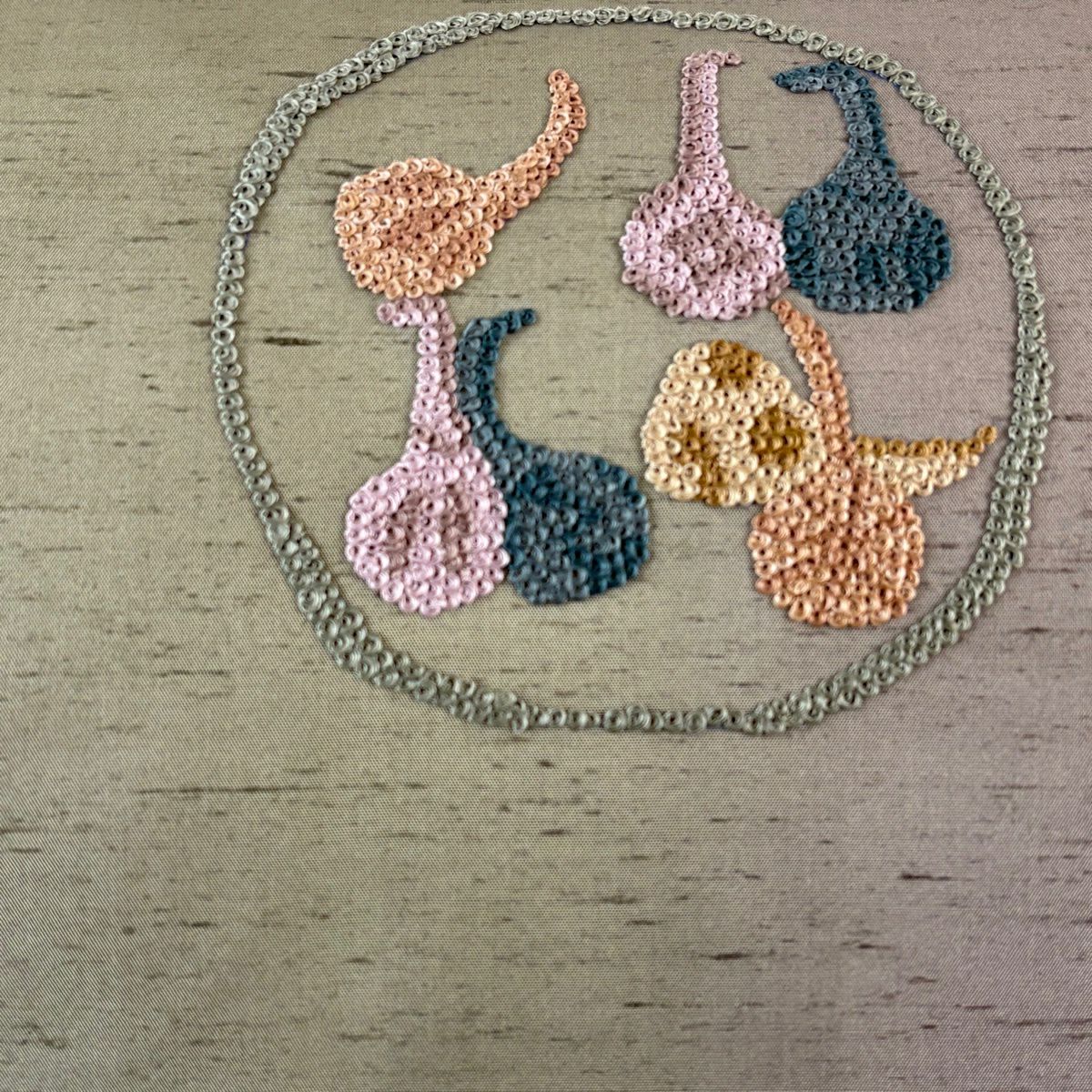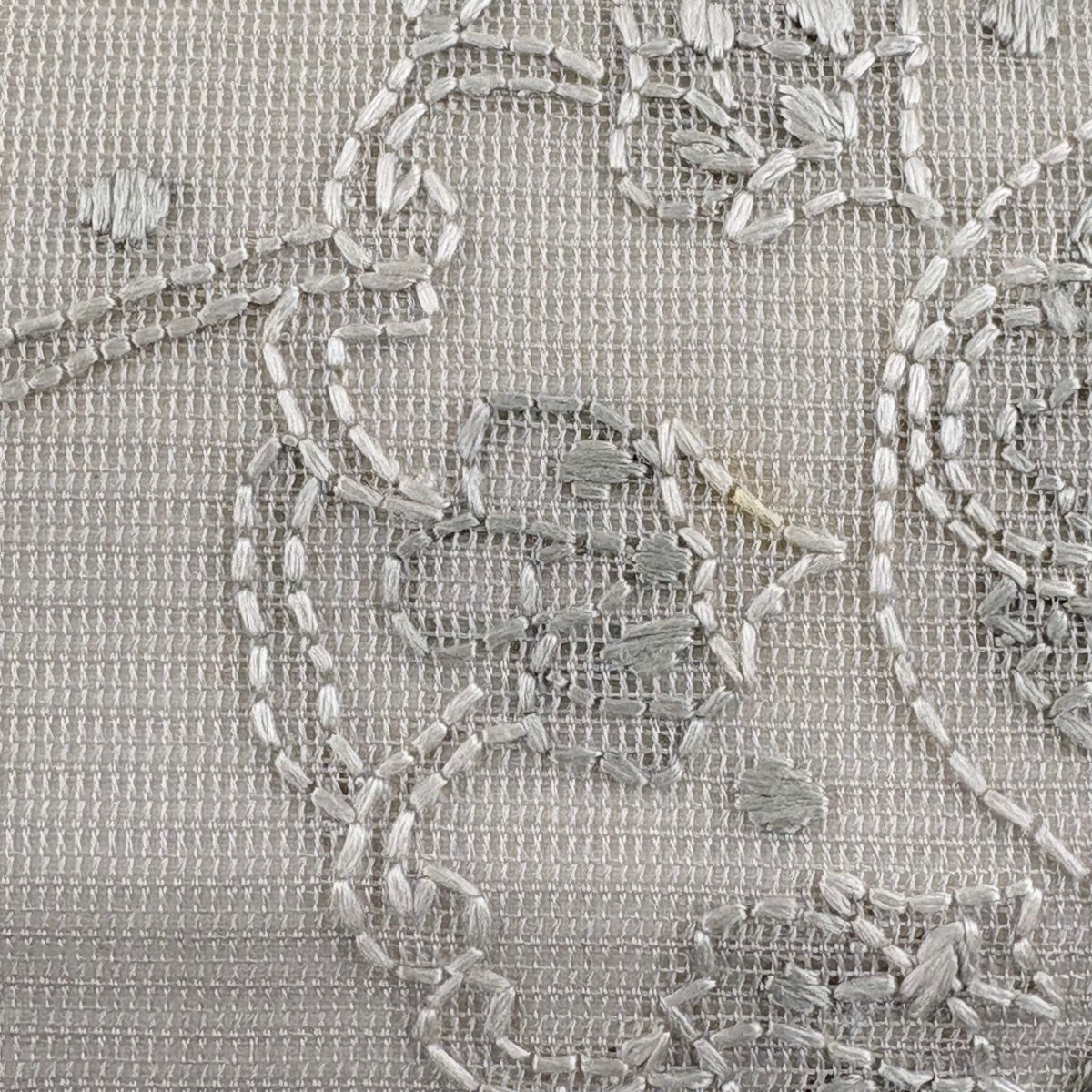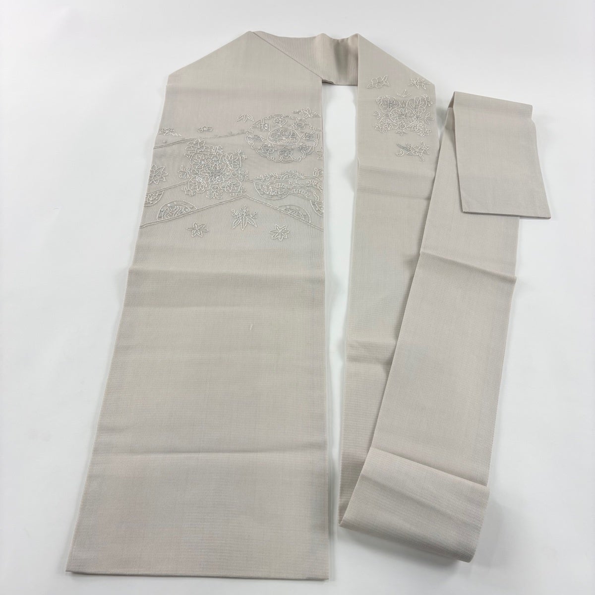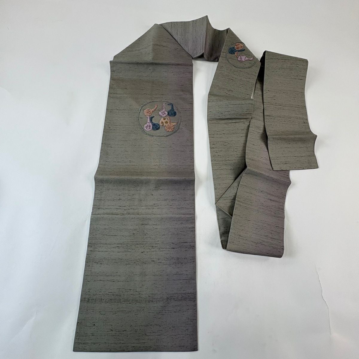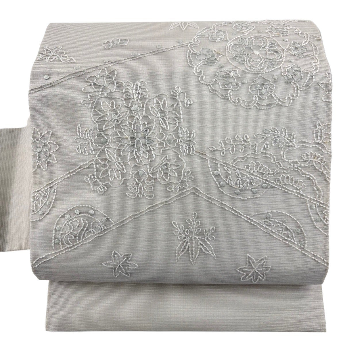 名古屋帯 秀品 夏帯 絽 華文 桐 刺し子刺繍 灰茶 正絹
