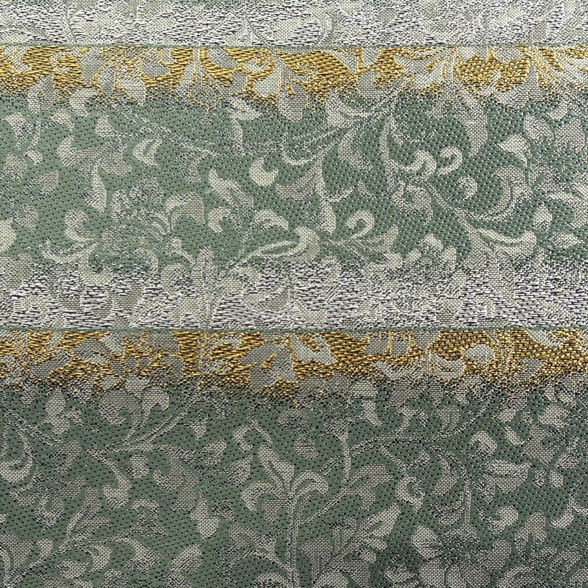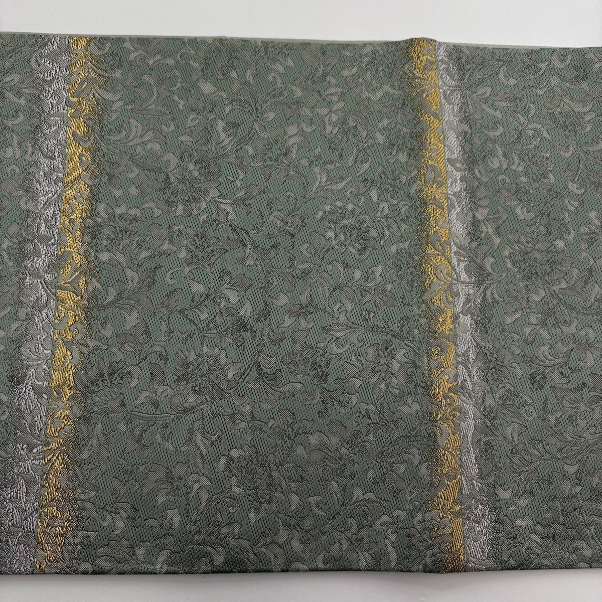 【美品】 袋帯 秀品 花唐草 金銀糸 よもぎ色 六通 正絹