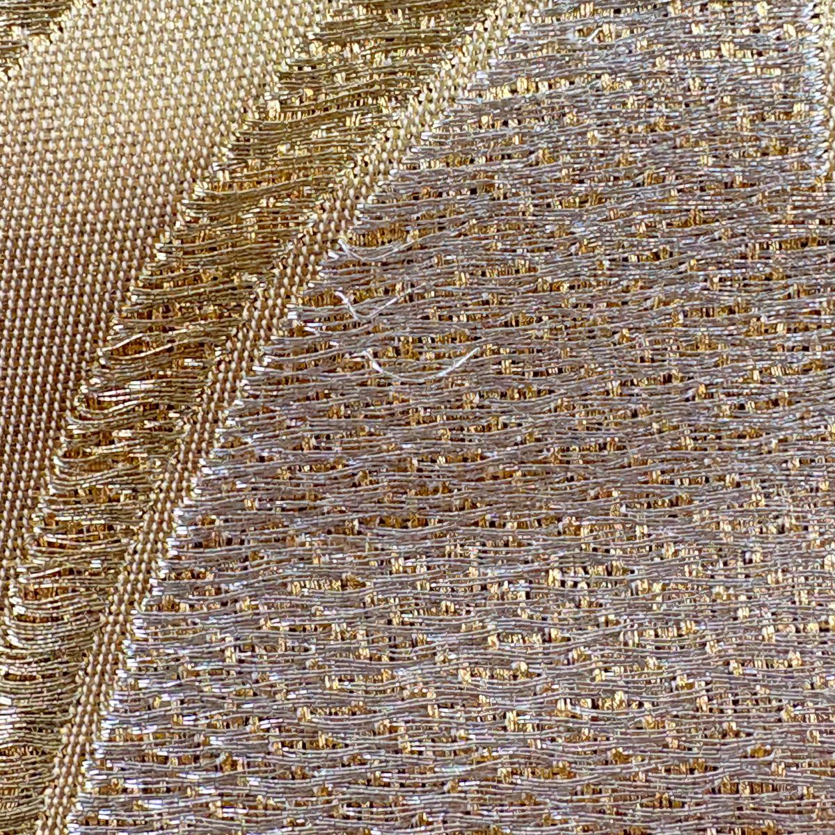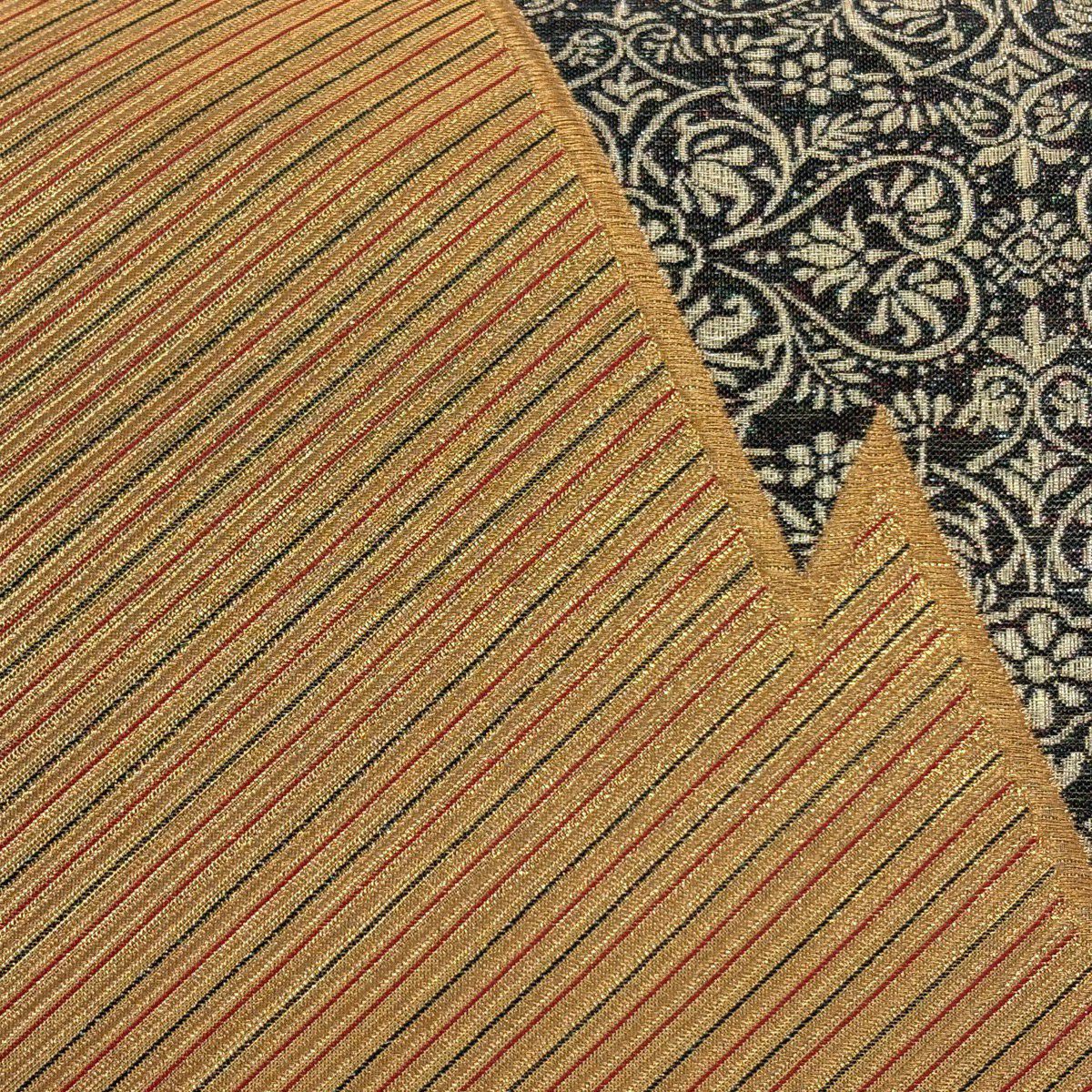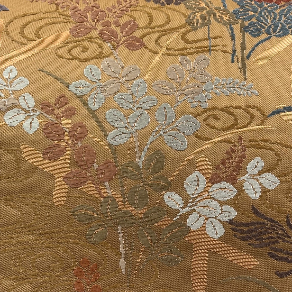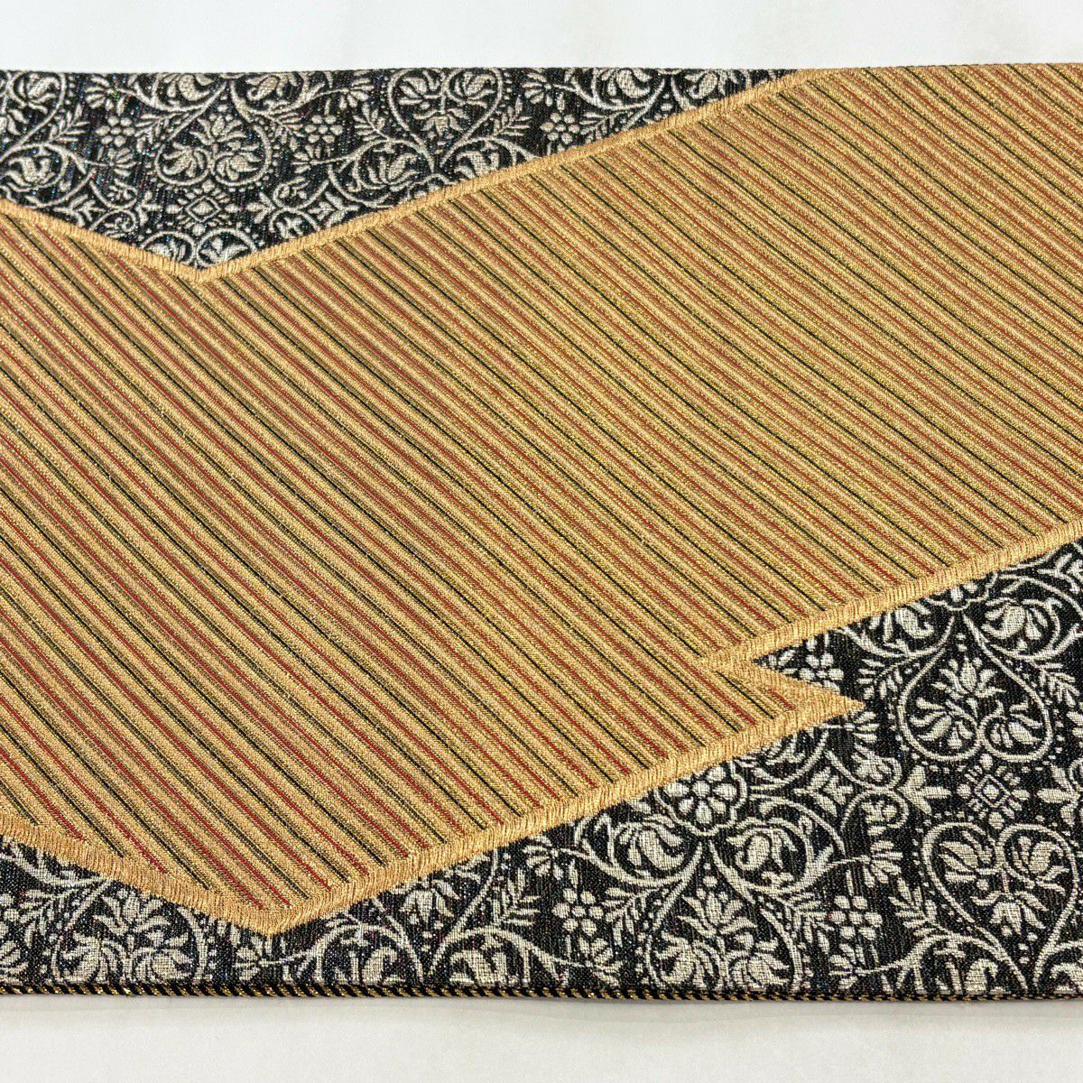 【美品】 袋帯 秀品 草花 斜縞 金糸 箔 金色 六通 正絹