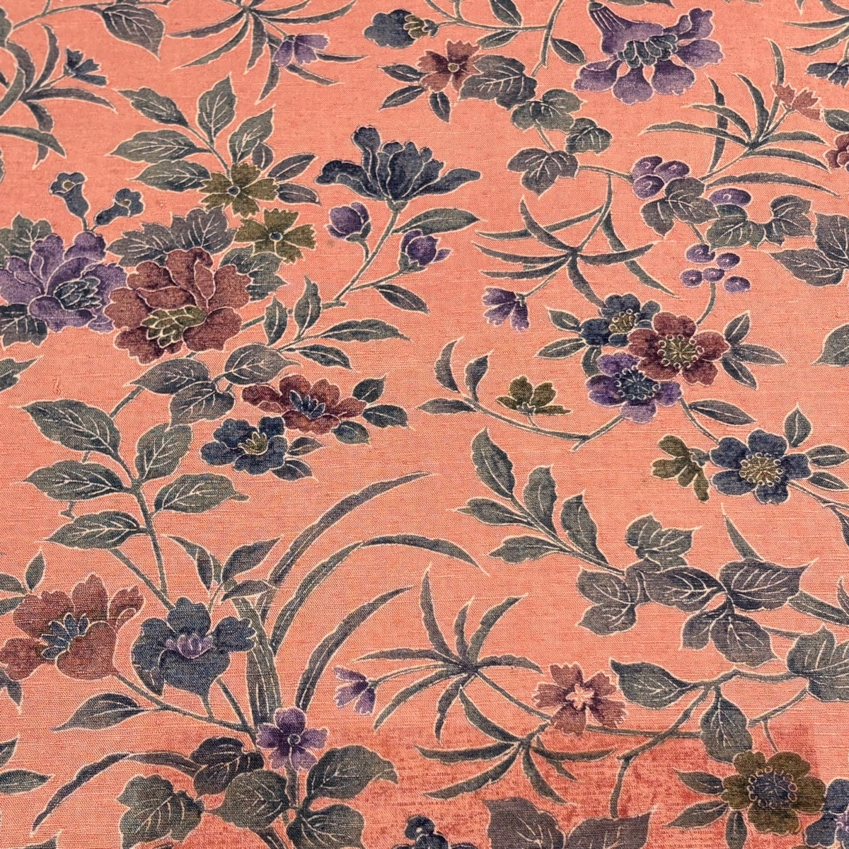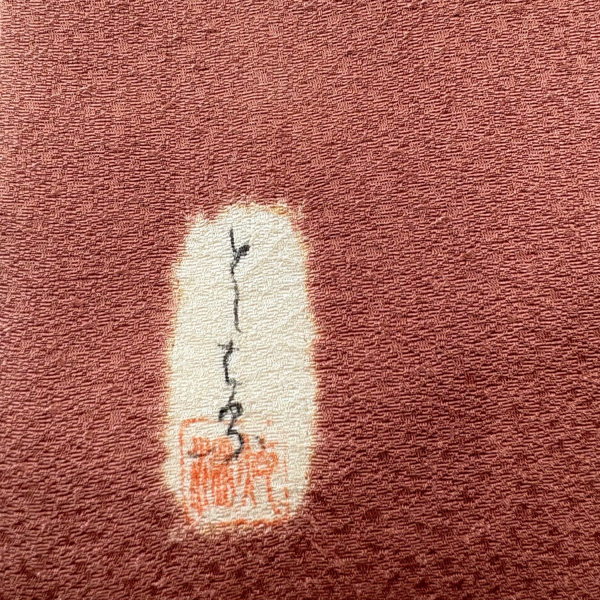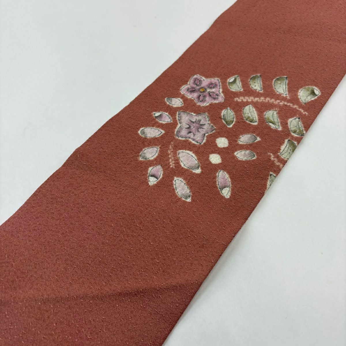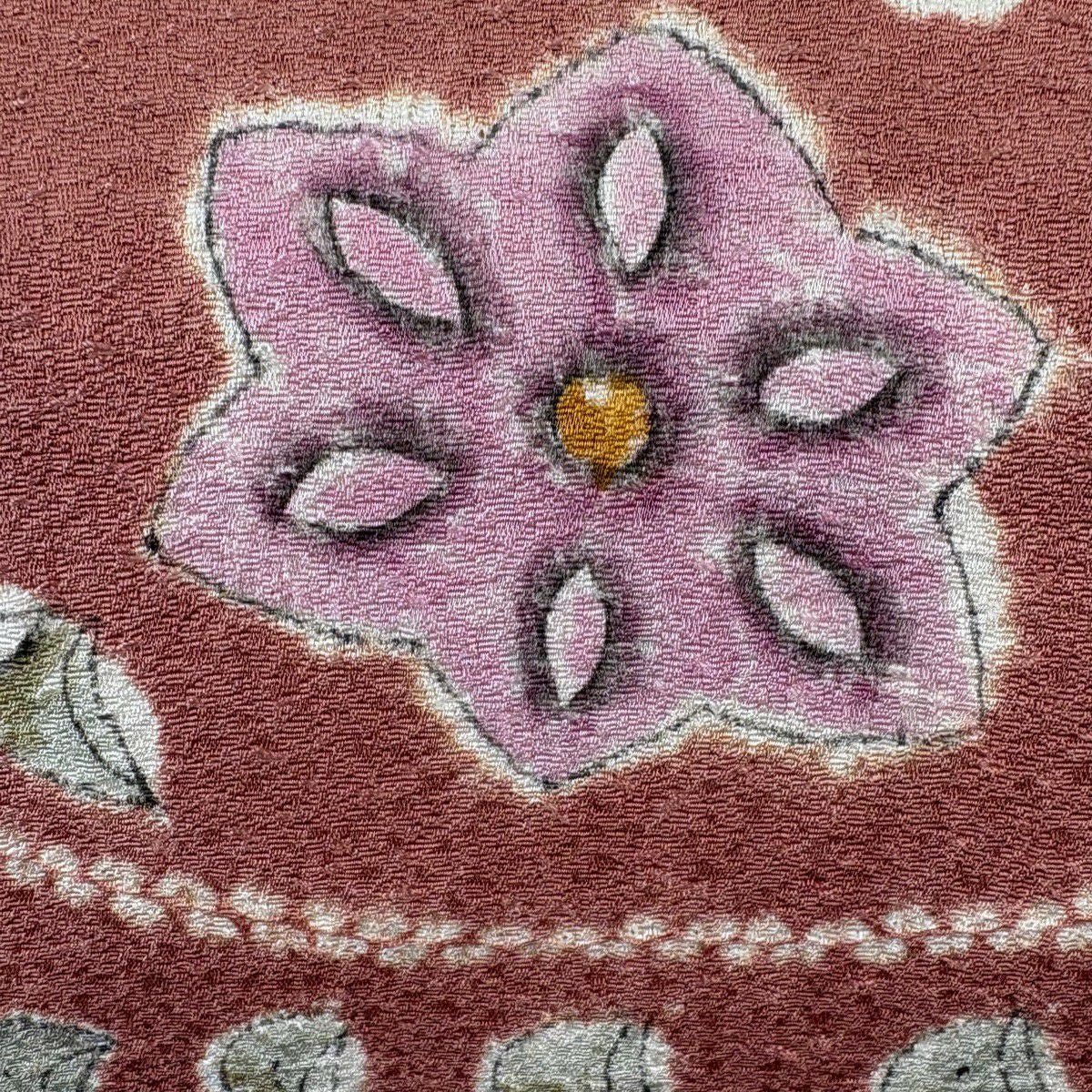 反物 秀品 小紋 紬地 証紙 草花 サーモンピンク 正絹
