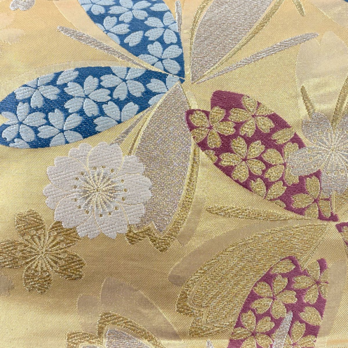 【在庫一掃】 袋帯 秀品 桜 金銀糸 箔 金色 六通 正絹