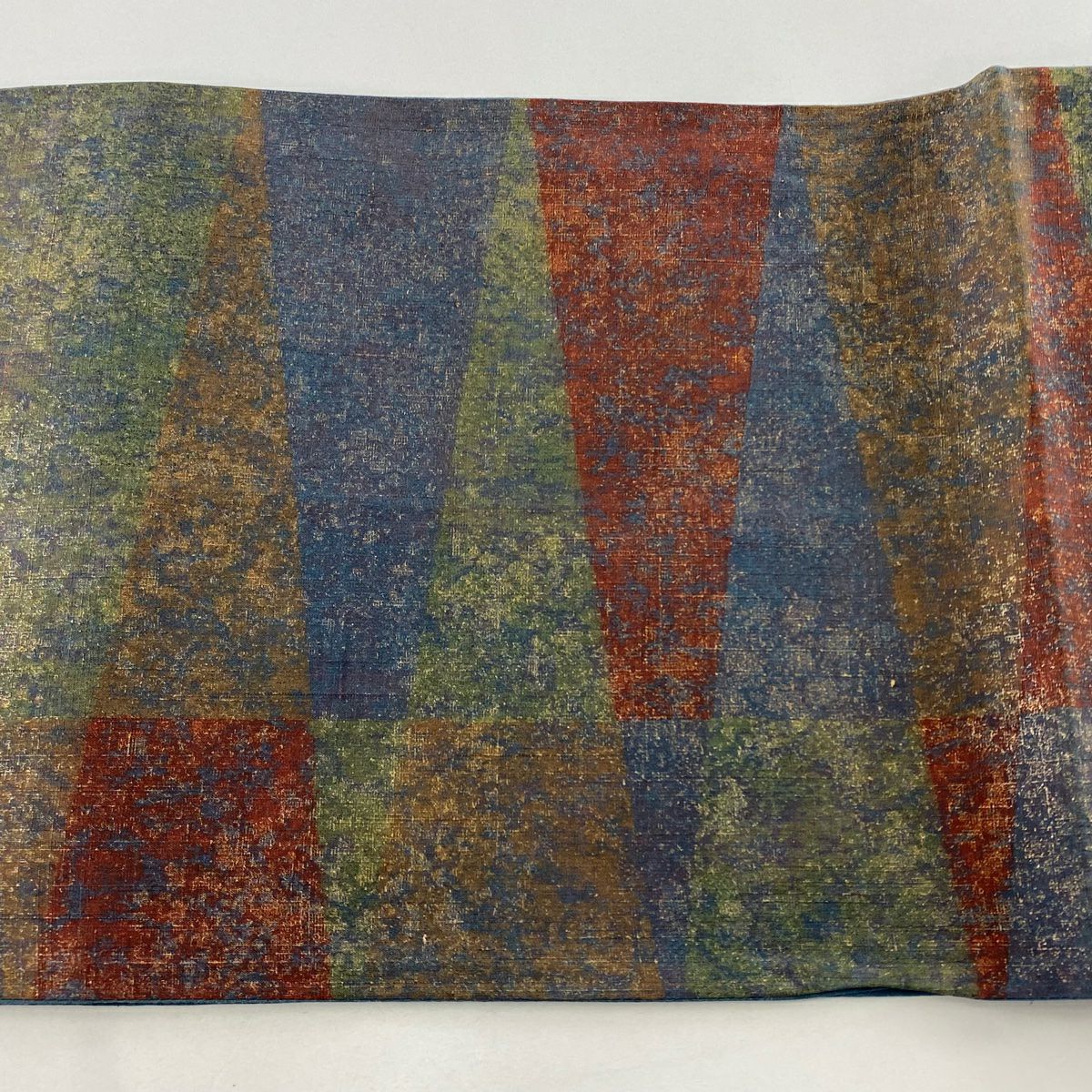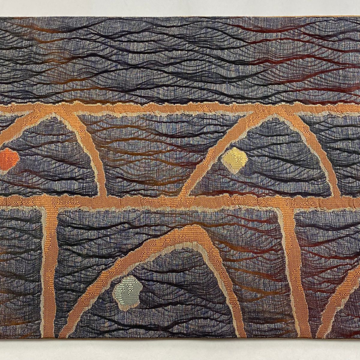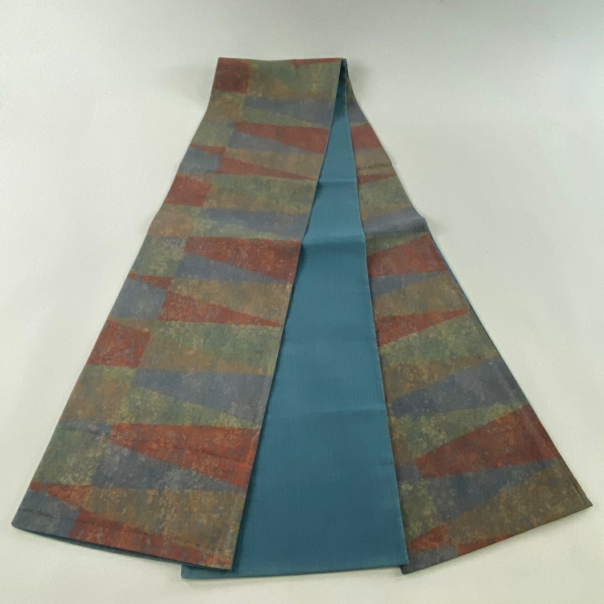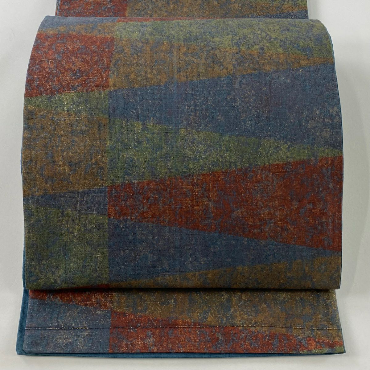 【在庫一掃】 袋帯 秀品 幾何学模様 青灰色 全通 正絹