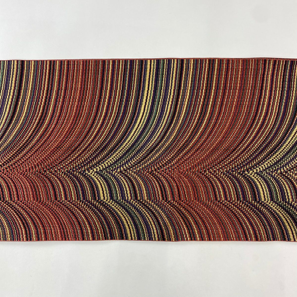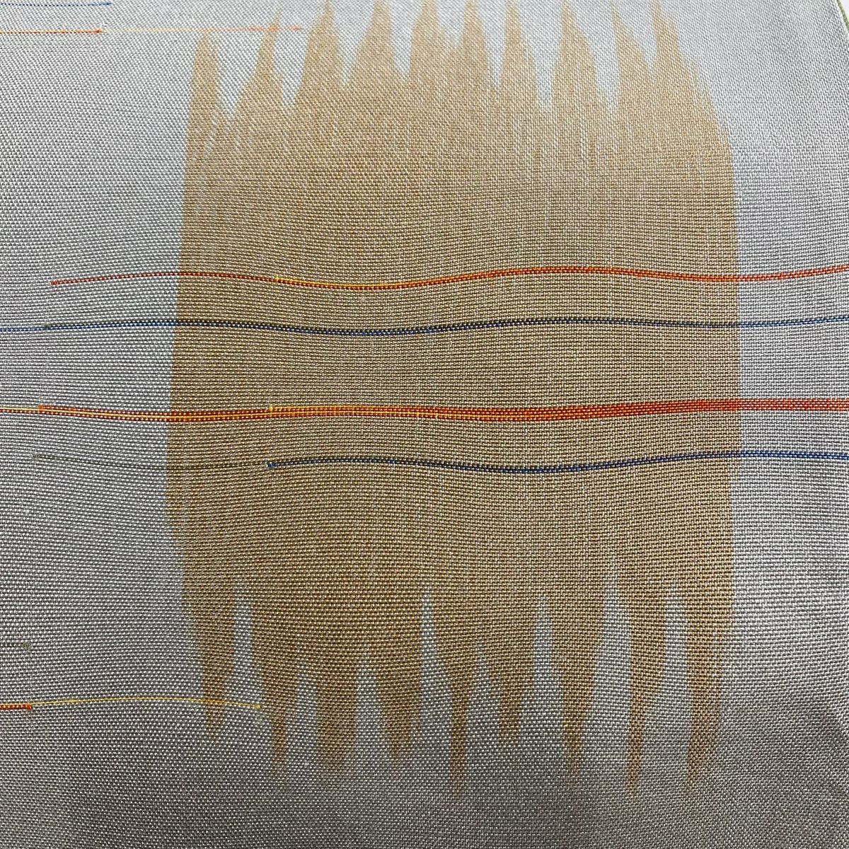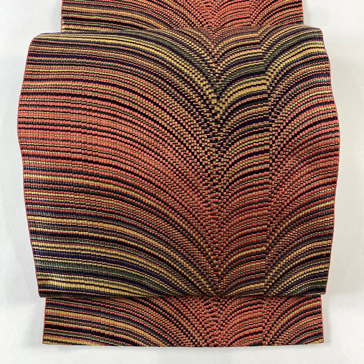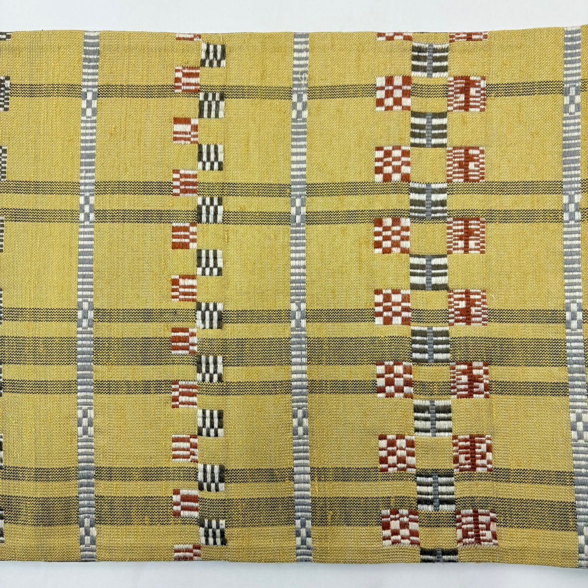 【美品】 袋帯 秀品 縞 幾何学模様 薄黄土色 全通 正絹