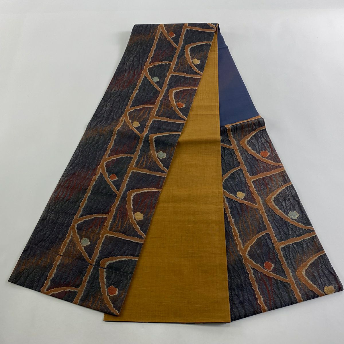 【在庫一掃】 袋帯 秀品 幾何学 金彩 青紫 全通 正絹