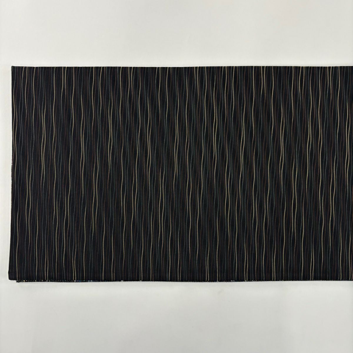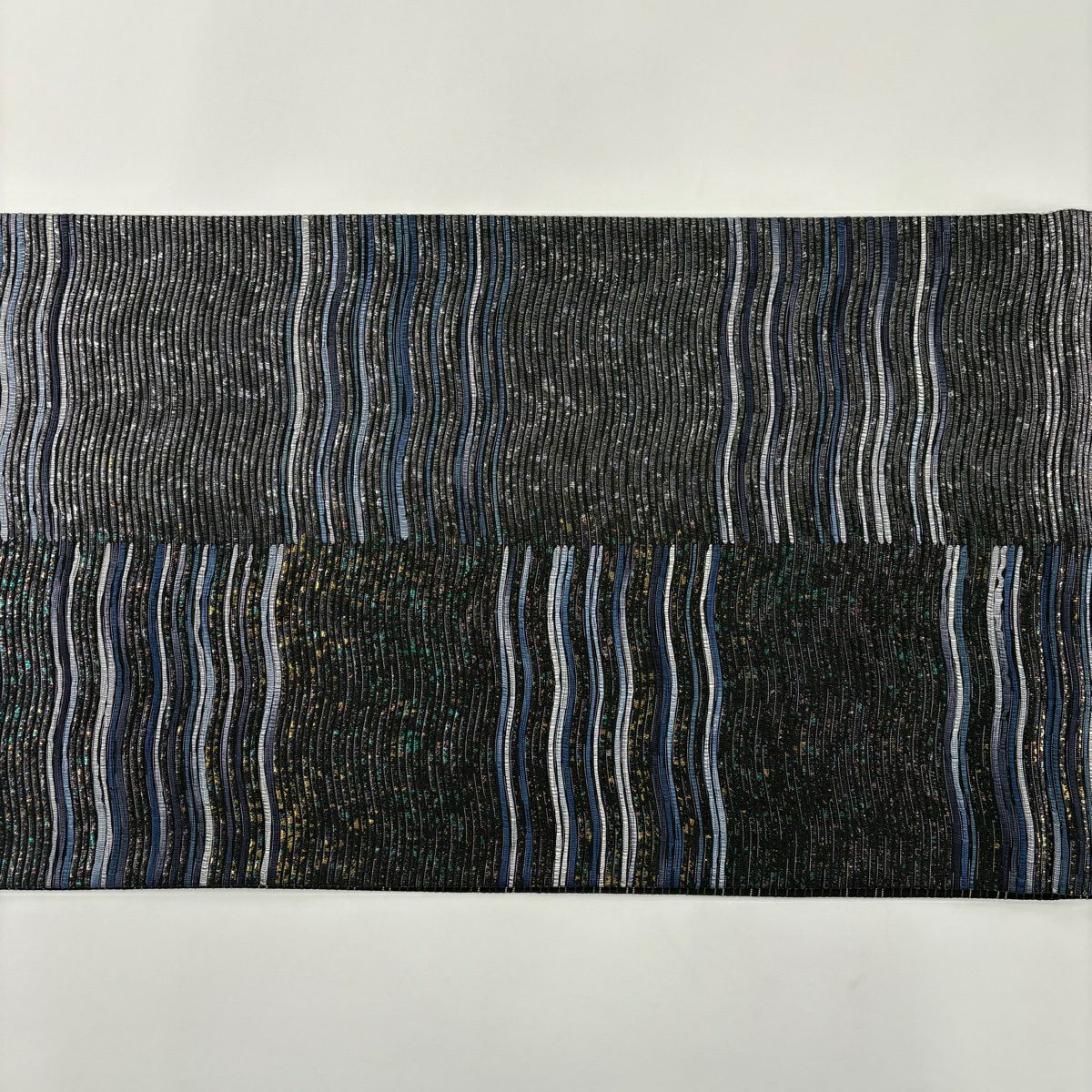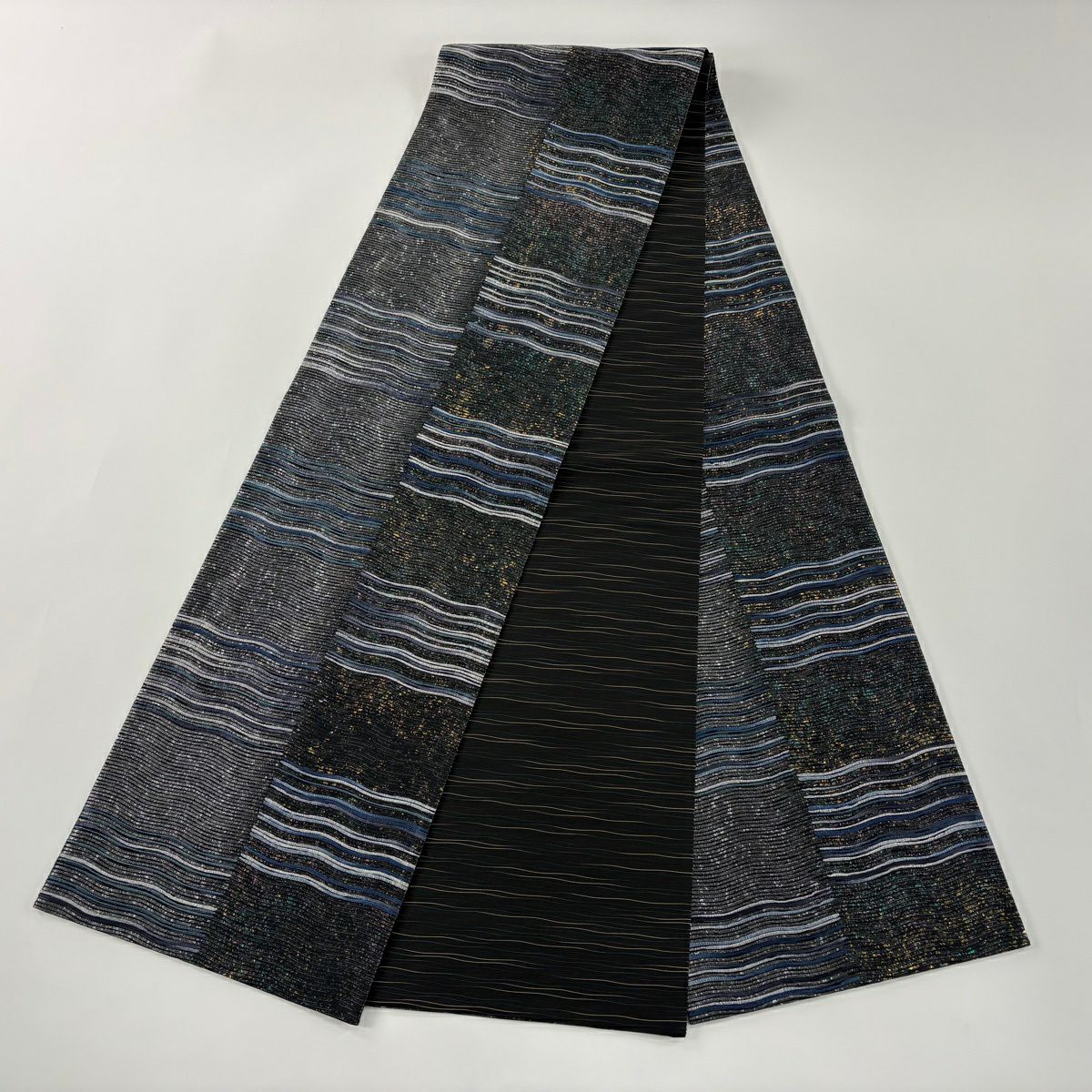【美品】 袋帯 秀品 よろけ縞 箔 銀糸 黒灰 全通 正絹