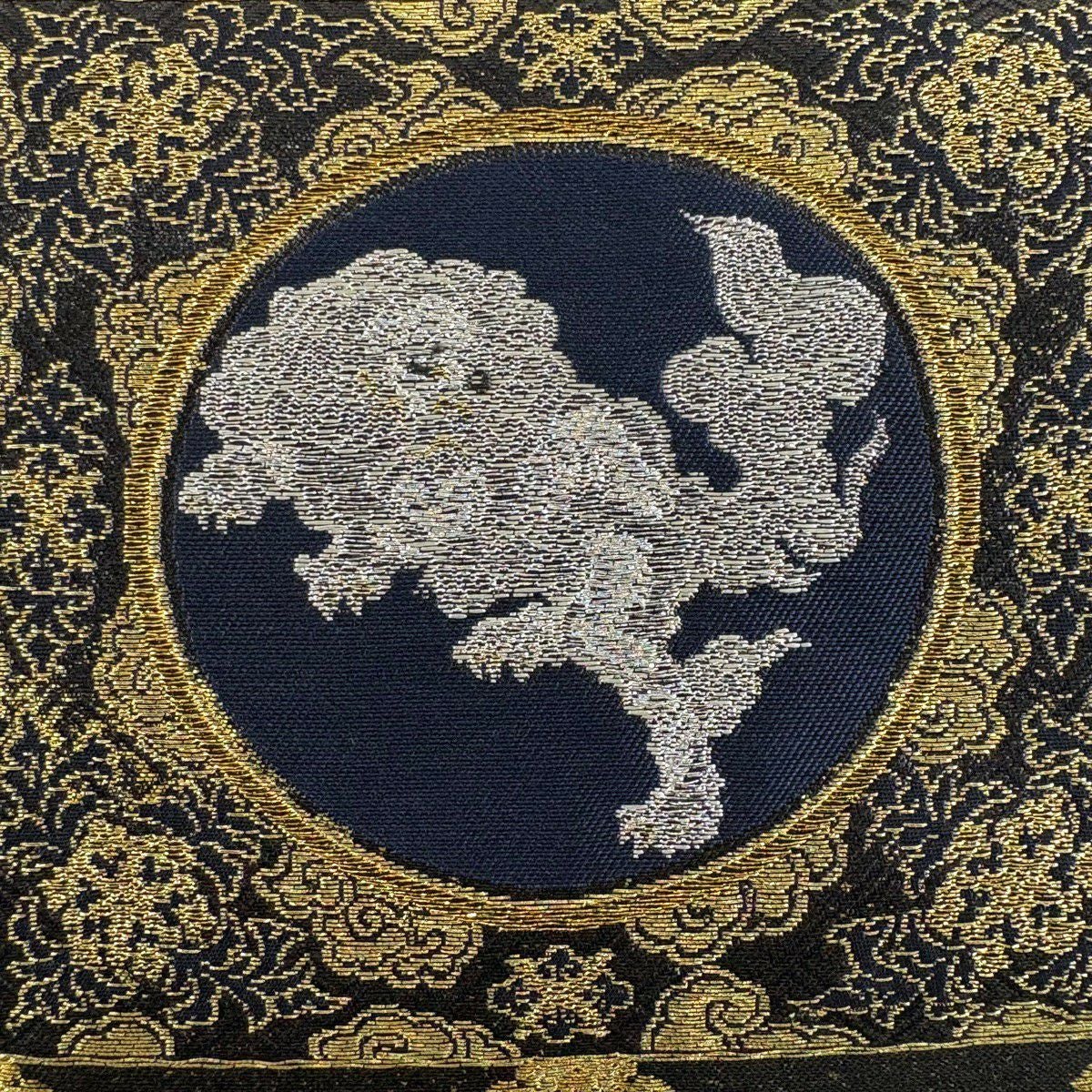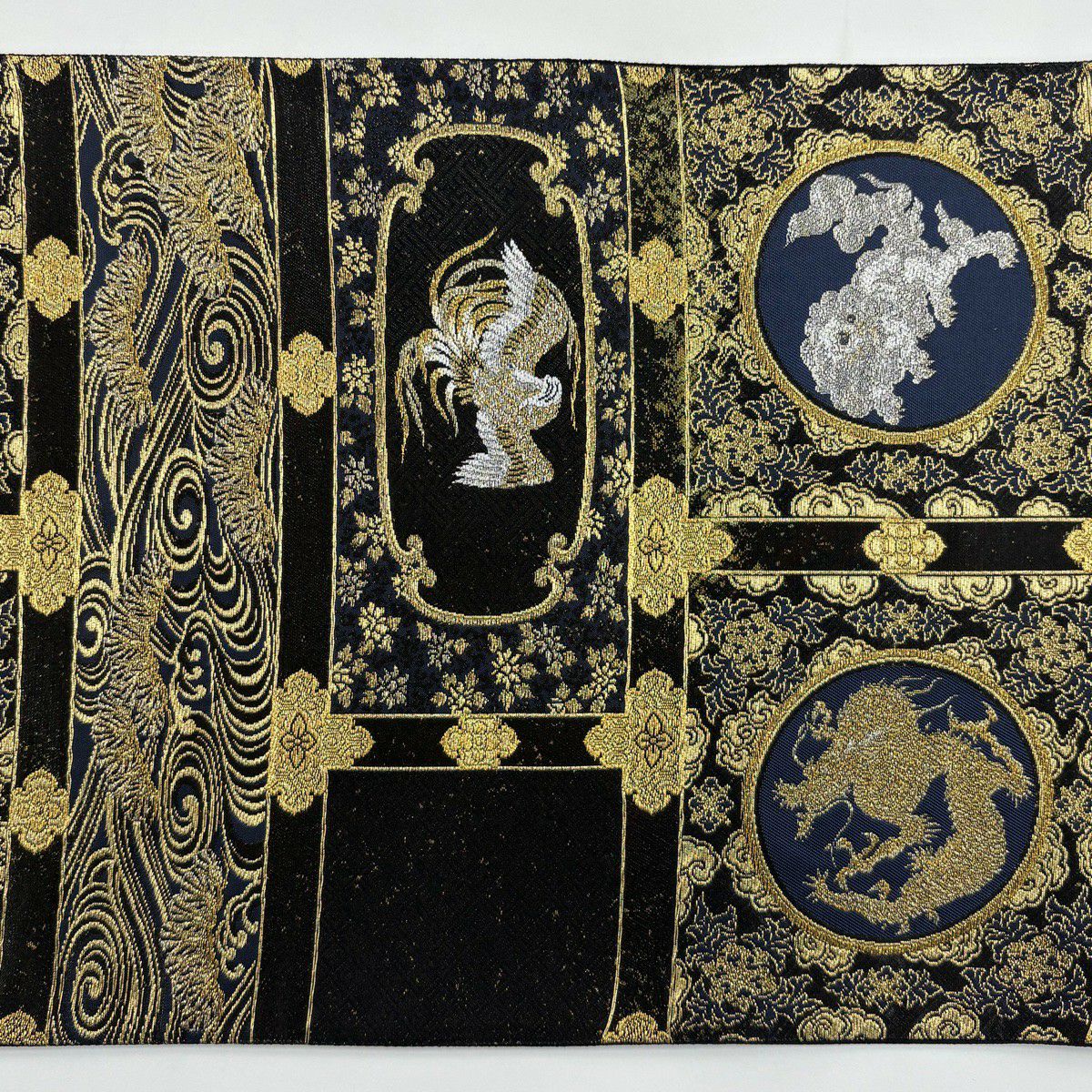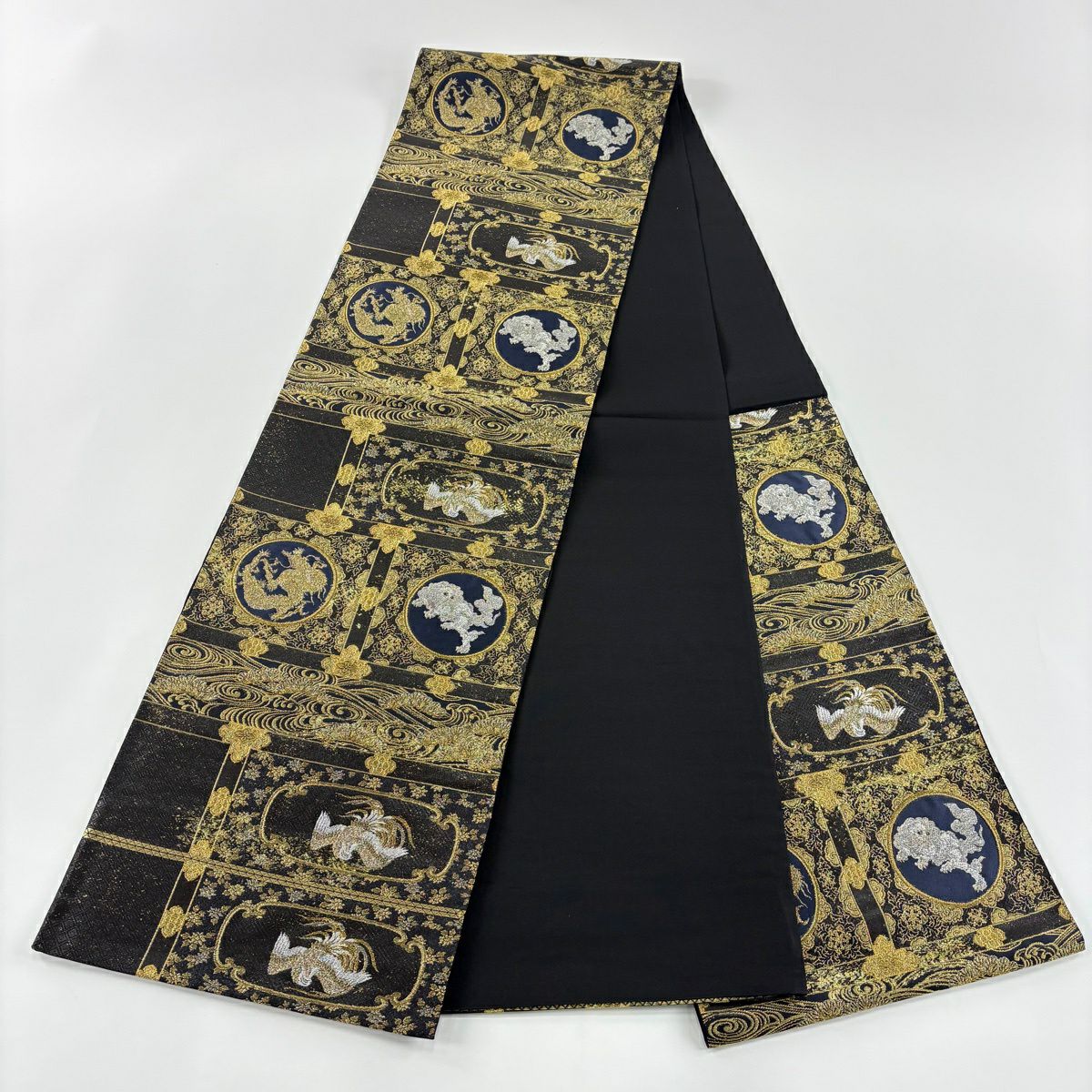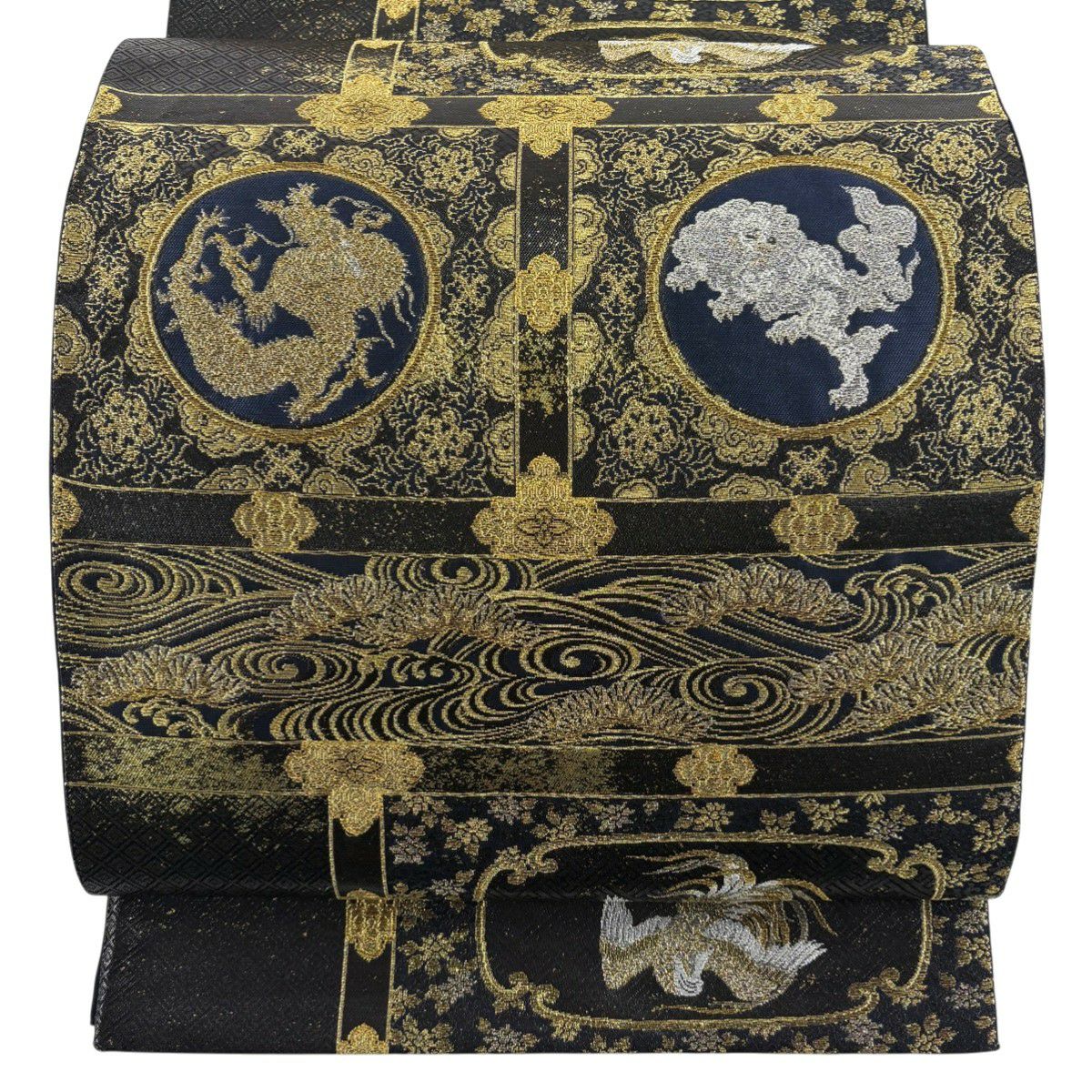 【美品】 袋帯 秀品 獅子 龍 金銀糸 箔 黒 六通 正絹