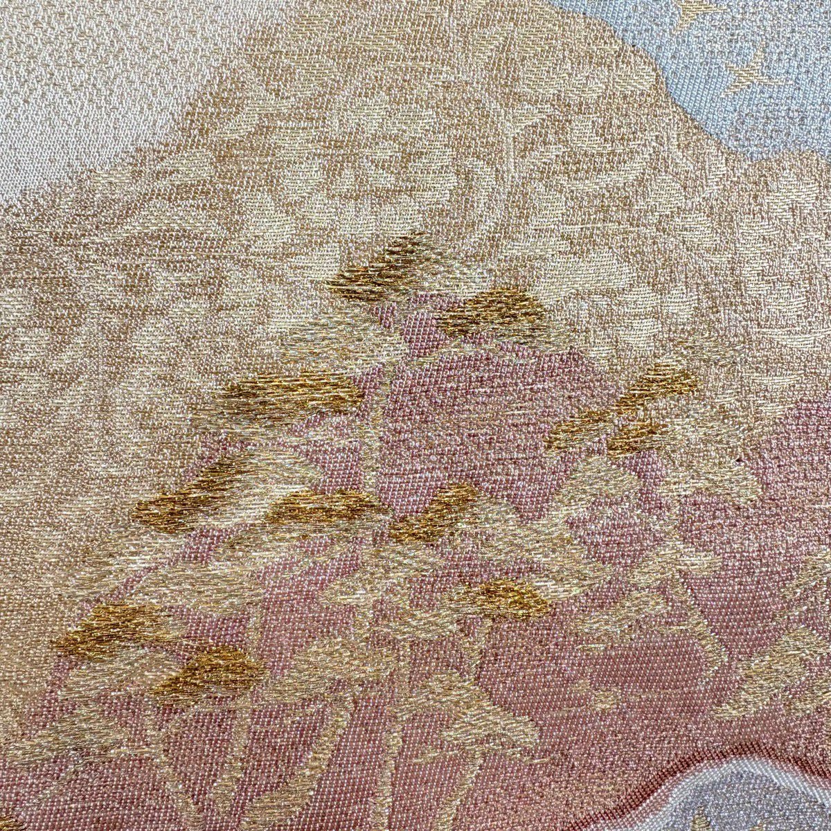 【美品】 袋帯 秀品 松 波 箔 ベージュ 六通 正絹