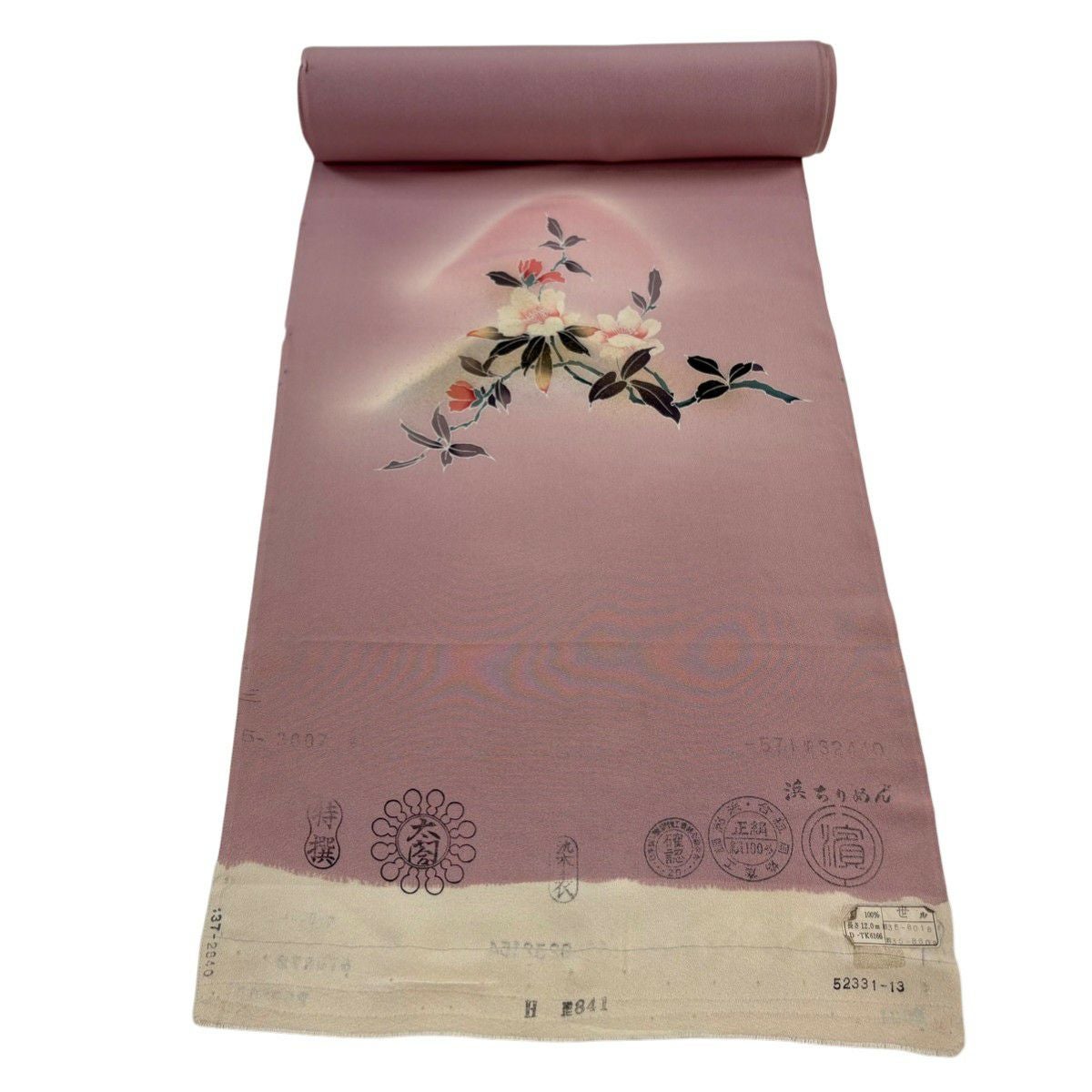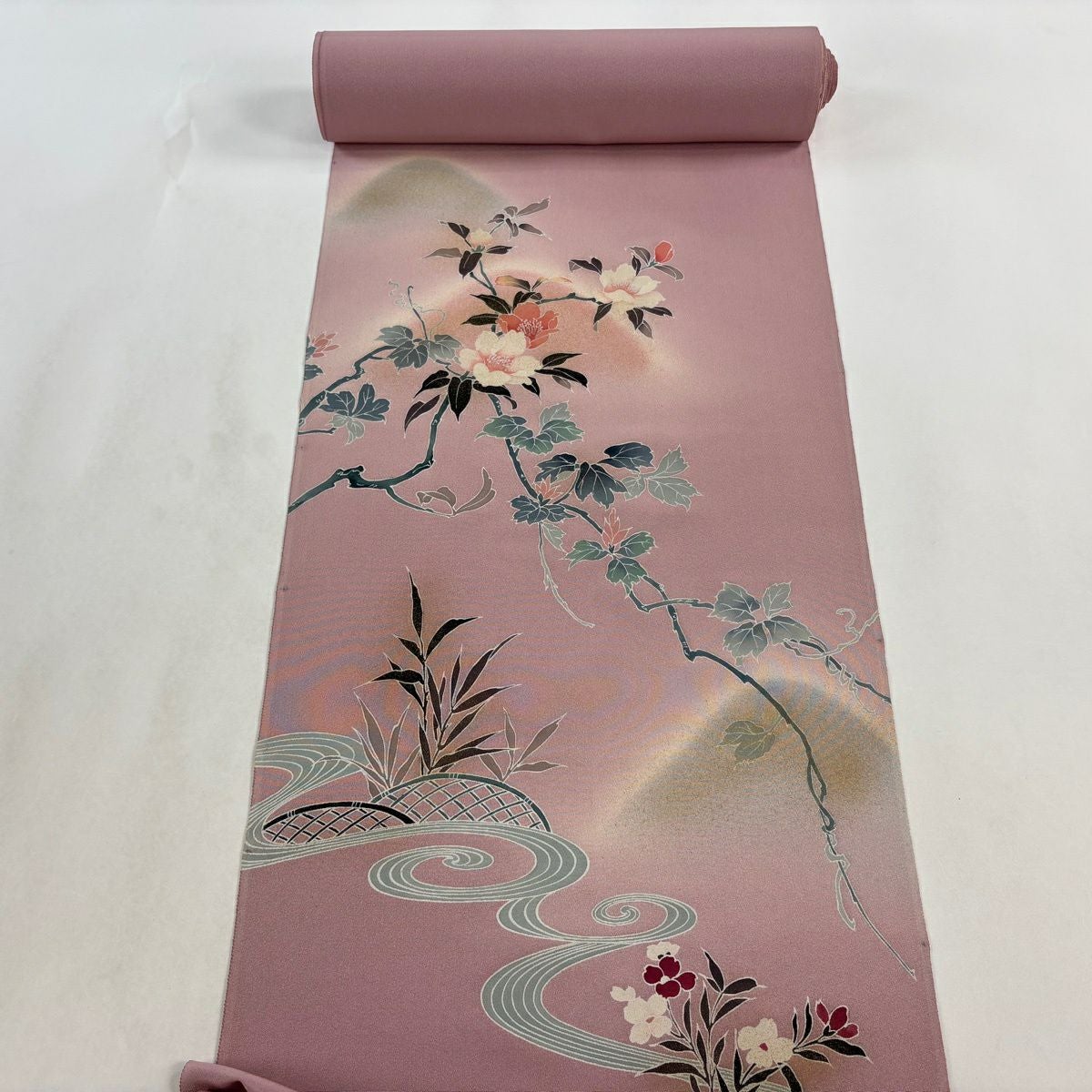 反物 秀品 付下げ 枝花 流水 ピンクベージュ 正絹